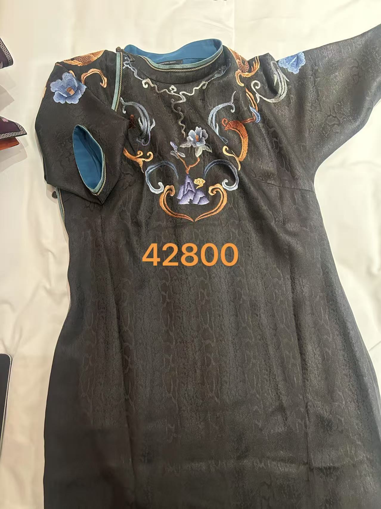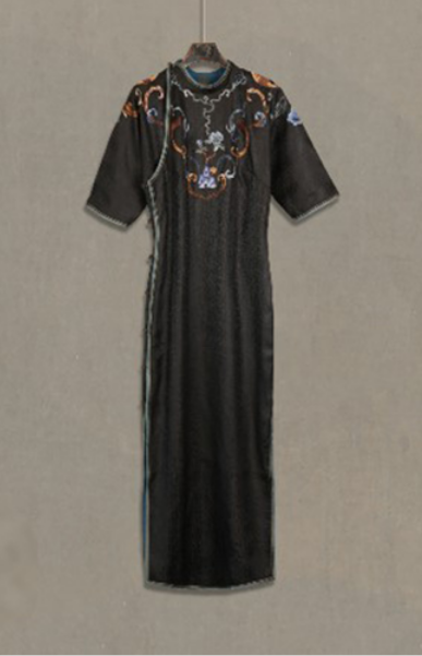 盛唐牡丹盛奢系列| 真丝香云纱如意领手绣旗袍裙-黑色