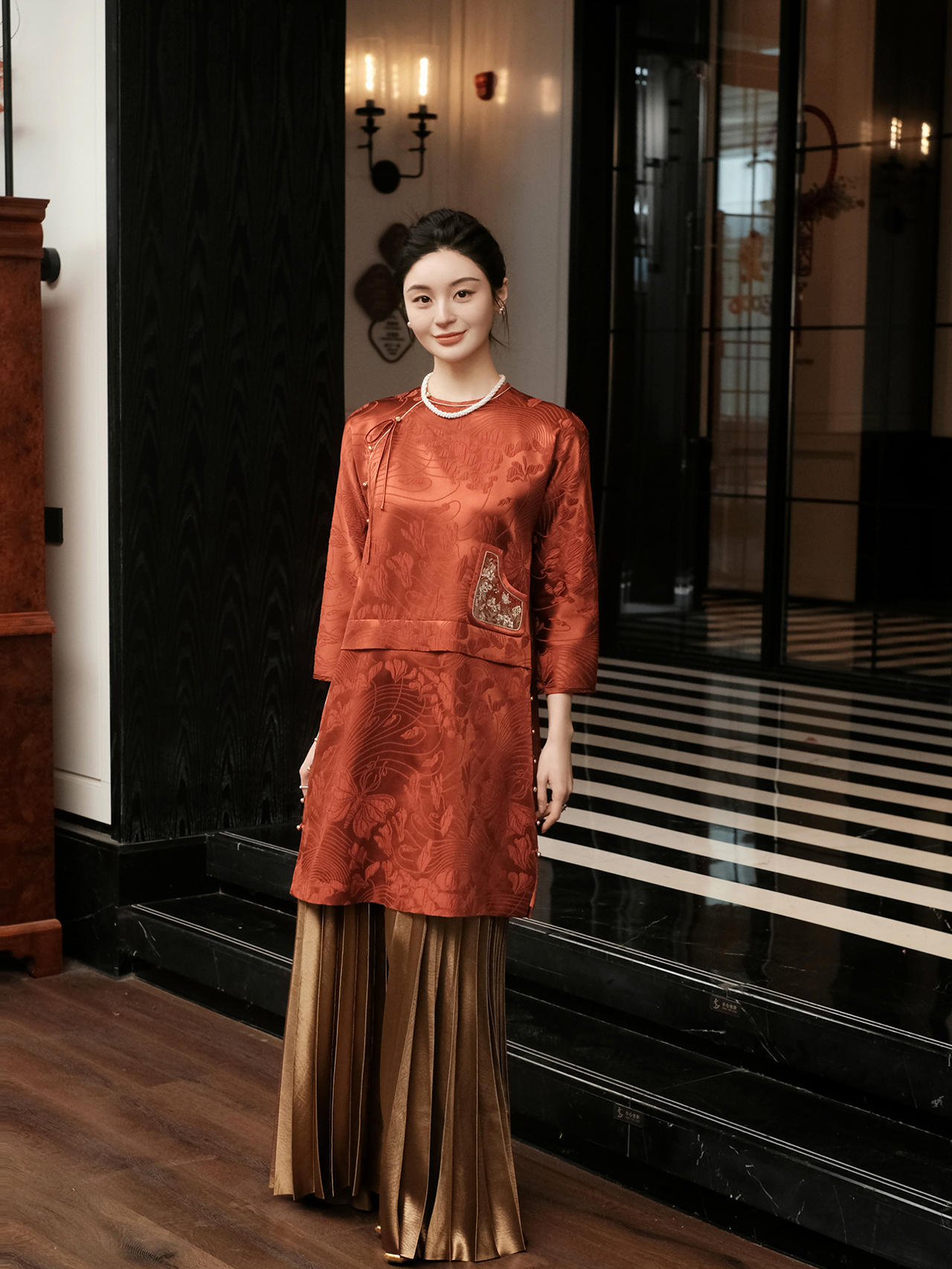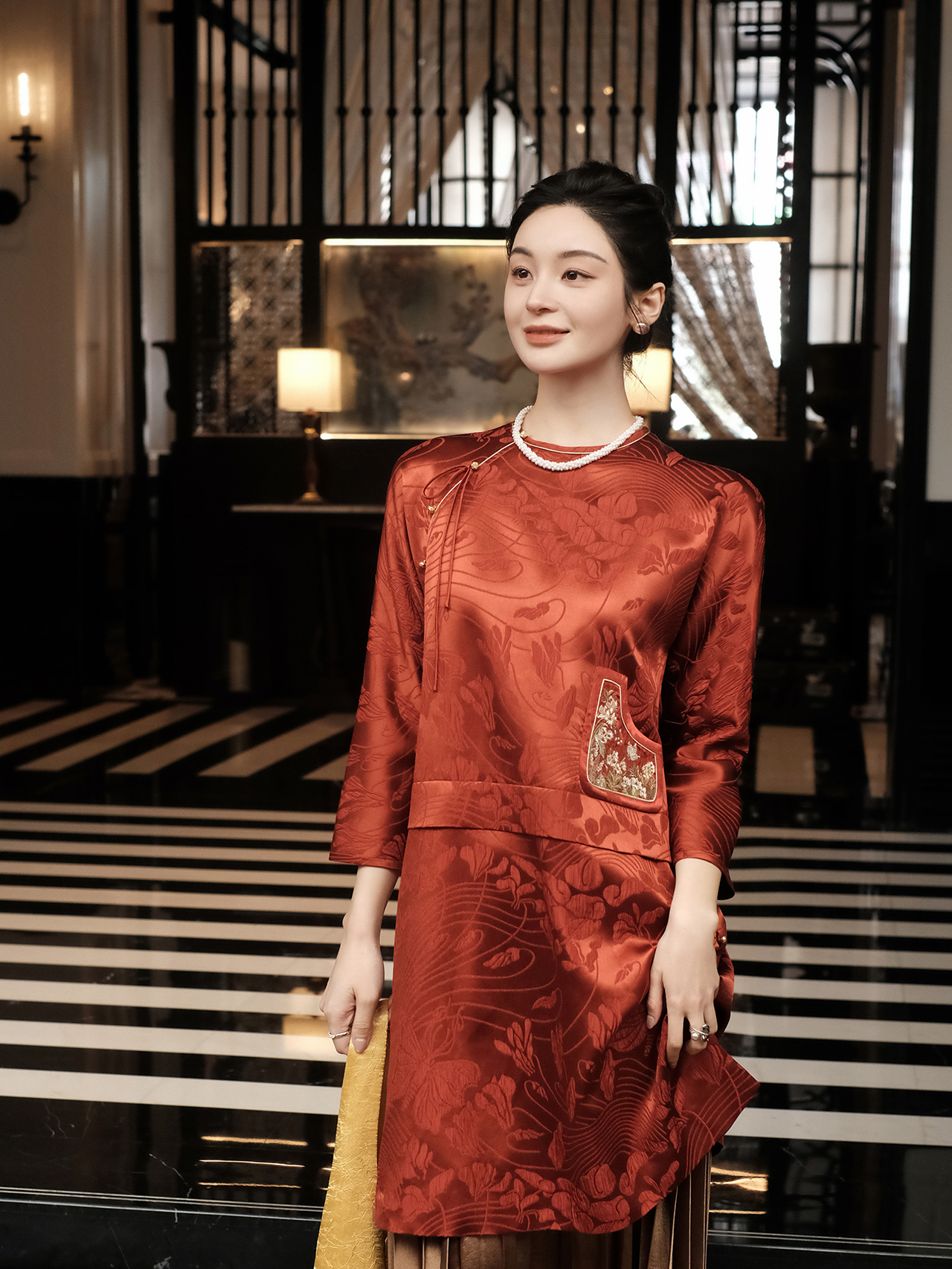 下架|东方境X郭培| 彩缎刺绣新中式长衫-红柿色