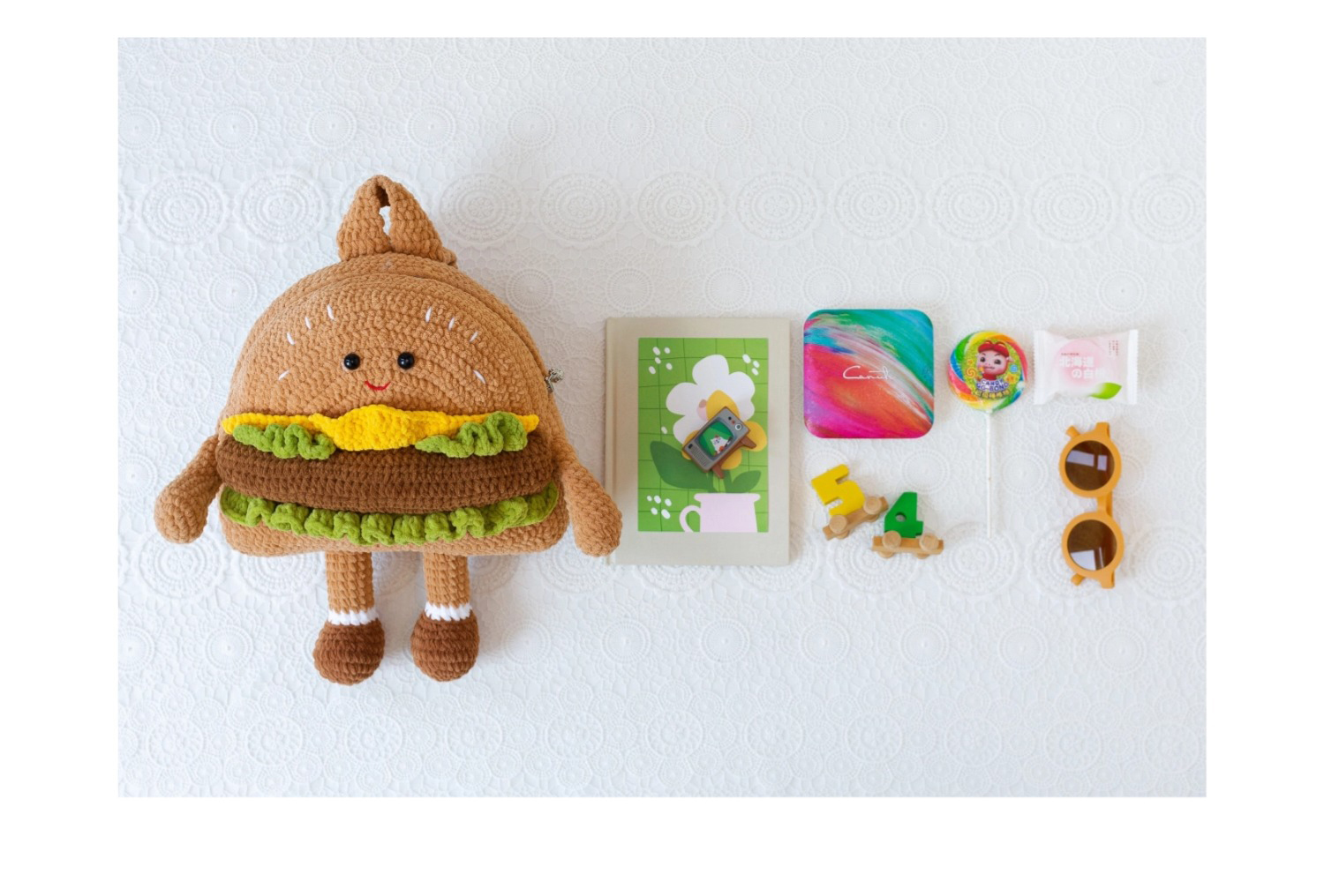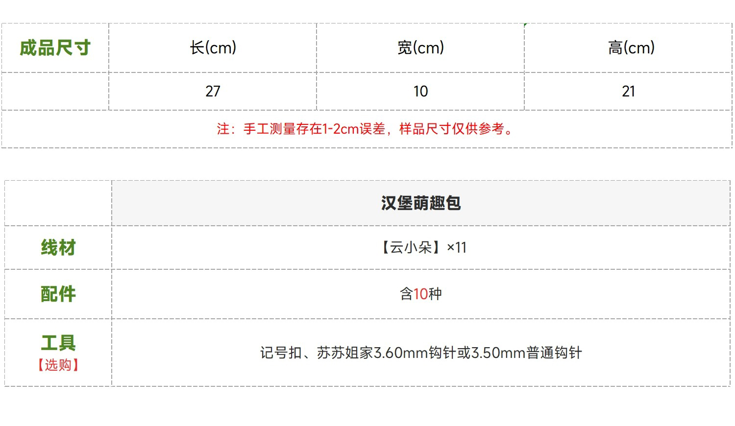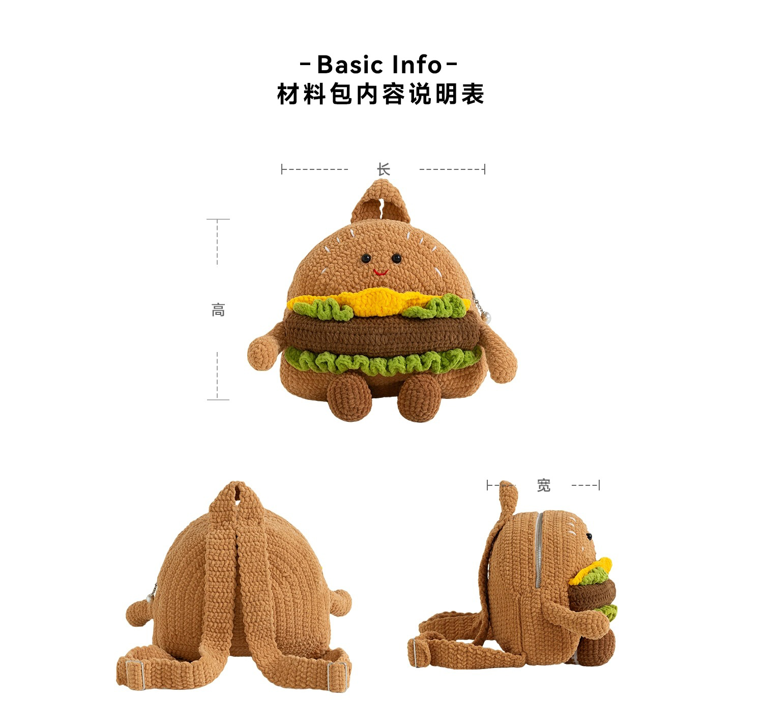 苏苏姐家汉堡萌趣包手工diy编织钩针双肩包毛线团自制材料包