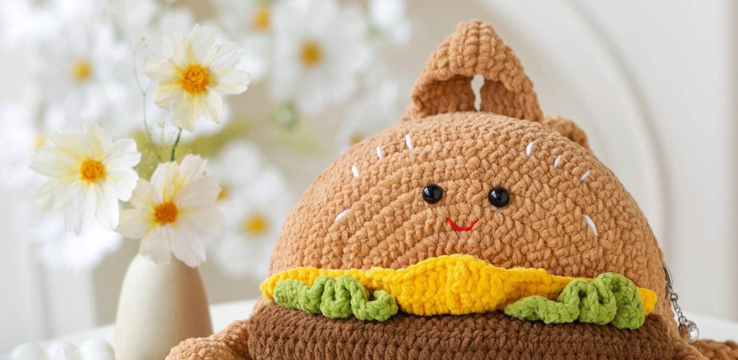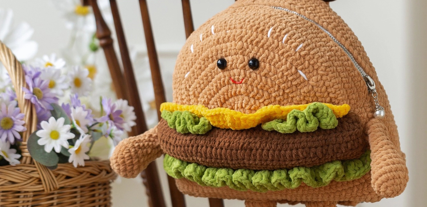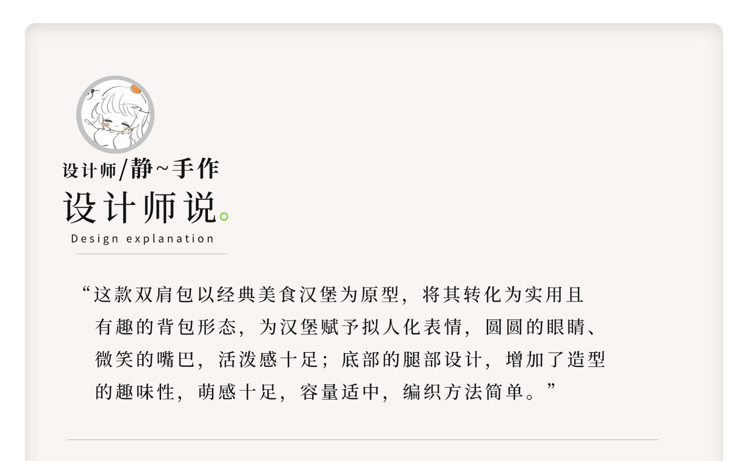苏苏姐家汉堡萌趣包手工diy编织钩针双肩包毛线团自制材料包
