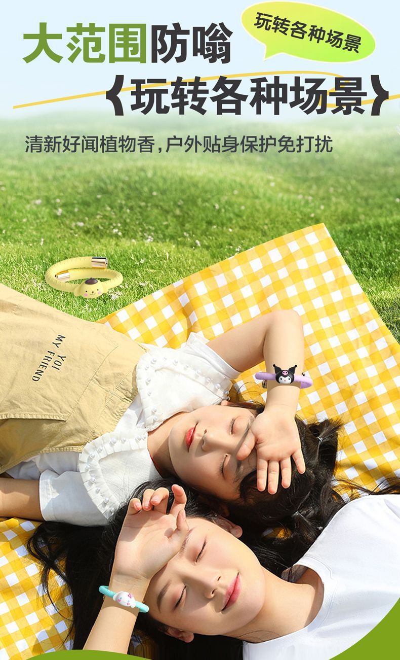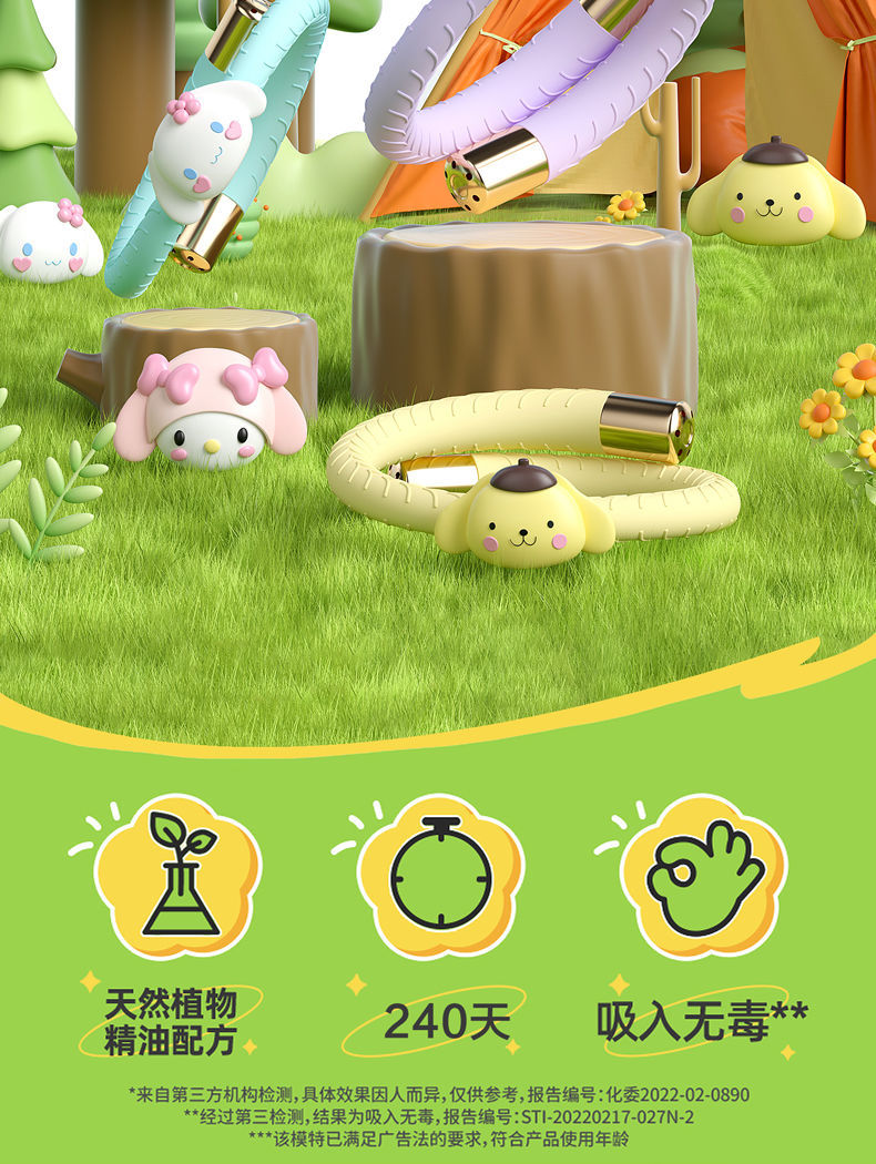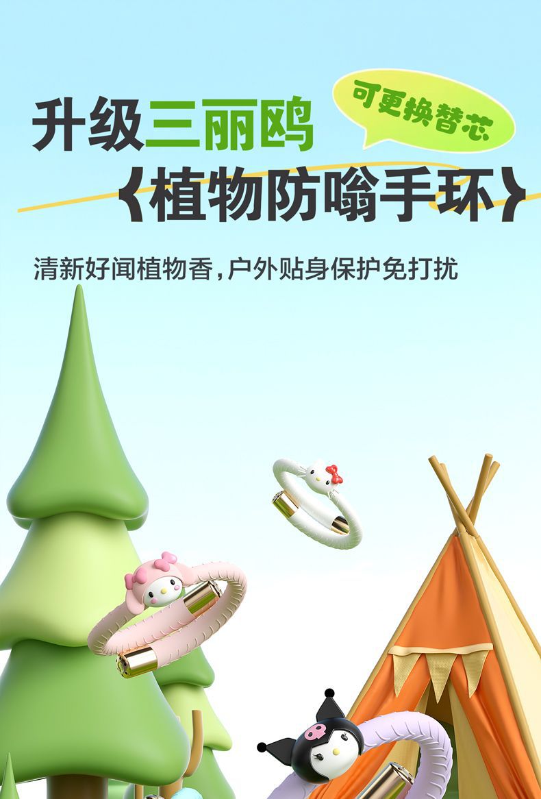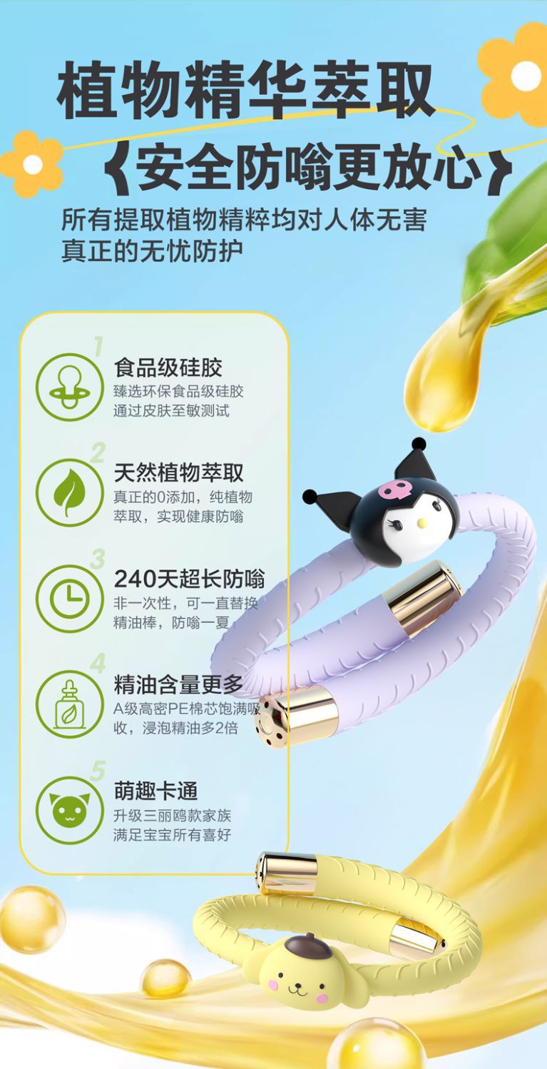【买一送六❗三丽鸥植物防嗡手环】天然植物精油配方,食品级硅胶,佩戴玩耍不易掉落,可换精油棒反复使用,婴儿成人蚊虫植物精油防虫随身防蚊贴QQ