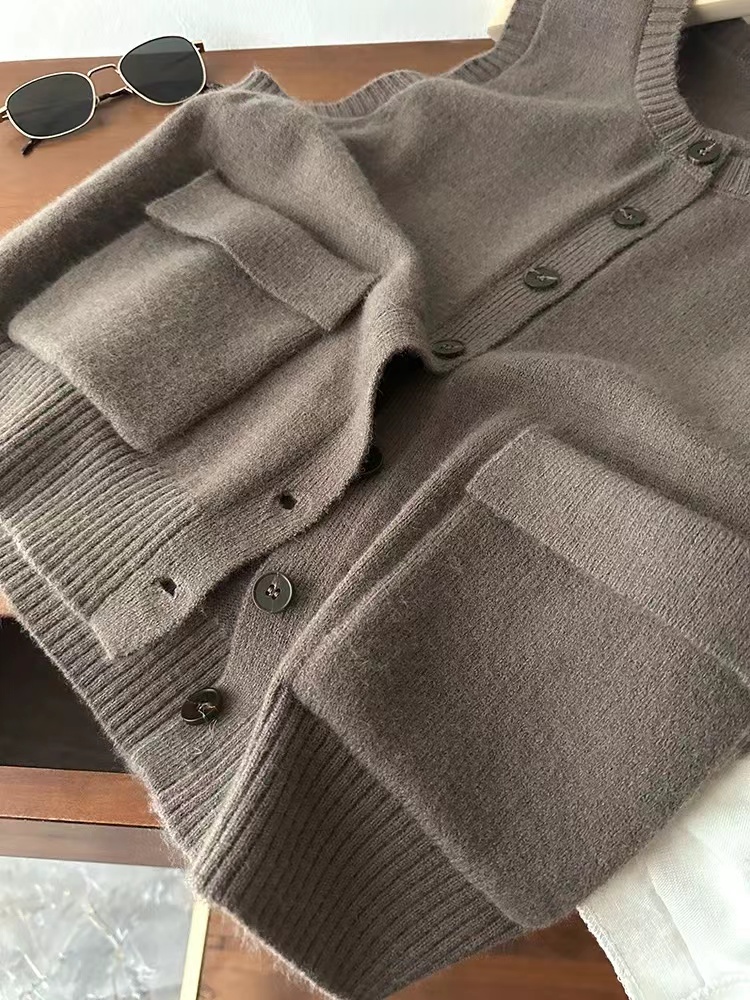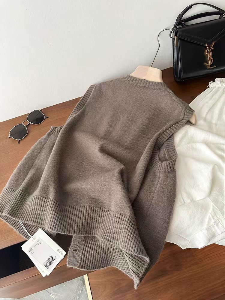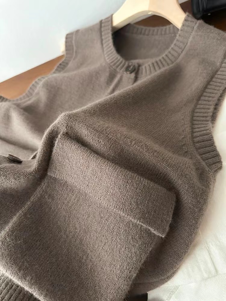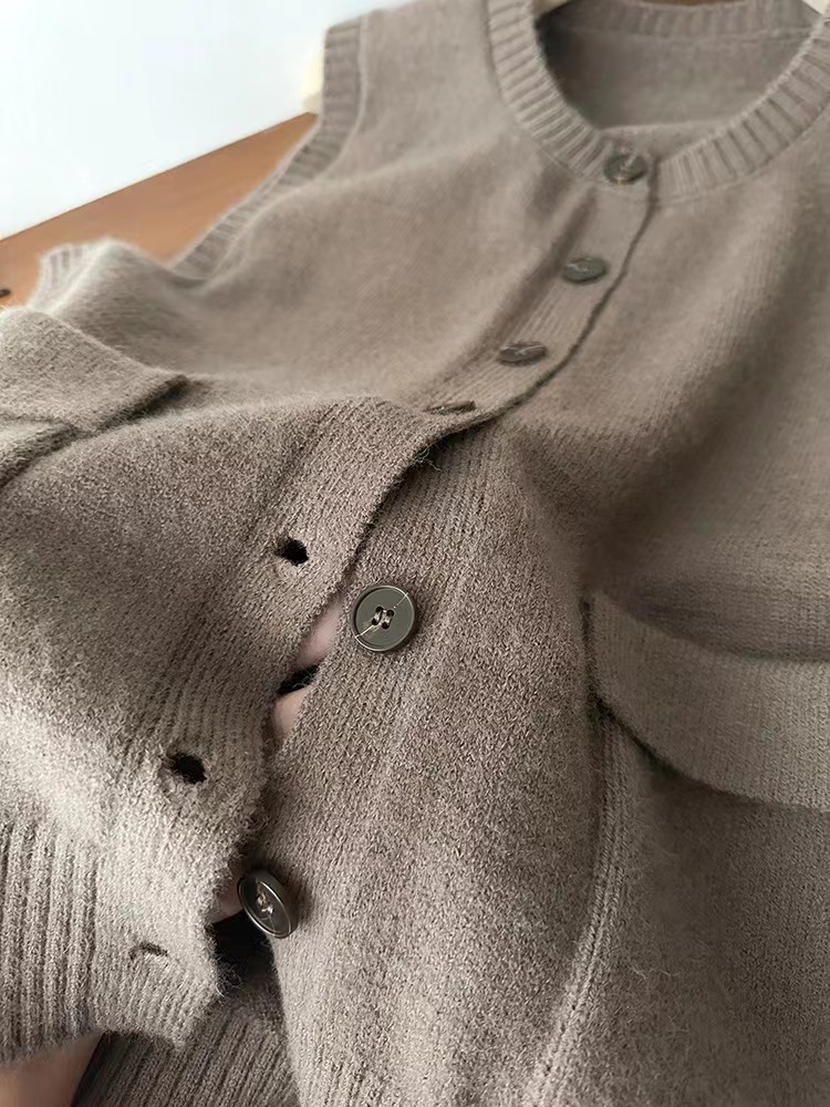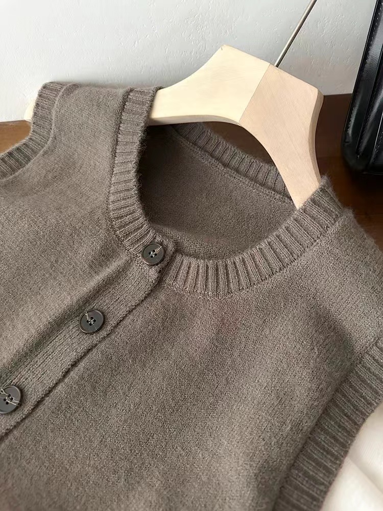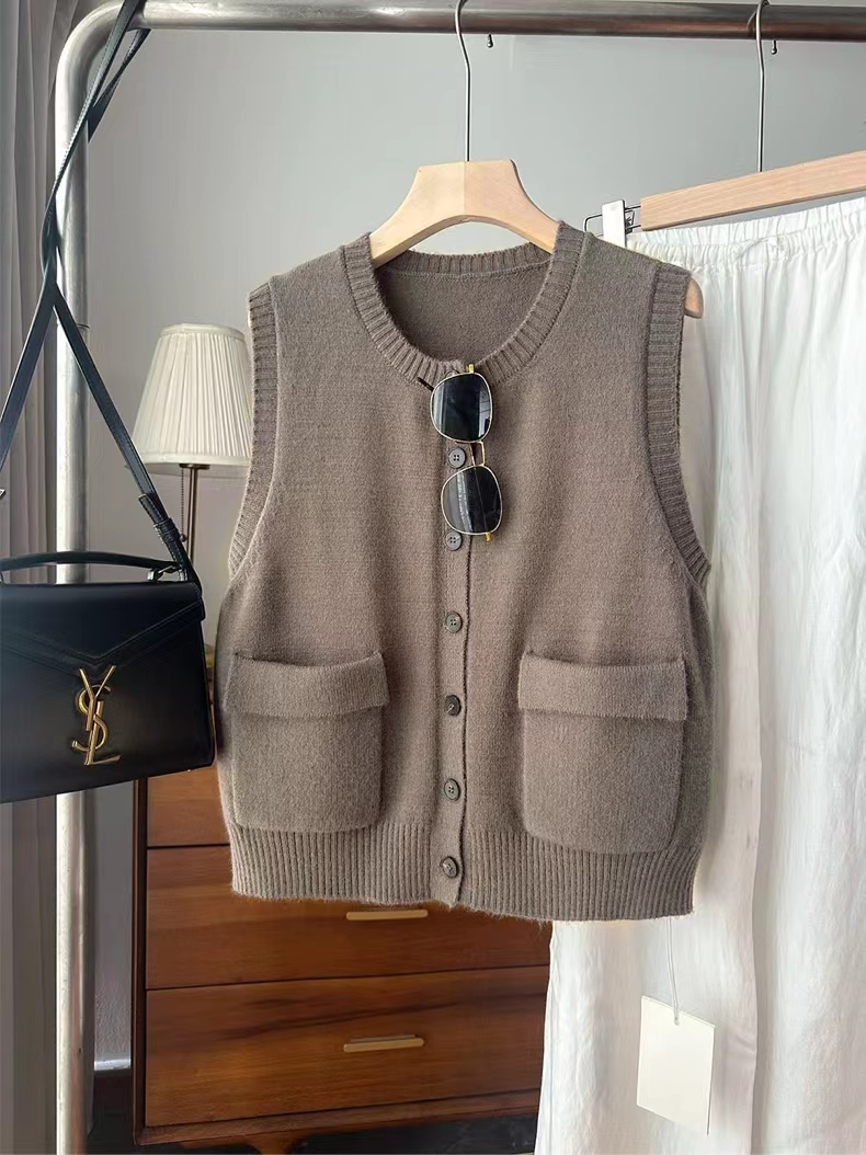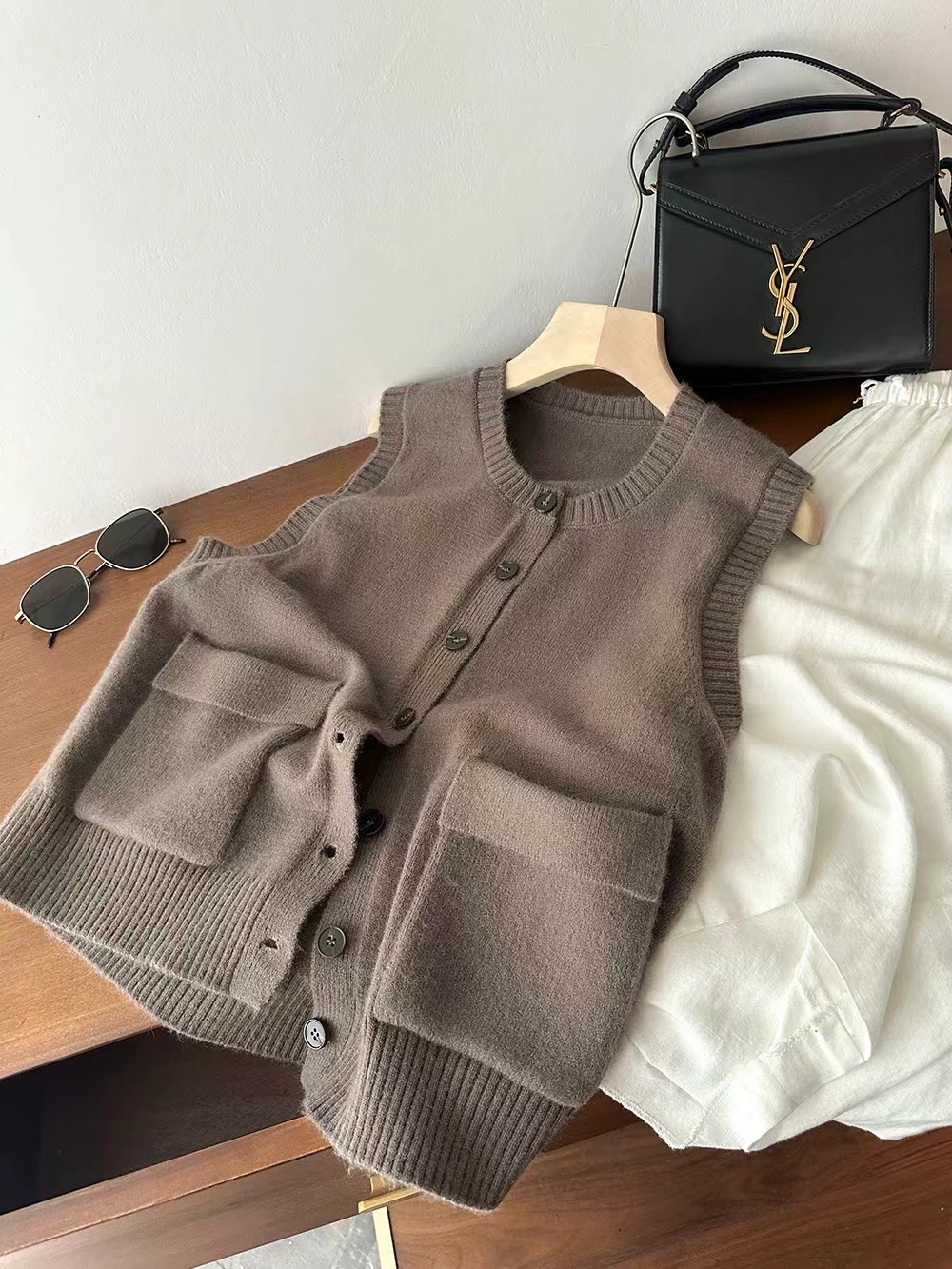 老钱风!复古时尚百搭羊毛混纺单排扣圆领无袖针织马甲背心女新款,老钱风!复古时尚百搭针织马甲背心无袖单排扣设计简约的大口袋,增加休闲感羊毛混纺的料子亲肤舒适,推荐