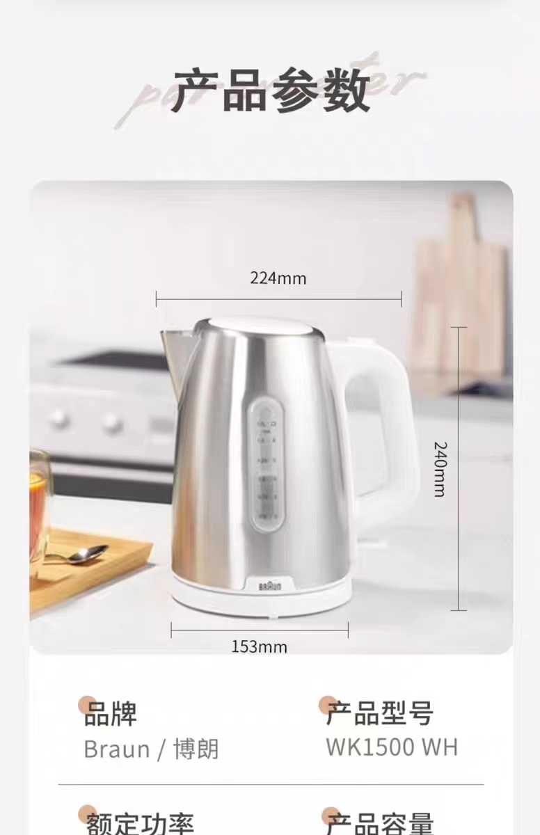 【春上新】10楼 博朗 WK1500电热水壶 吊牌价259元 活动价99元