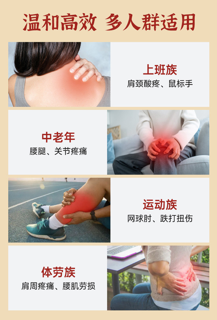 轻启滚珠,浓郁的药香就扑鼻而来,味道很好闻,不是中药味,是植物香!在身上滚一滚,精华通过穴位直接透皮,成分强力渗透至经络深处,直击疼痛根源,酸痛感也能随之缓解。初用时,肌肤感受冰凉舒爽,随后逐渐发热,伴随着酥麻感,疼痛明显减轻,身体倍感轻松!相较于贴布,滚珠凝露的使用更为灵活便捷,适合小面积涂抹。如果酸疼难解,可以在涂抹凝露后,再辅以贴布,双重叠加,效果更佳!