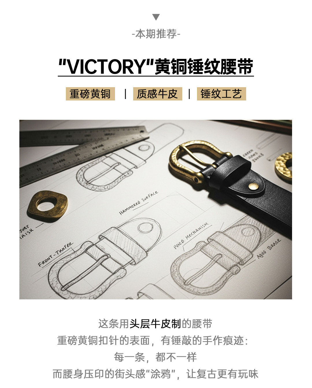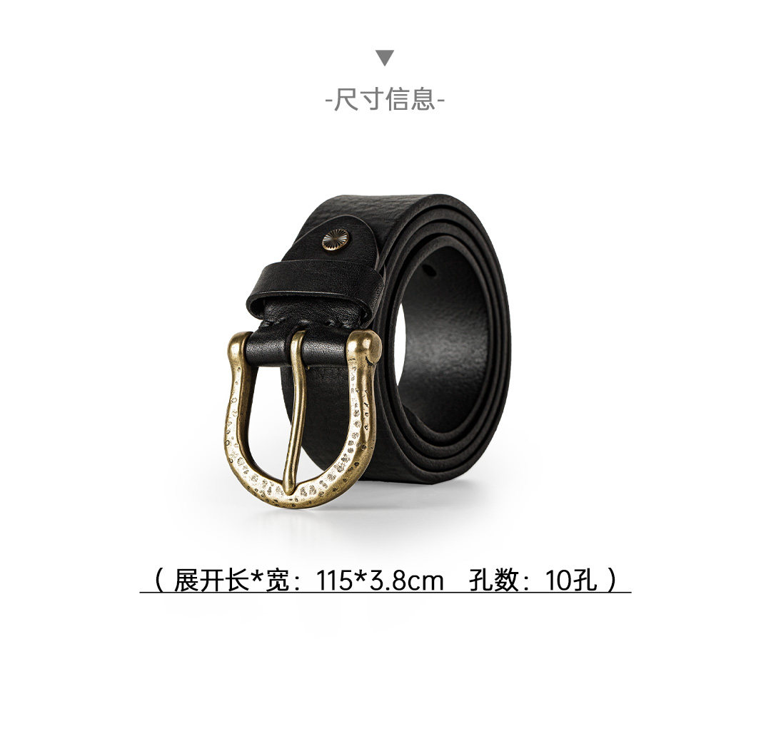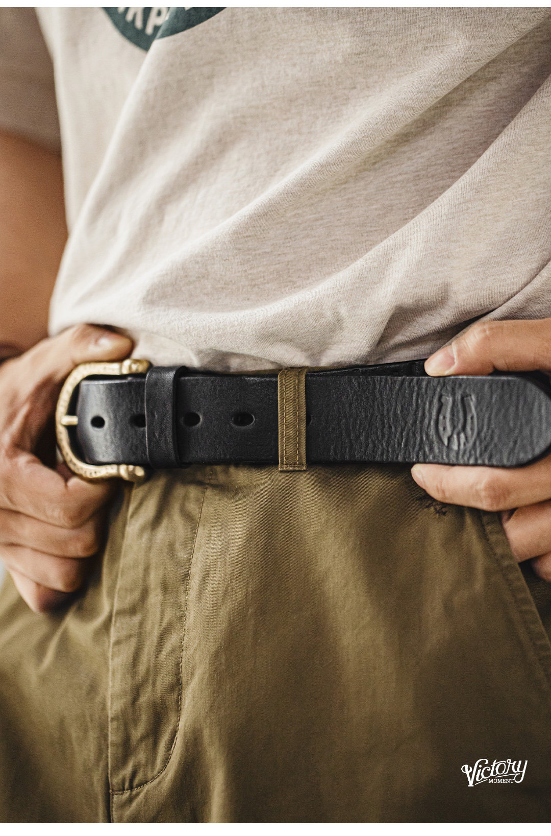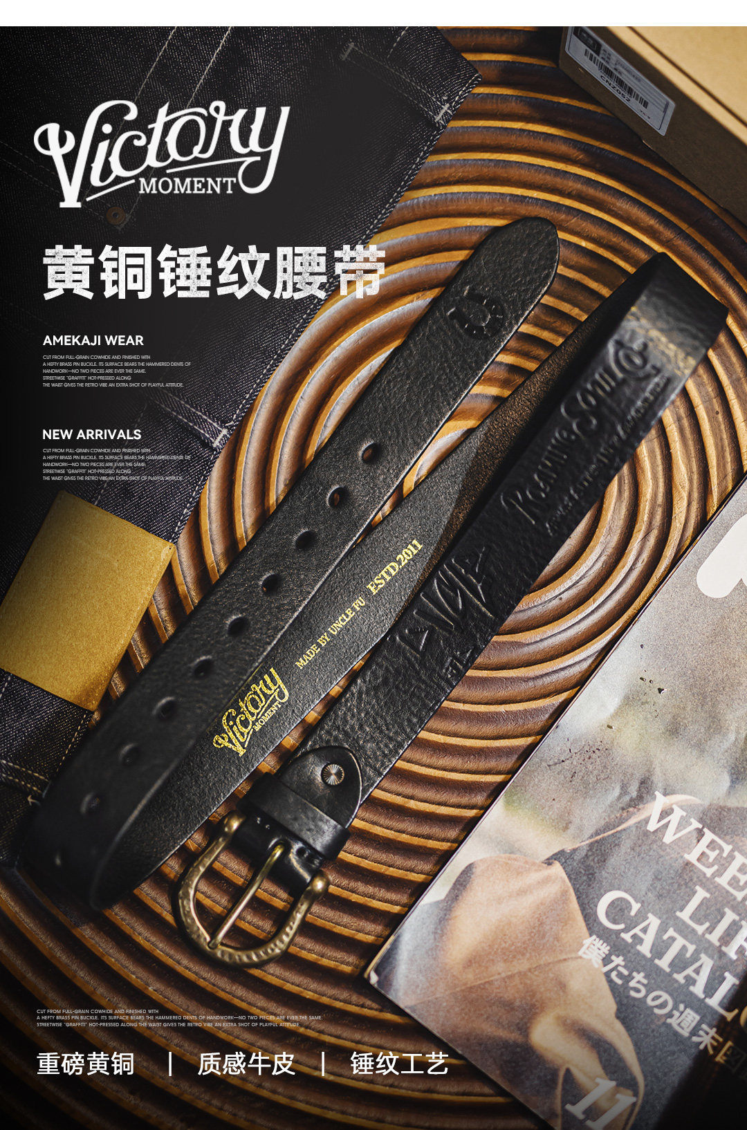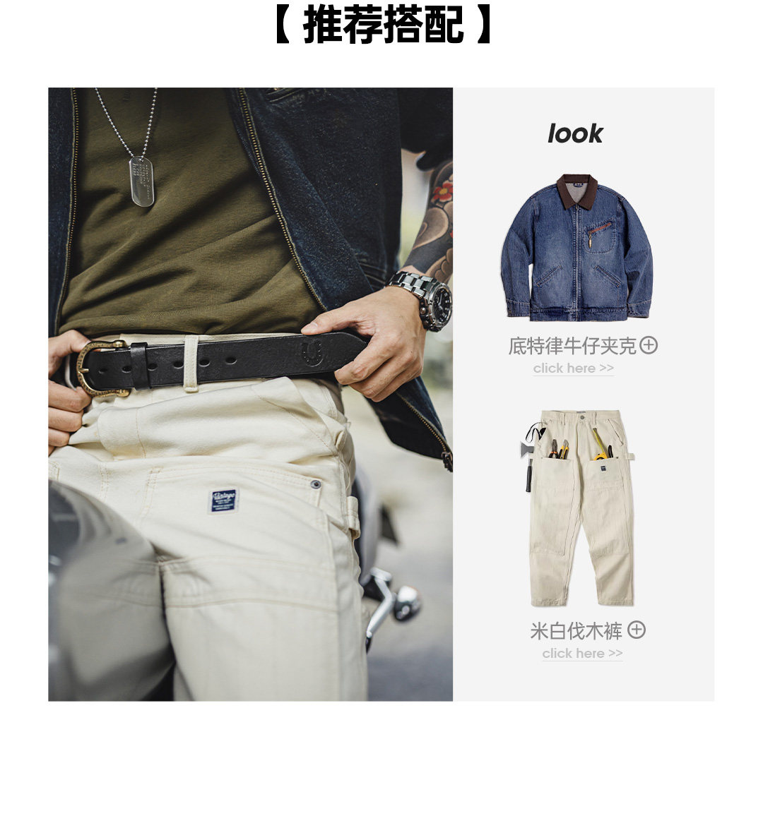 马登工装美式复古黄铜扣头皮带头层牛皮腰带单针真皮裤腰带男款