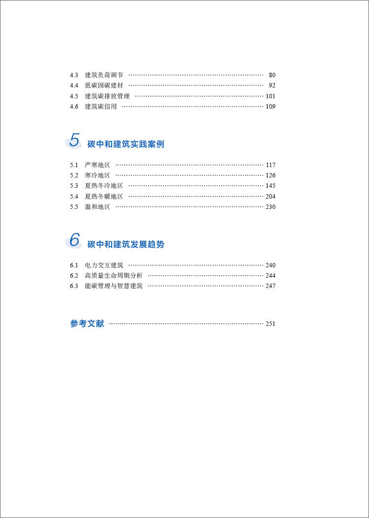 内容以及应用方法。第 4 章完整介绍了建筑可再生能源、建筑储能、建筑负荷调节、低碳固碳建材、建筑碳排放管