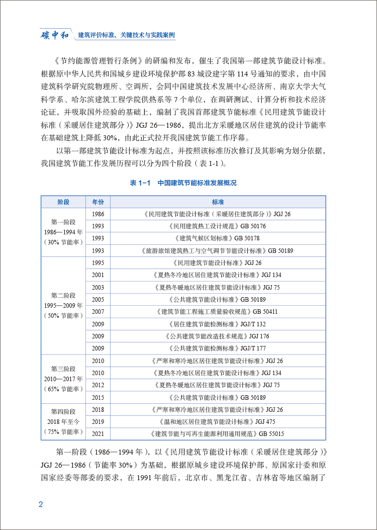 本书包含六章,主要内容如下:第 1 章系统介绍了建筑领域绿色低碳发展历程,各阶段工作开展的历史背景及主