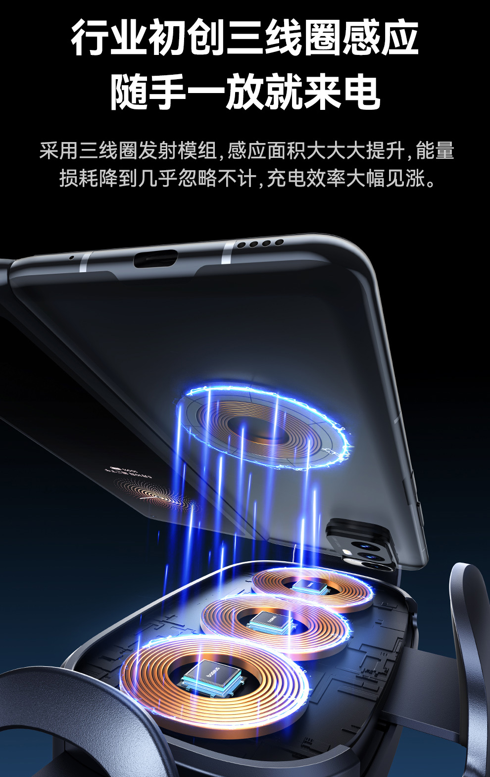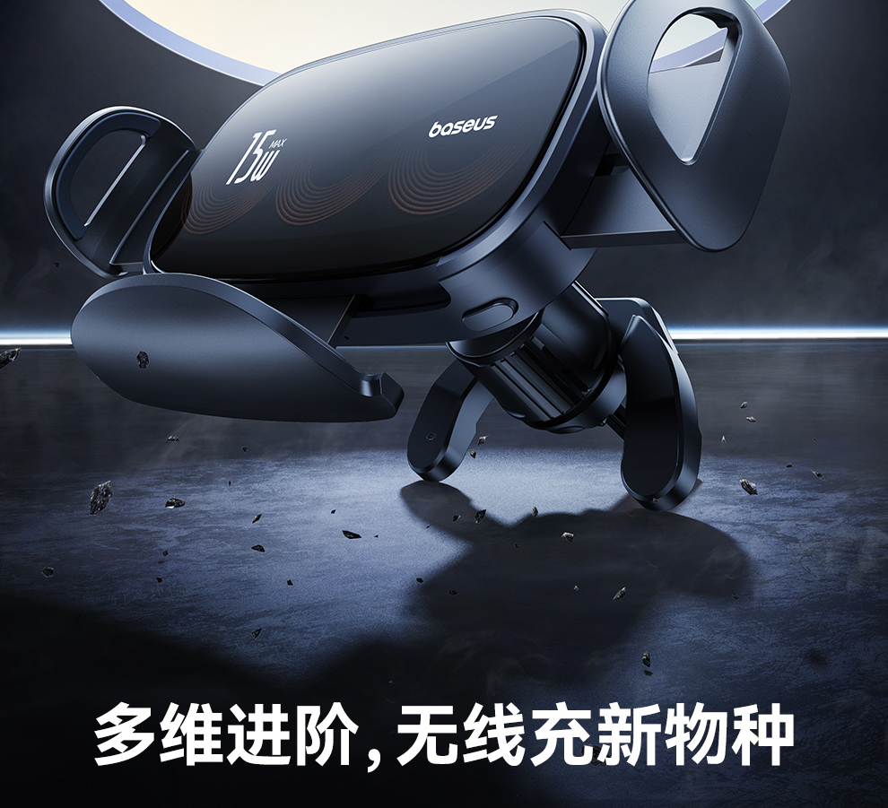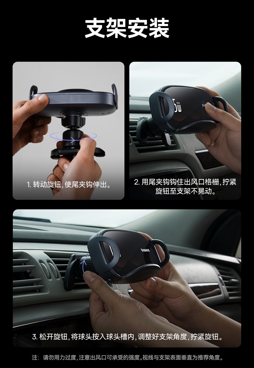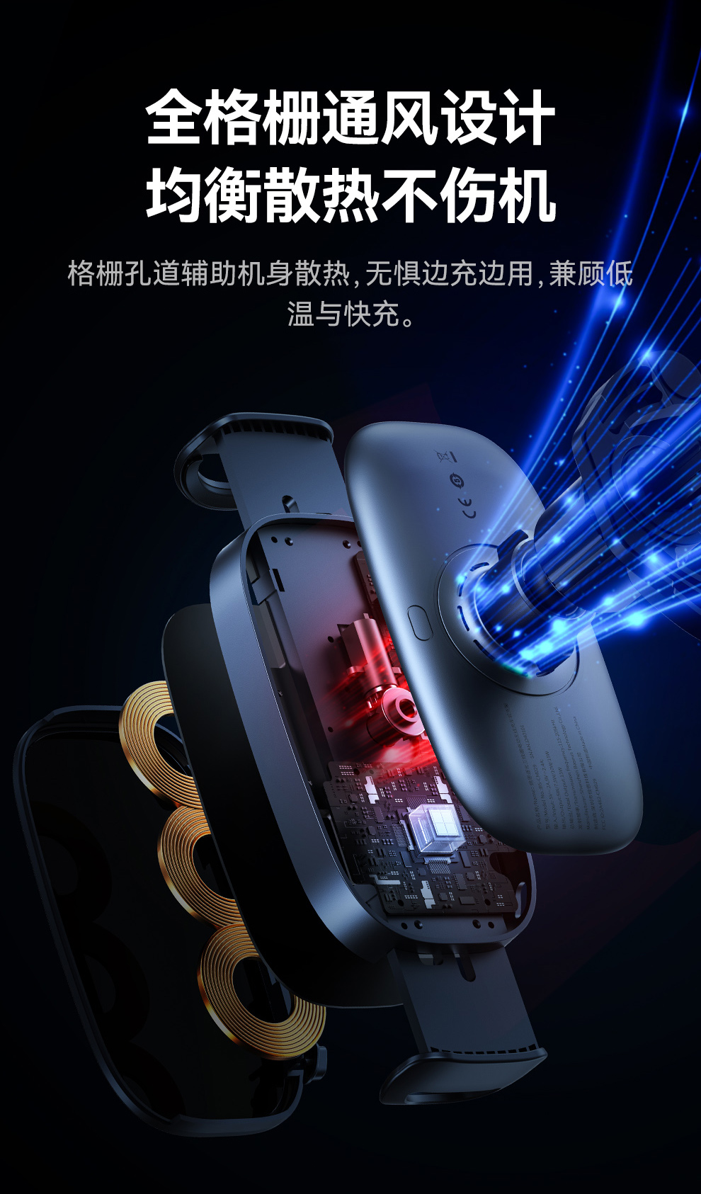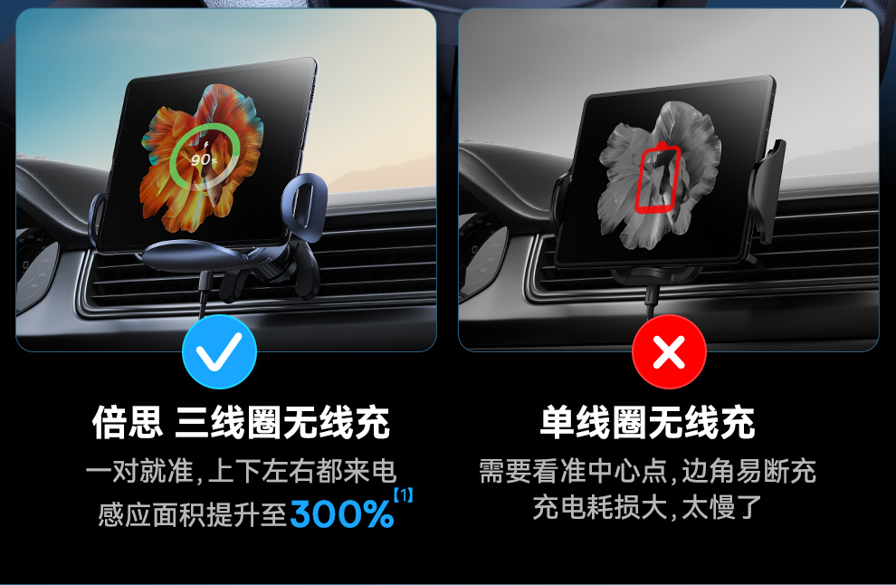 倍思 逐光 三线圈 电动无线充 车载支架 出风口版 星曜黑