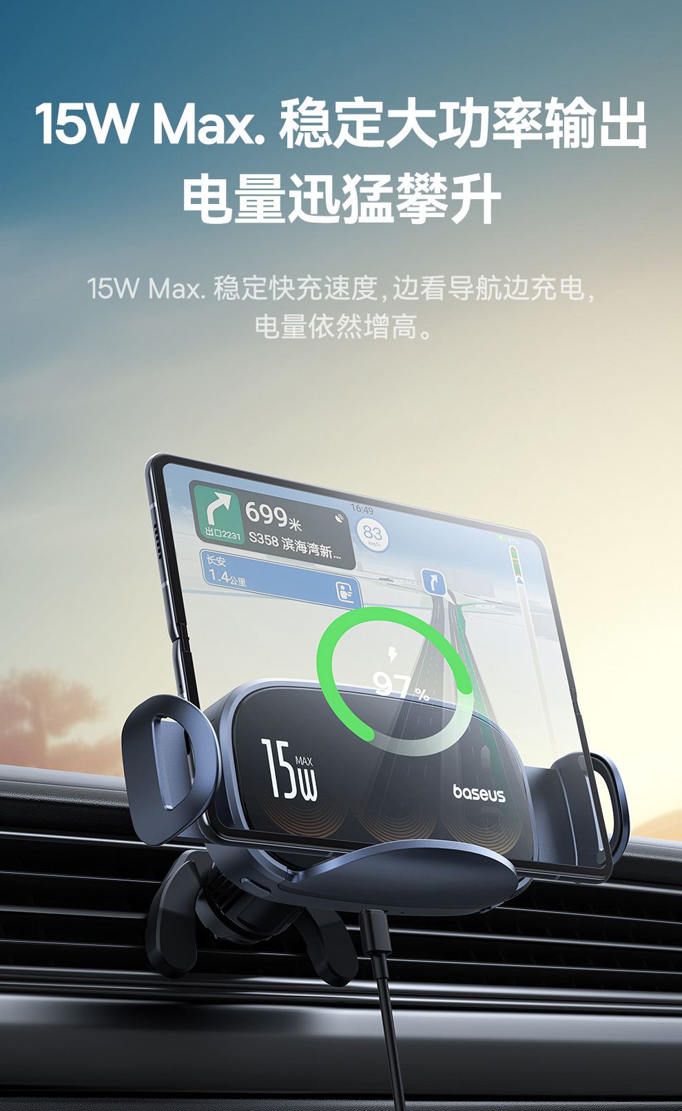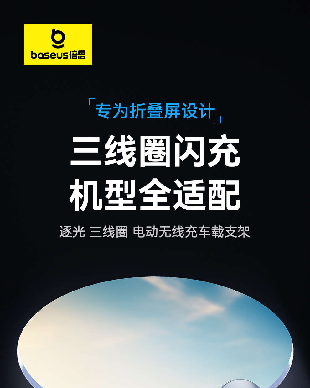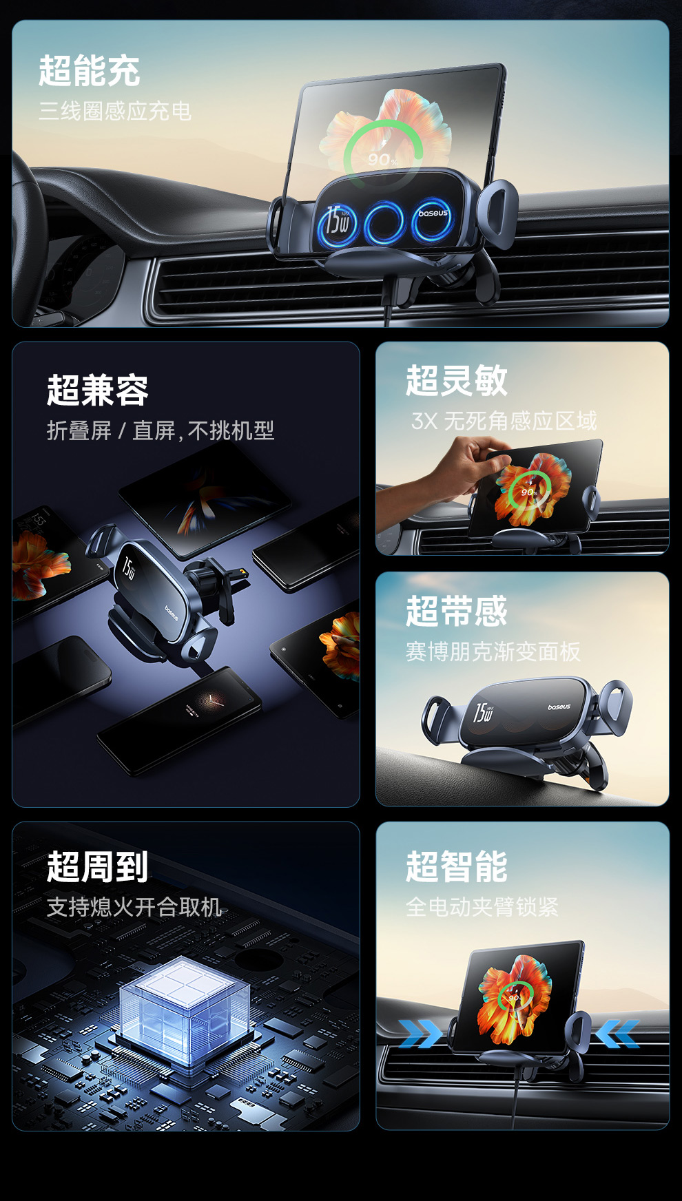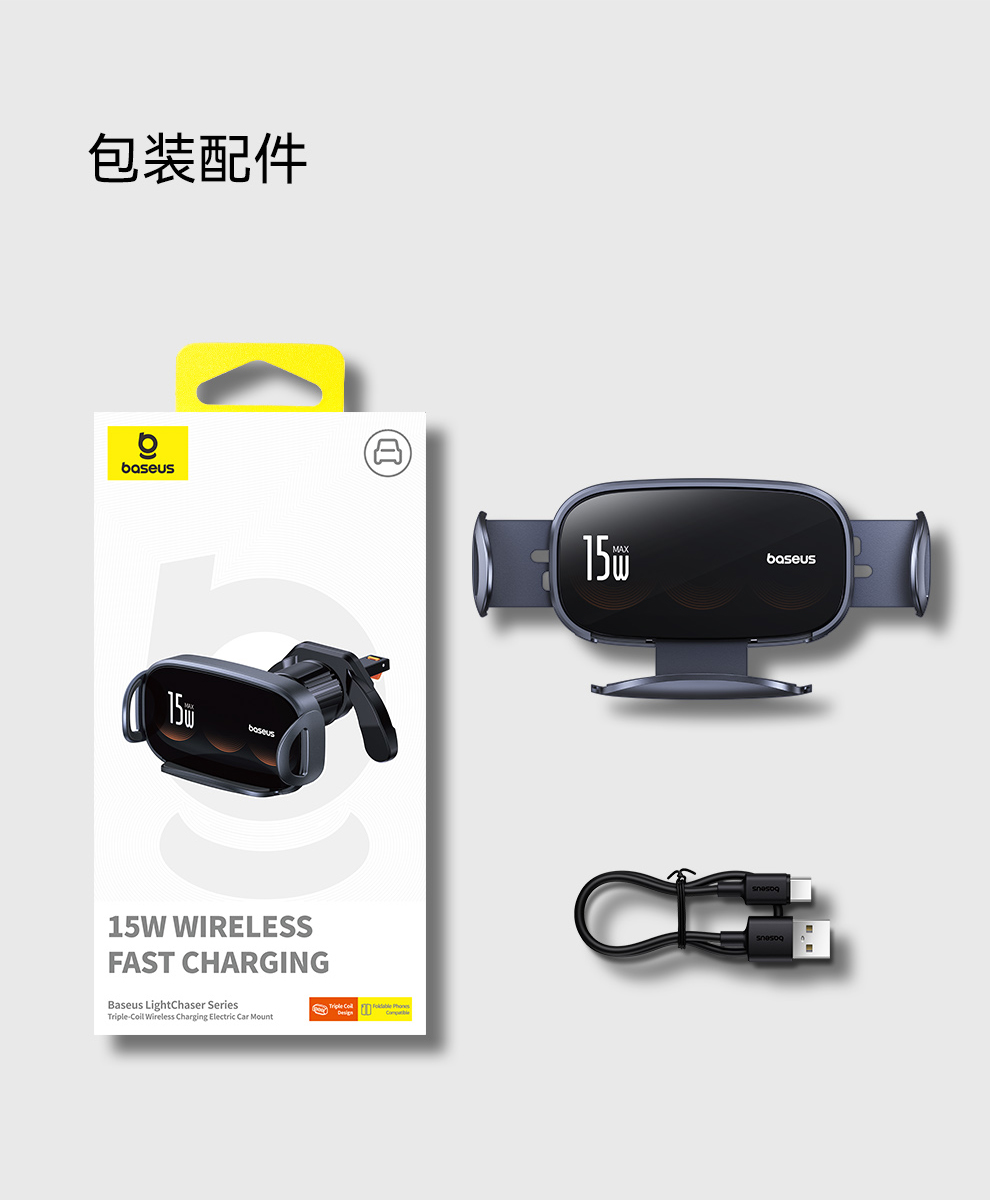 倍思 逐光 三线圈 电动无线充 车载支架 出风口版 星曜黑