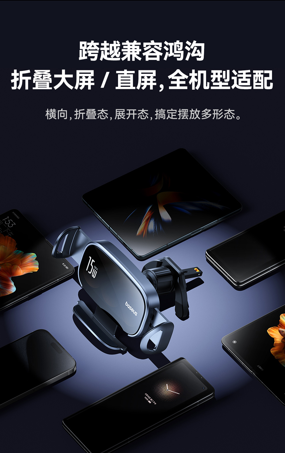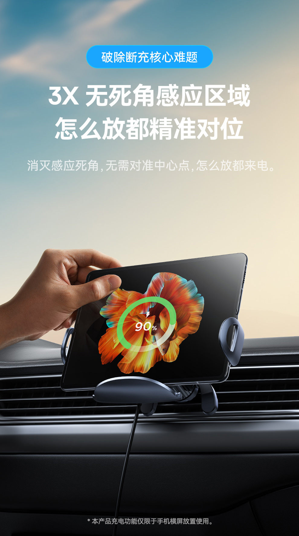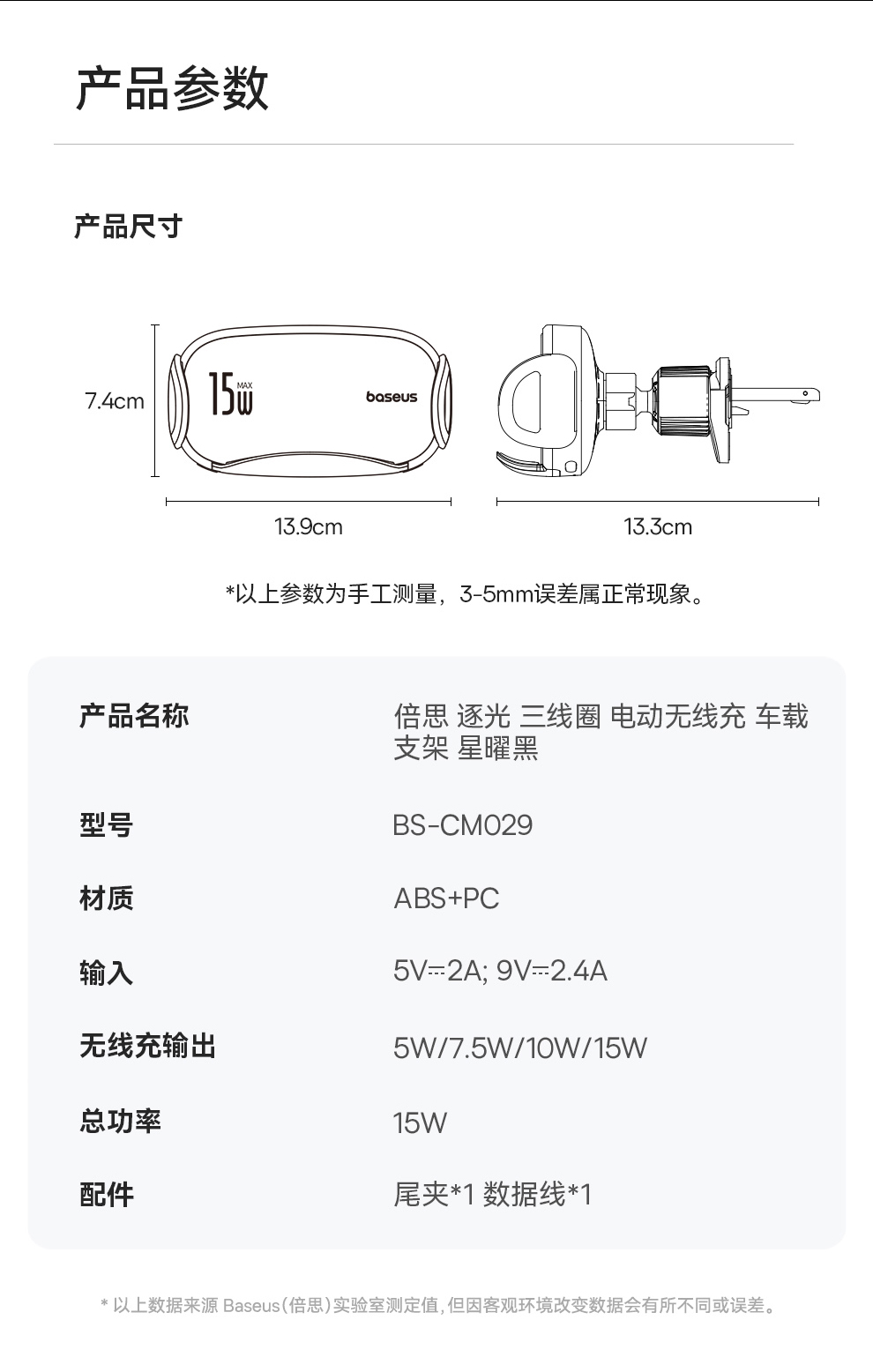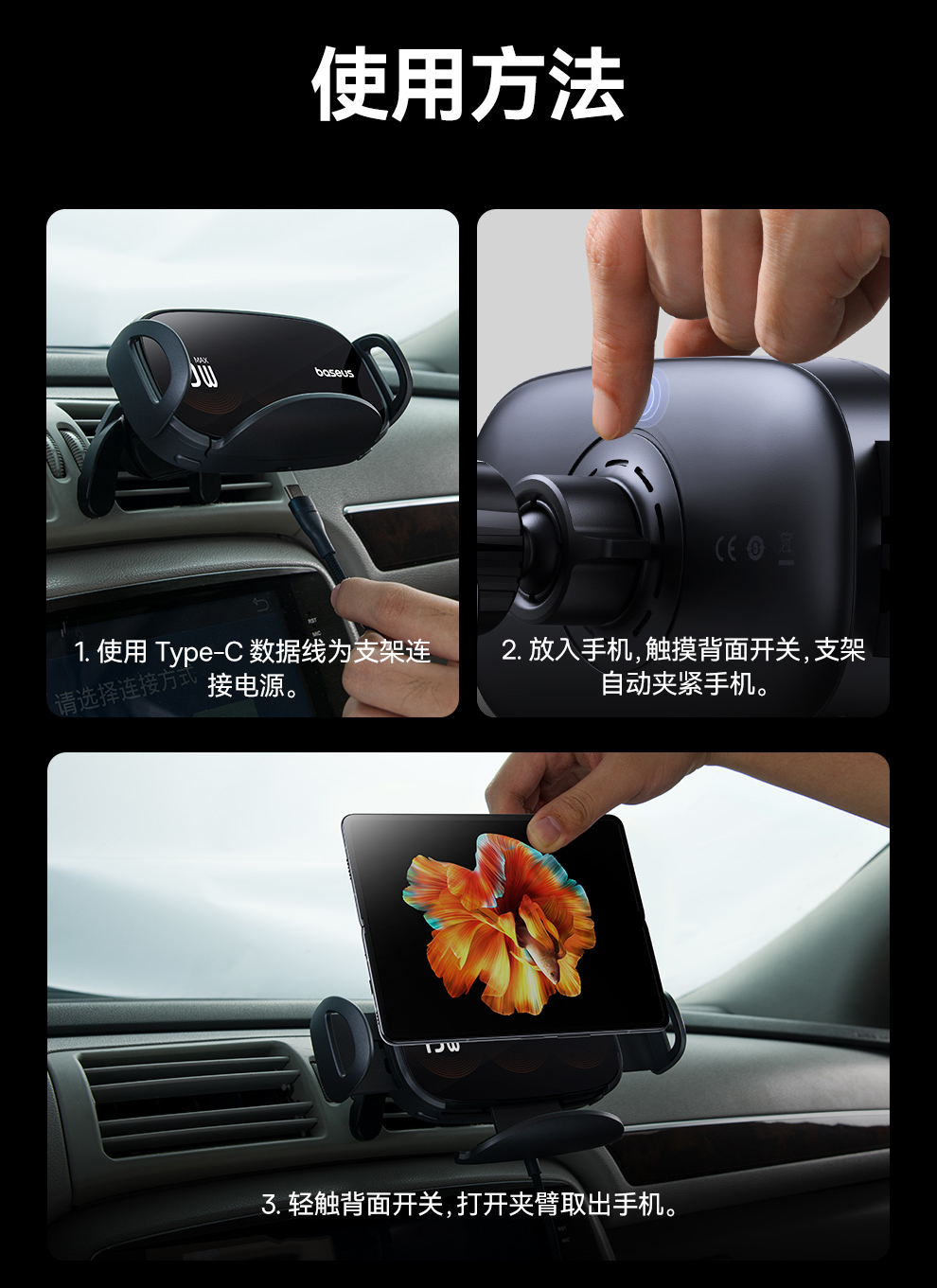 倍思 逐光 三线圈 电动无线充 车载支架 出风口版 星曜黑