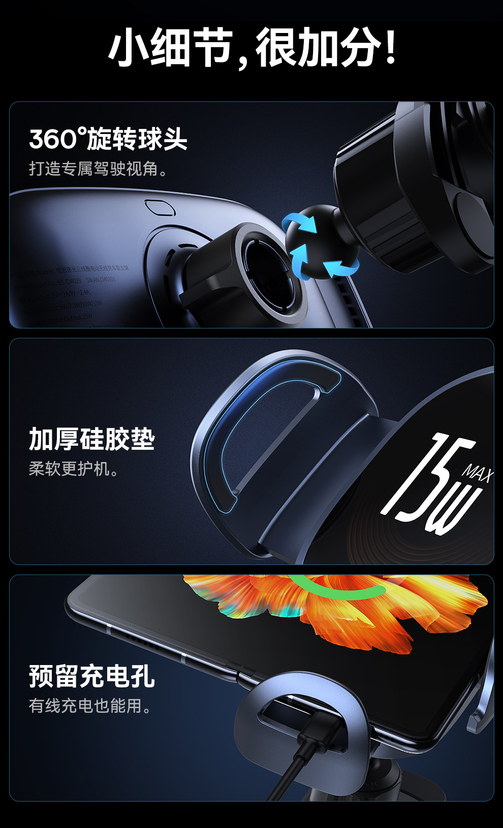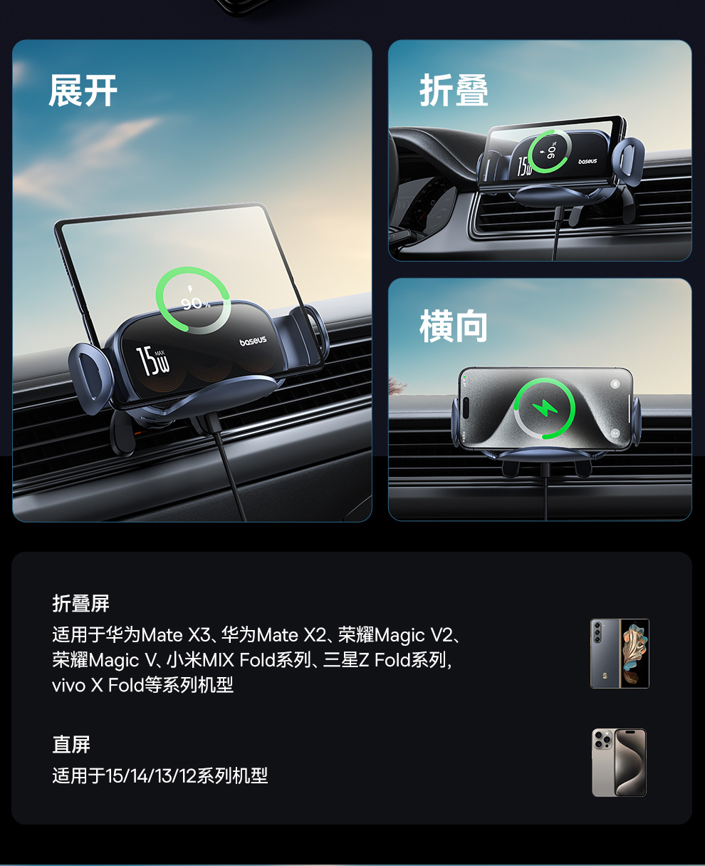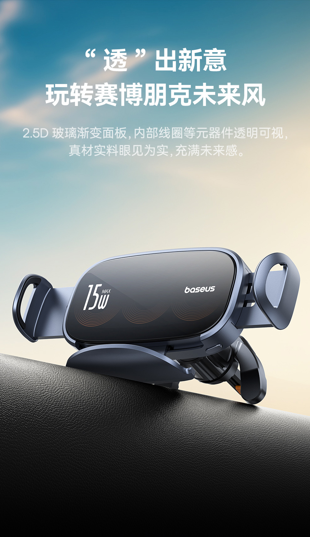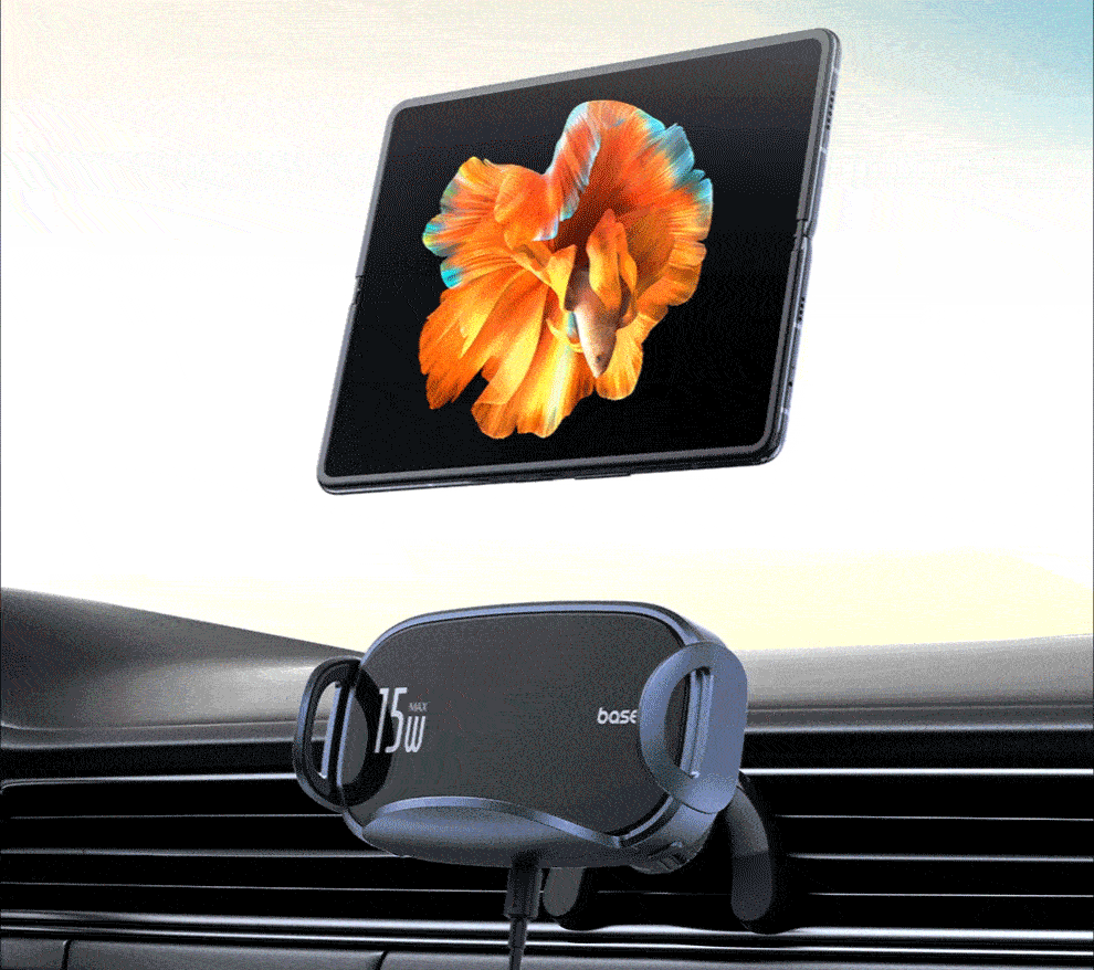 倍思 逐光 三线圈 电动无线充 车载支架 出风口版 星曜黑