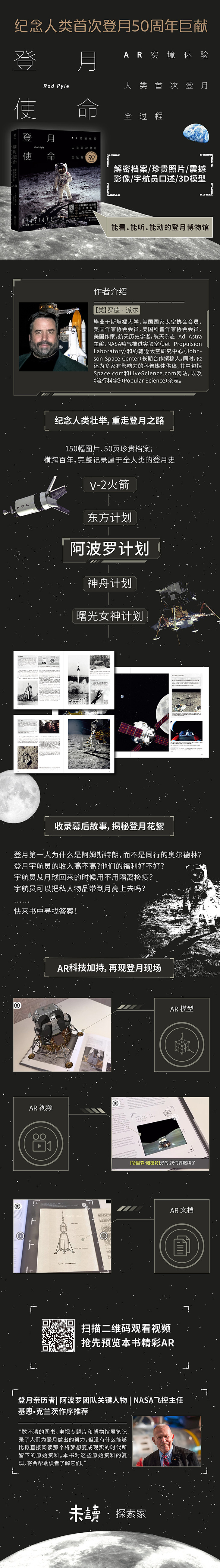 这本书用文字、图片结合AR技术复现了人类登上月球的伟大旅程。