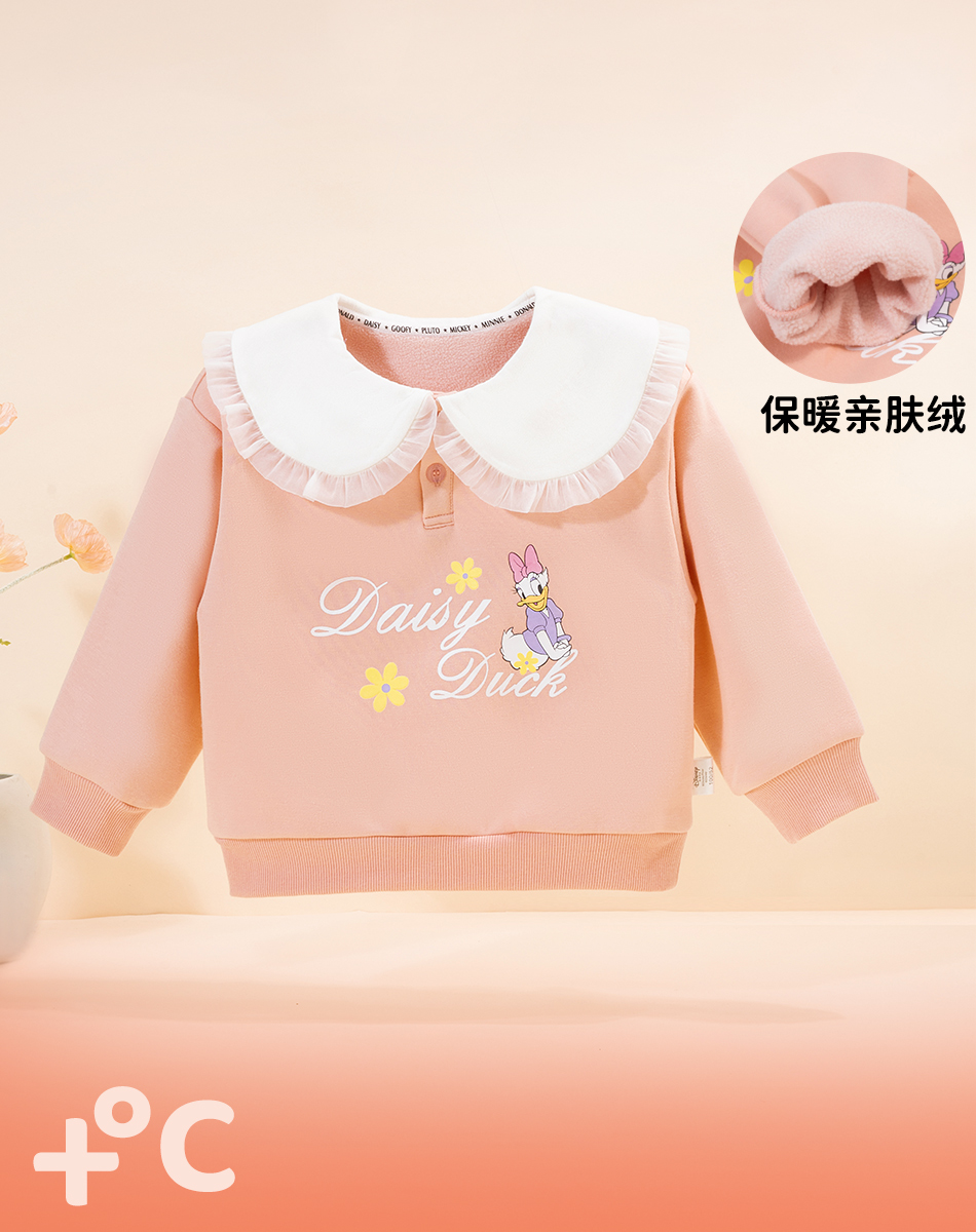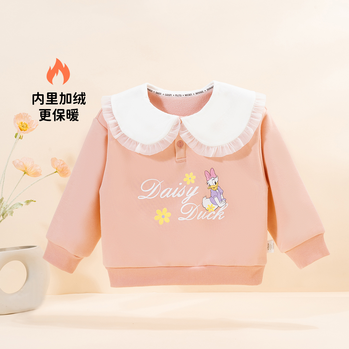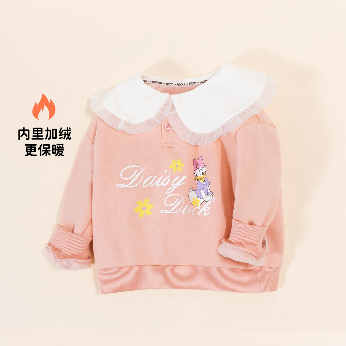 迪士尼女童卫衣儿童卫衣秋冬加绒保暖女童上衣休闲加厚2024新款冬装ZD3DS016