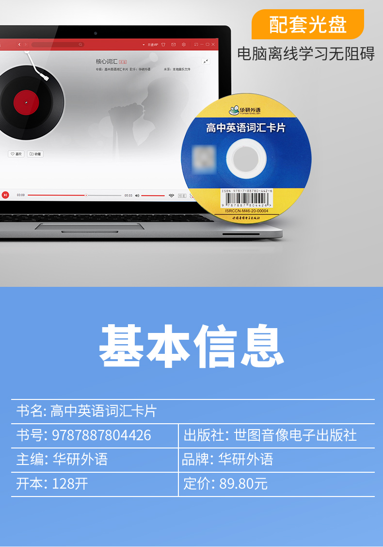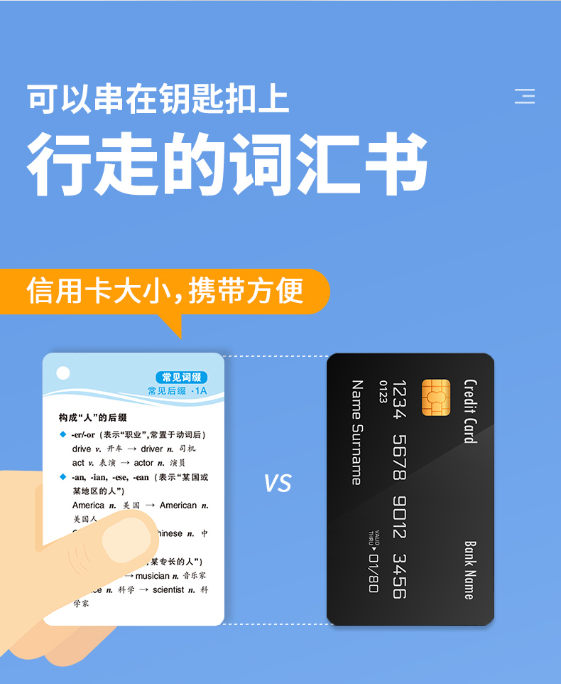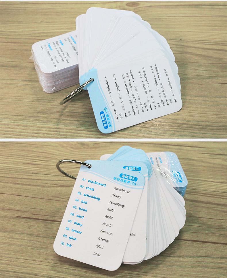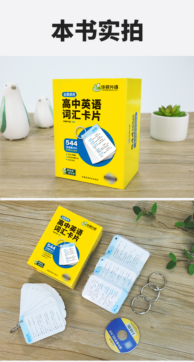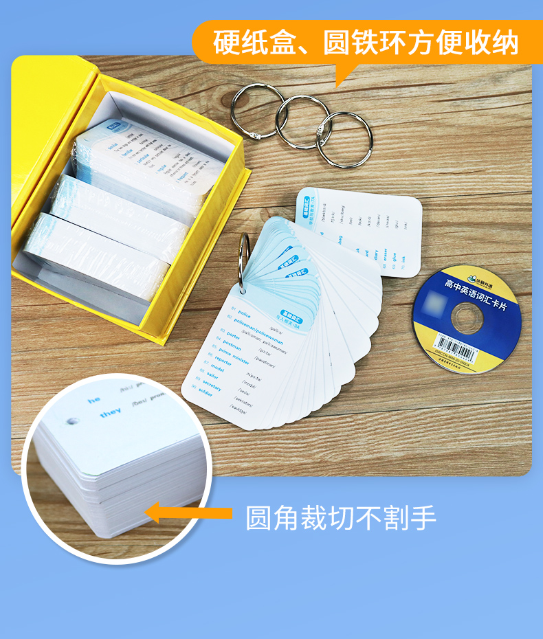 1. 便携卡片:544张词汇卡片,带装订孔,赠装订圈,小巧便携,可与《高中英语词汇念念不忘》配套,方便随时随地记单词,效率比只看书高10倍;