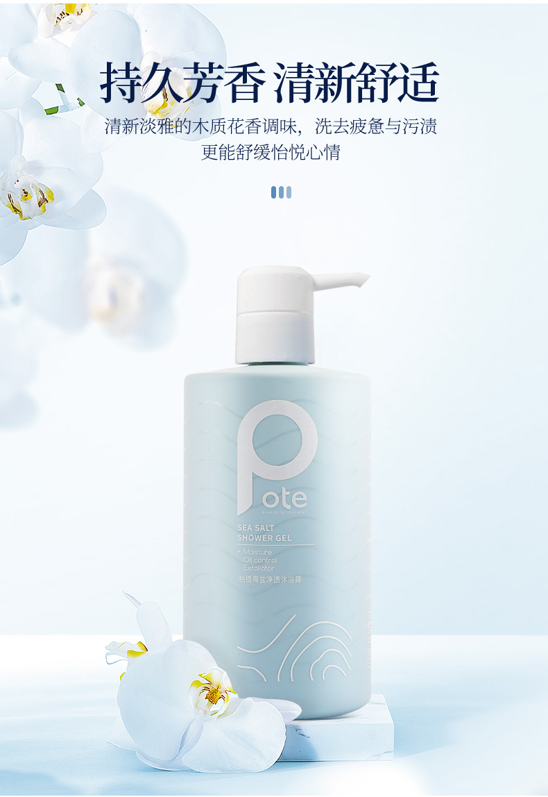 「除螨沐浴露」Pote柏缇海洋之谜海盐净透沐浴露 温和卸妆 水润保湿 控油去角质 475ml/瓶【赠随机袋装小样+沐浴球】