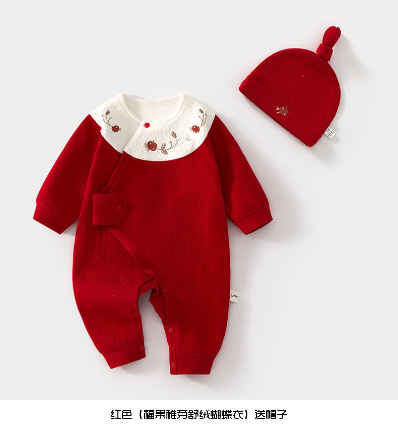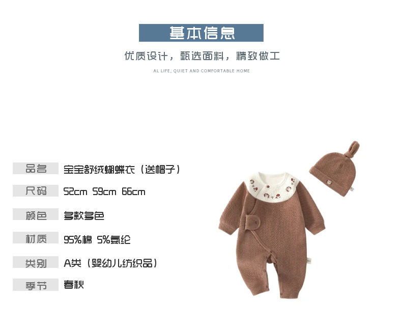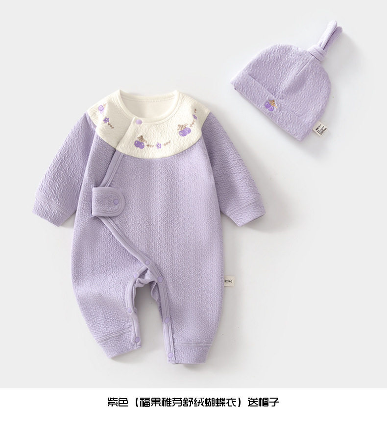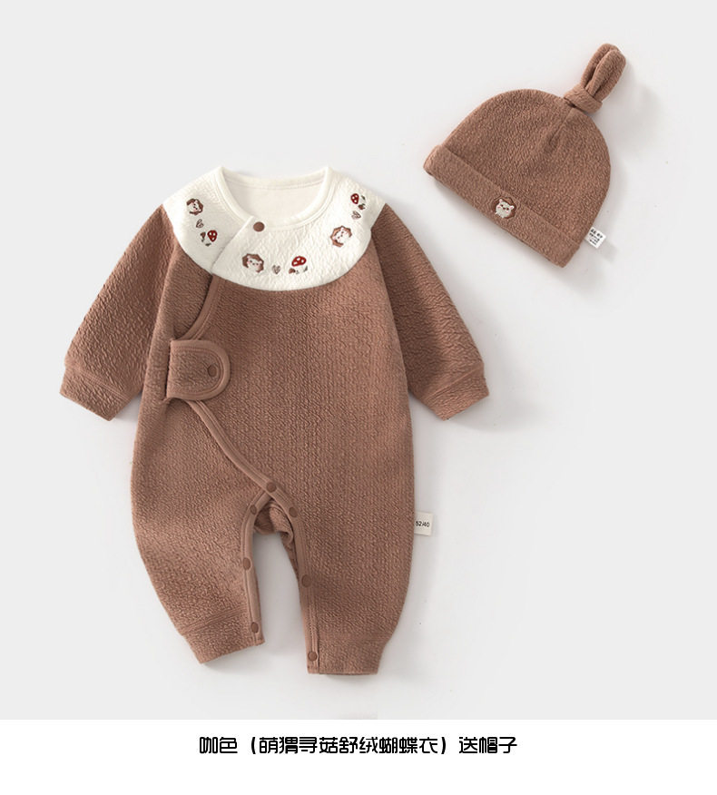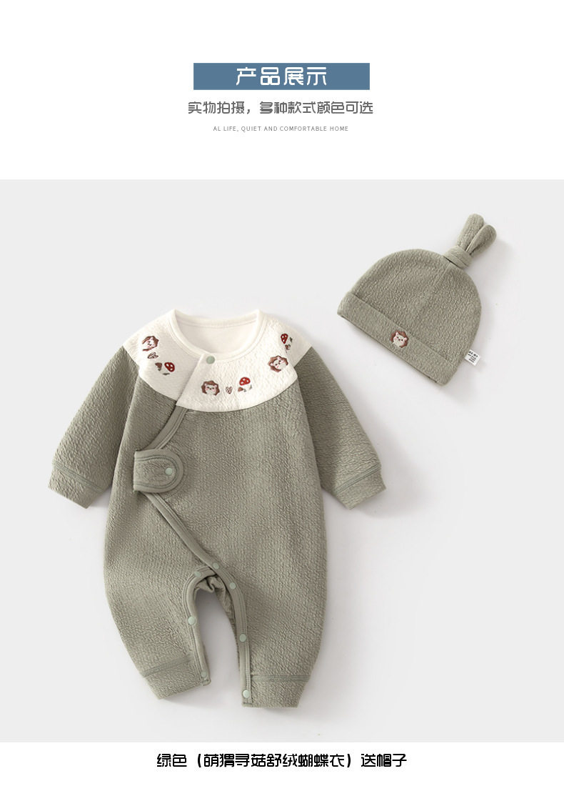 新生儿婴儿蝴蝶衣舒绒连体衣宝宝春秋送帽子爬服初生和尚服哈衣