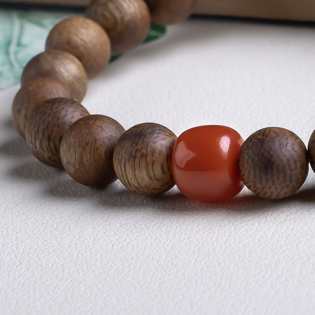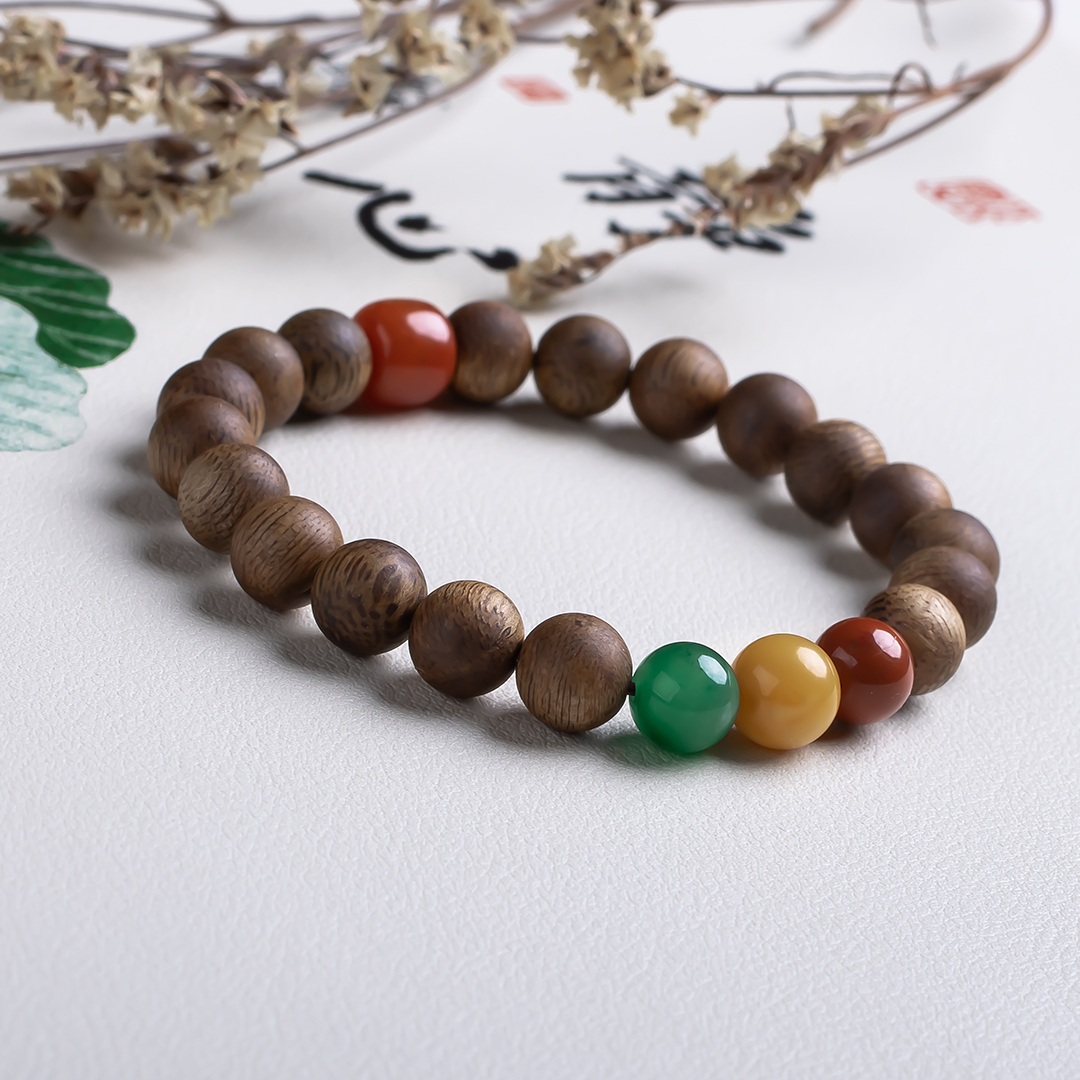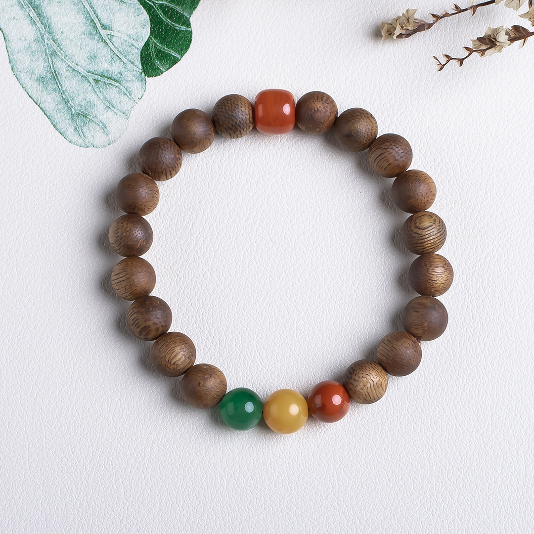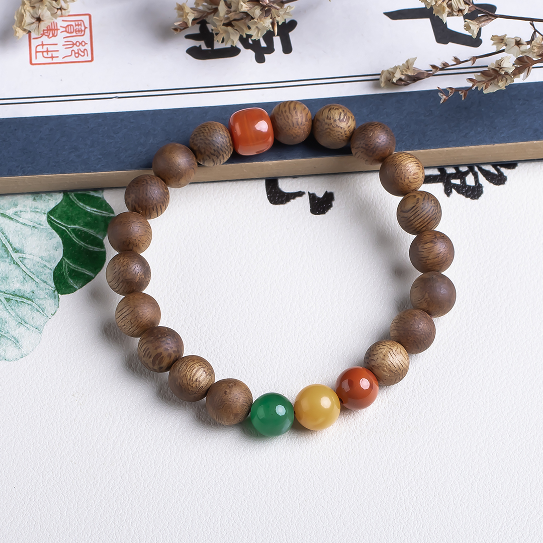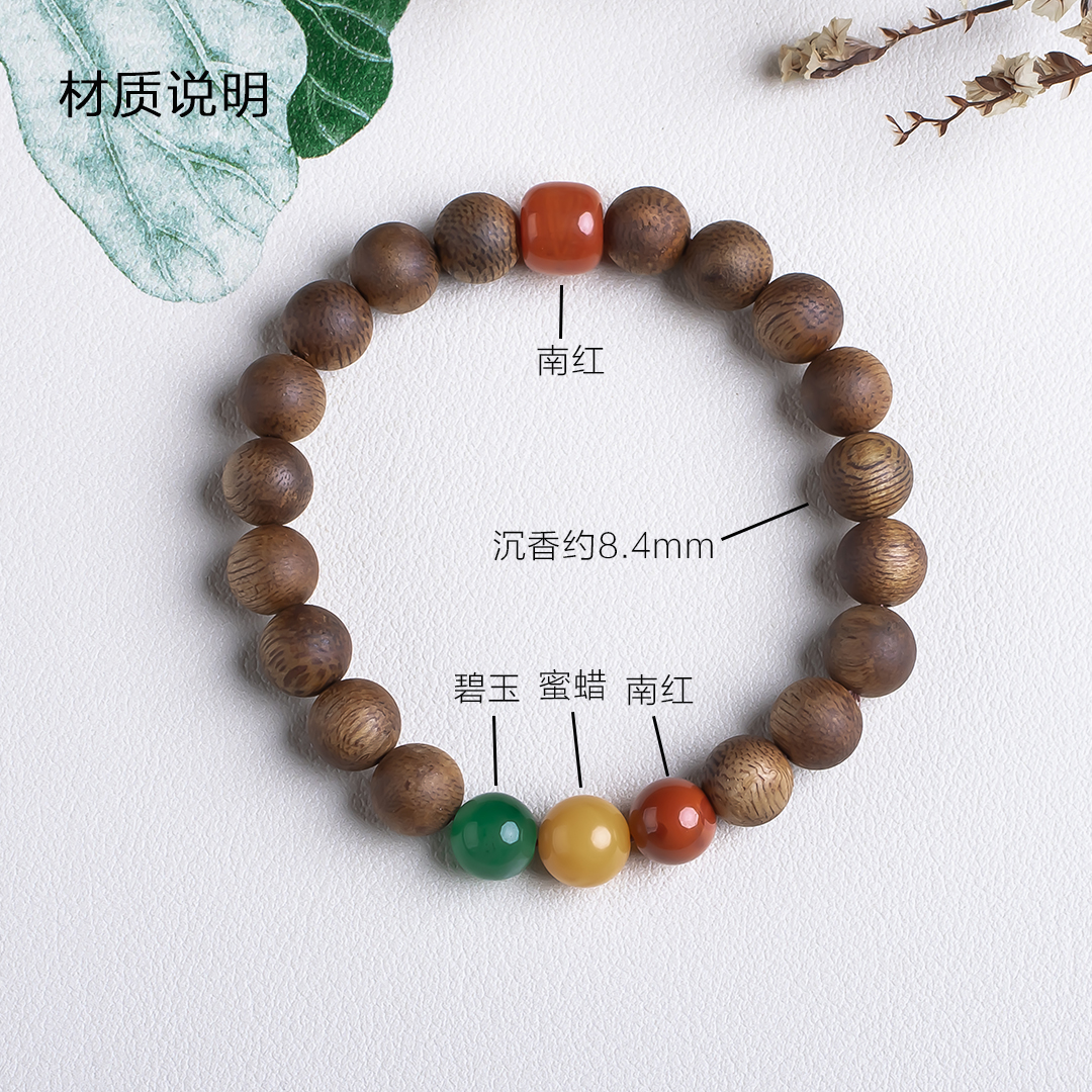 xy0503沉香+南红碧玉蜜蜡三宝手串,天然沉香约8.4mm,原色原味,香味自然清甜,南红碧玉蜜蜡三宝相聚,吉祥、好运、纳福,古色古香,上手百搭。