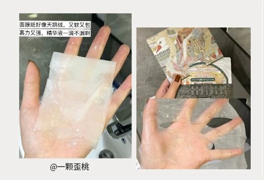 “天鹅绒”触感,宛如第二层肌肤。黄金比例天丝膜布厚度仅有0.22mm,清透隐形,比传统膜布更柔软。具有普通面膜的20倍吸收力!(天丝纤维材质细密紧凑,拥有很好的吸湿功能,能够吸附面膜布自身重量15-20倍的精华液)服帖不易滴液,精华喝到“饱”。