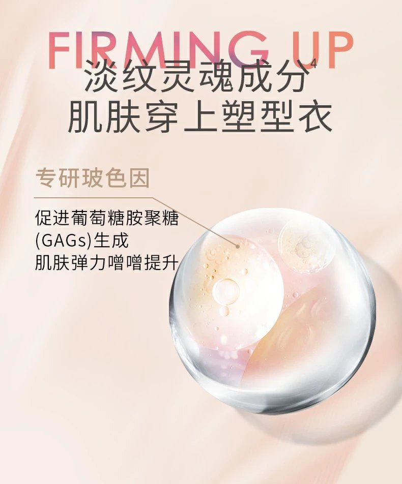 我们皮肤的细胞外基质中有一种叫氨基葡聚糖GAGS的物质,会形成网状结构防止水分流失,链接皮肤各个组织,维持弹性延缓衰老。随着皮肤衰老我们合成GAGs的能力会下降,而玻色因就能做到穿透肌肤,刺激GAGs合成,让皮肤表皮和真皮连接的更结实饱满,摸起来更Q弹。