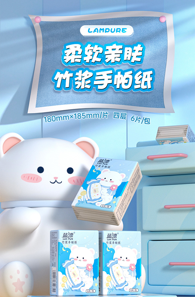 【19.9抢60包!超亲肤竹浆本色手帕纸】四层柔韧加厚,干湿两用皆可,迷你手帕纸巾卷纸抽纸10包/装