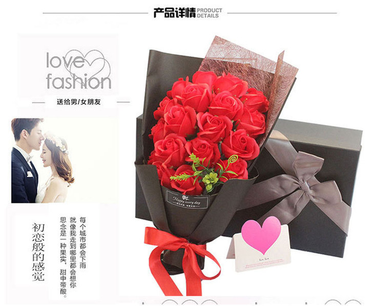 【礼物】18朵香皂花束礼盒母亲情人节浪漫保鲜玫瑰花礼物肥皂花