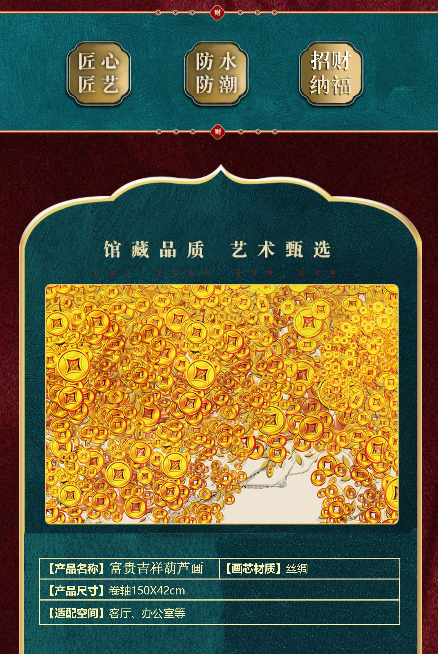 富贵吉祥葫芦画客厅办公室卷轴挂画