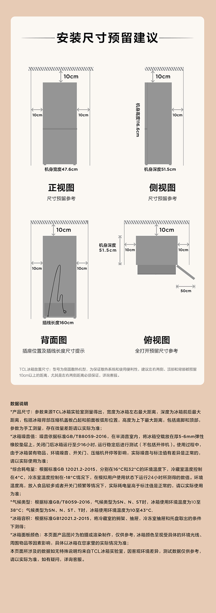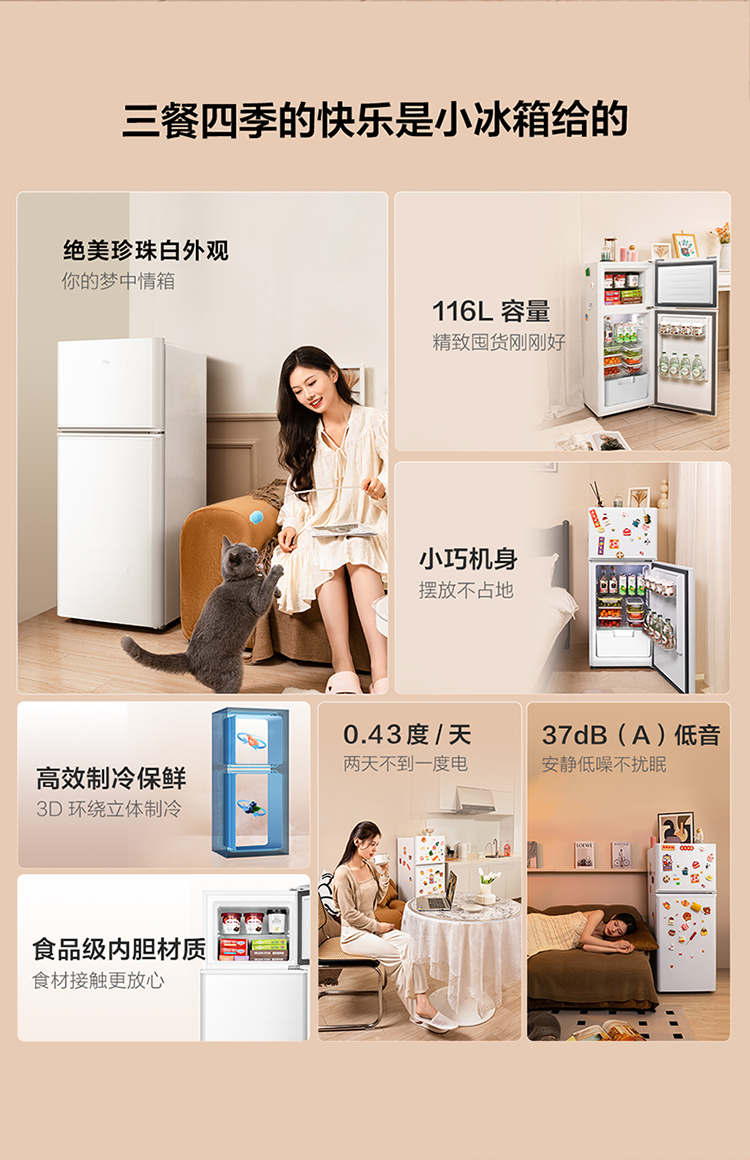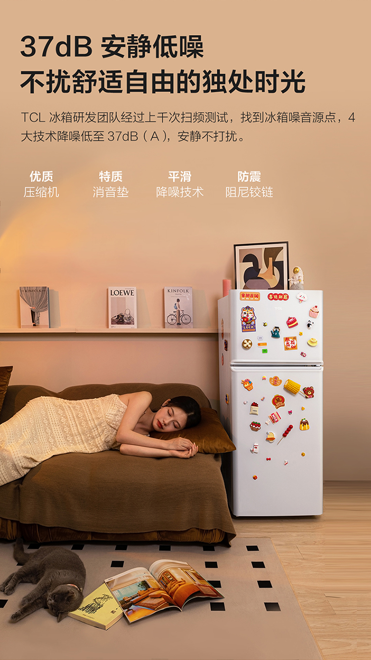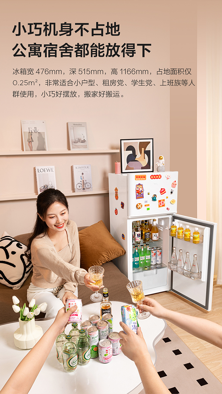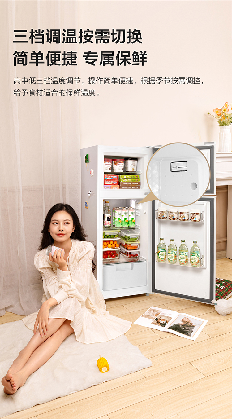 TCL 116升迷你双门白色小冰箱 二级能效 节能低音 宿舍租房 R116L5-B