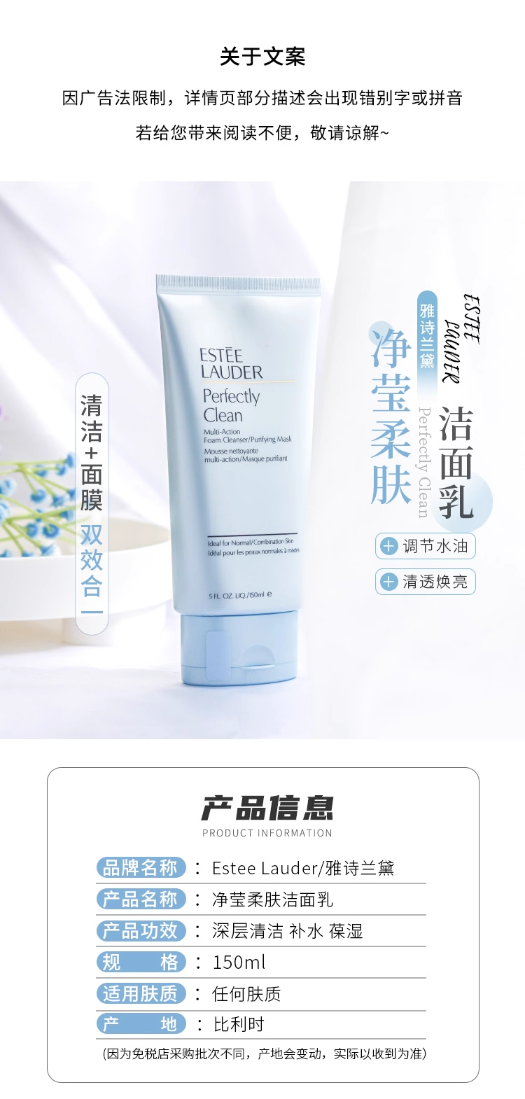 【限时特惠】雅诗兰黛净莹柔肤洁面乳洗面奶150ml 深层清洁保湿滋润
