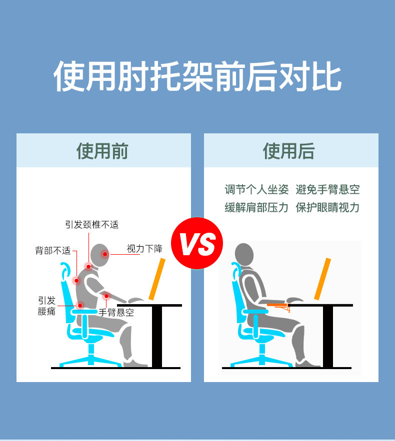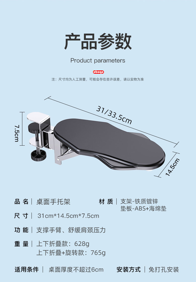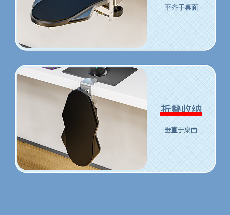 桌面手托架人体工学手肘托手臂托胳膊支架可折叠旋转免打孔安装