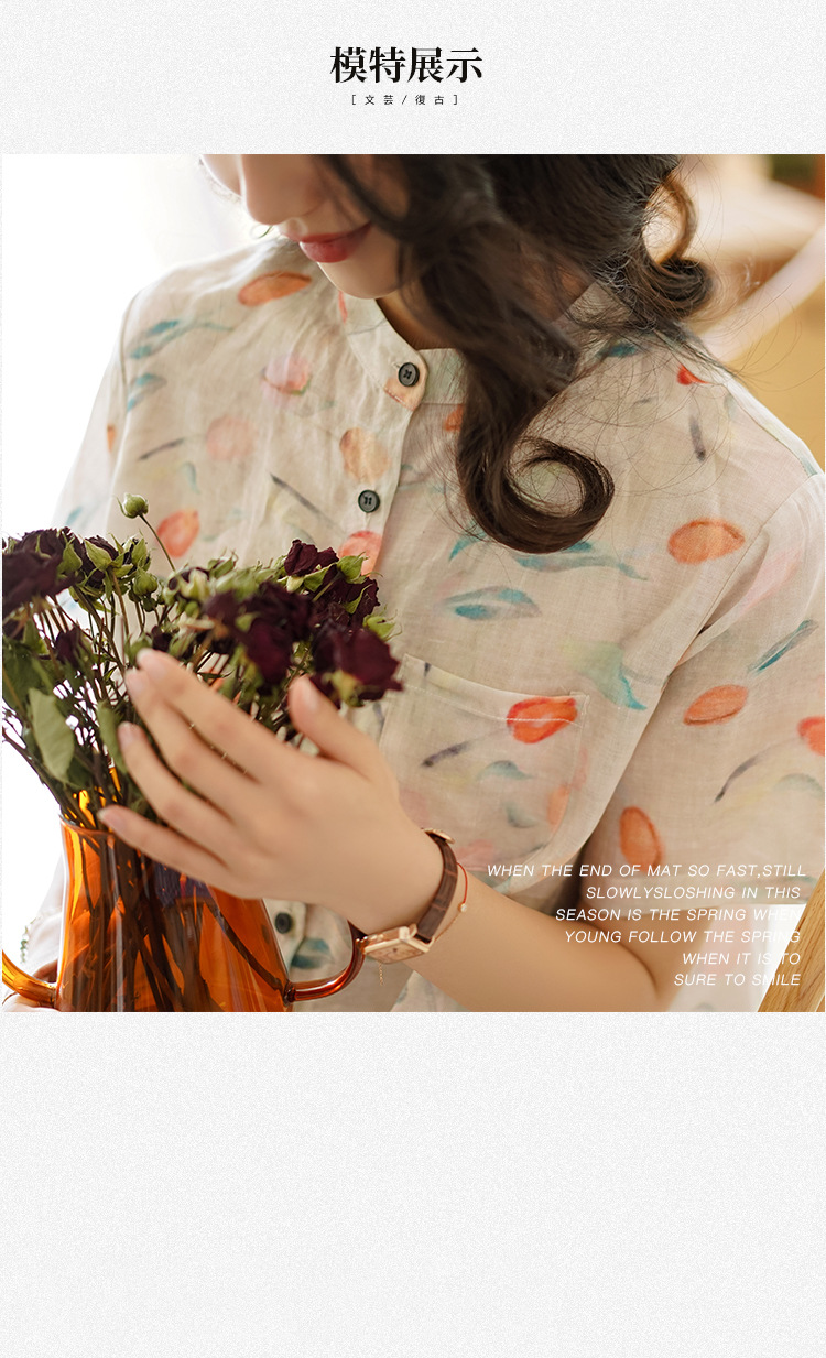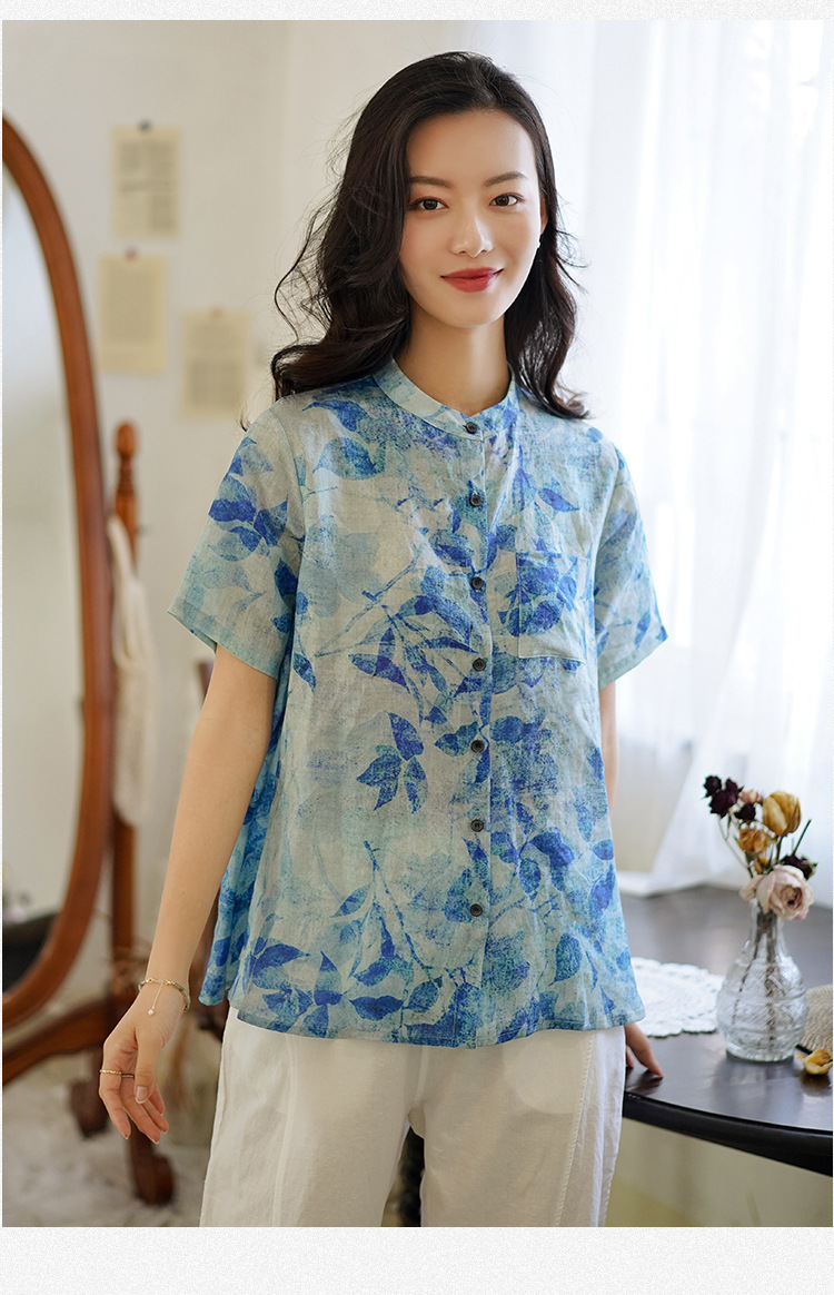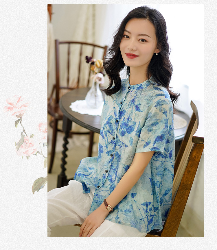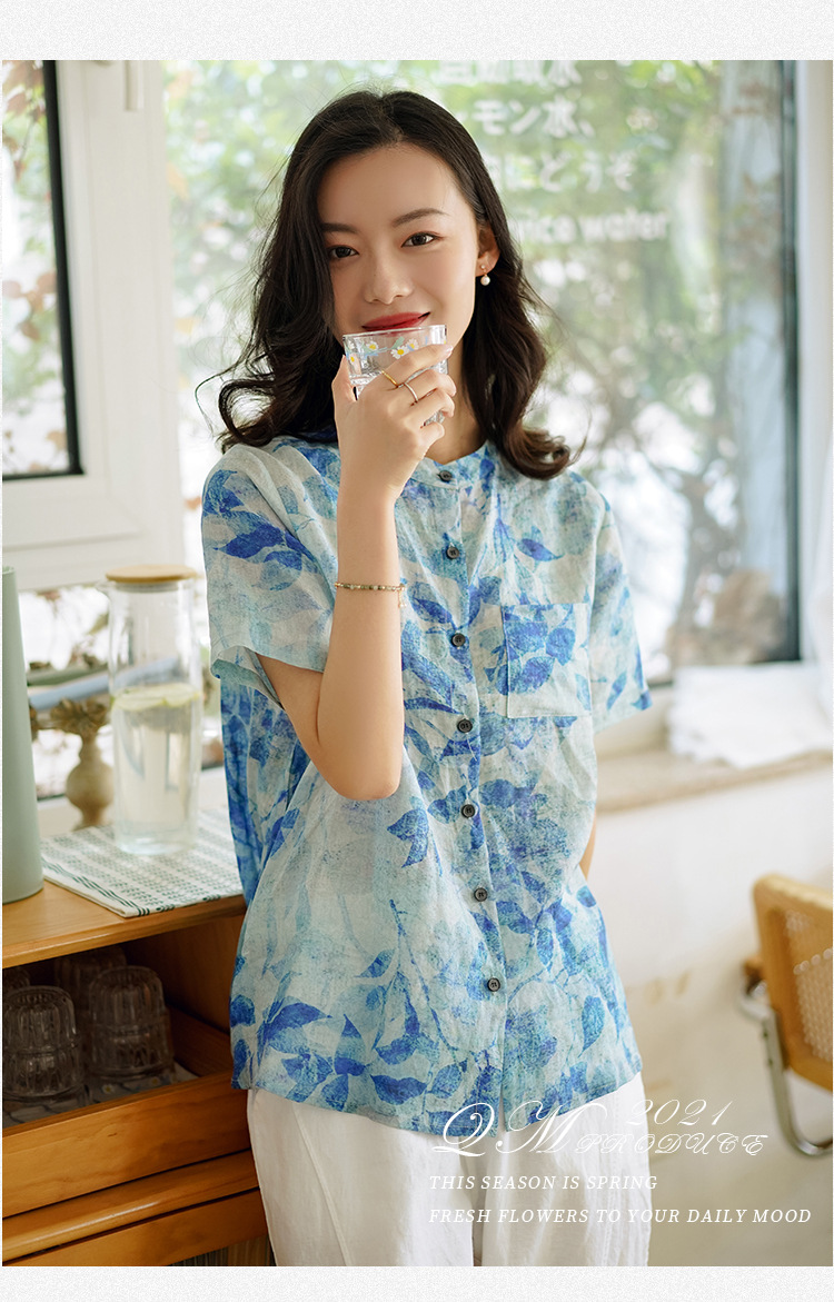 天然苎麻短袖衬衫 宽松国风 复古碎花 女衬衣