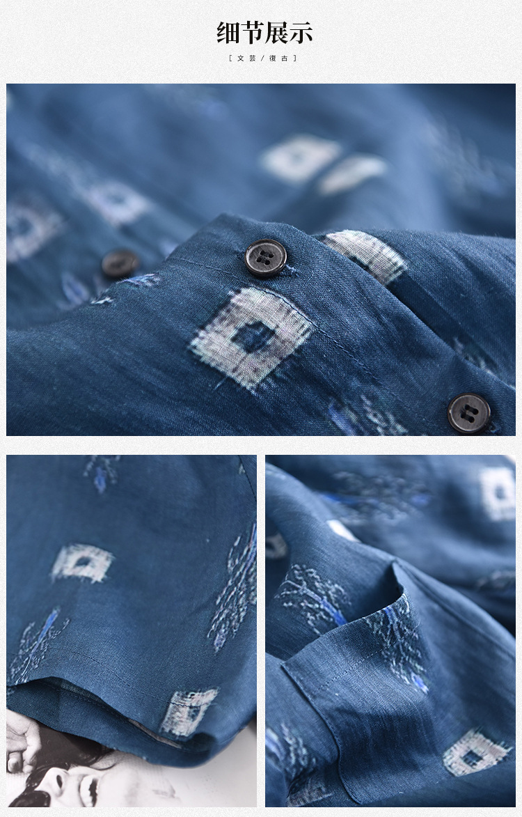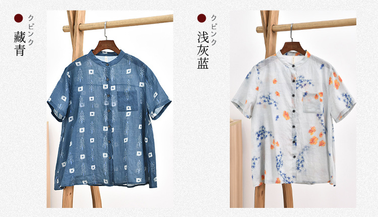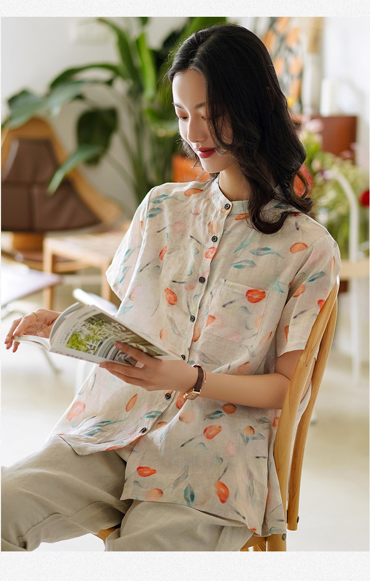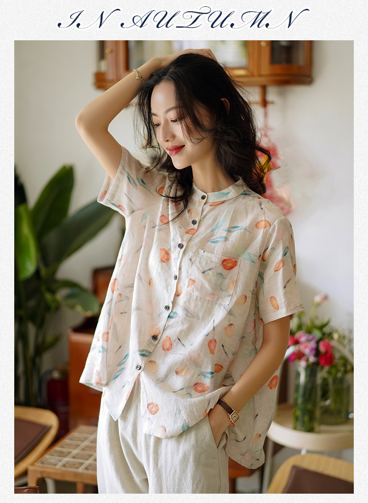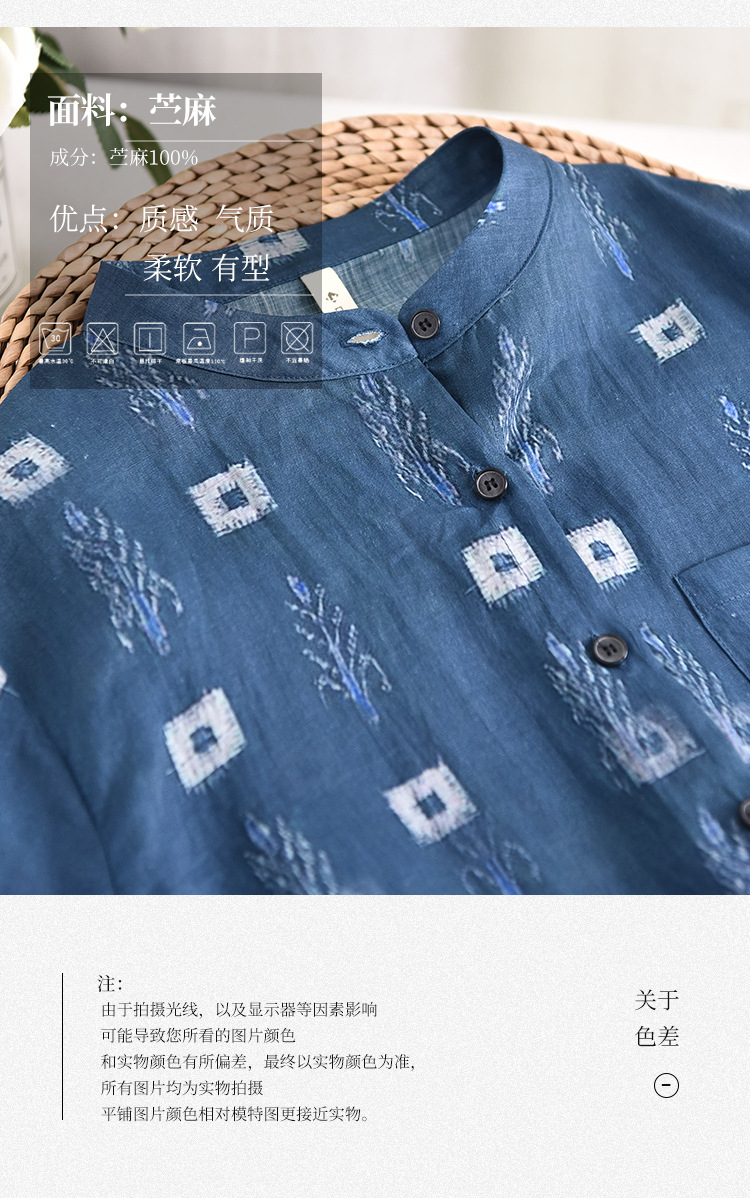 天然苎麻短袖衬衫 宽松国风 复古碎花 女衬衣