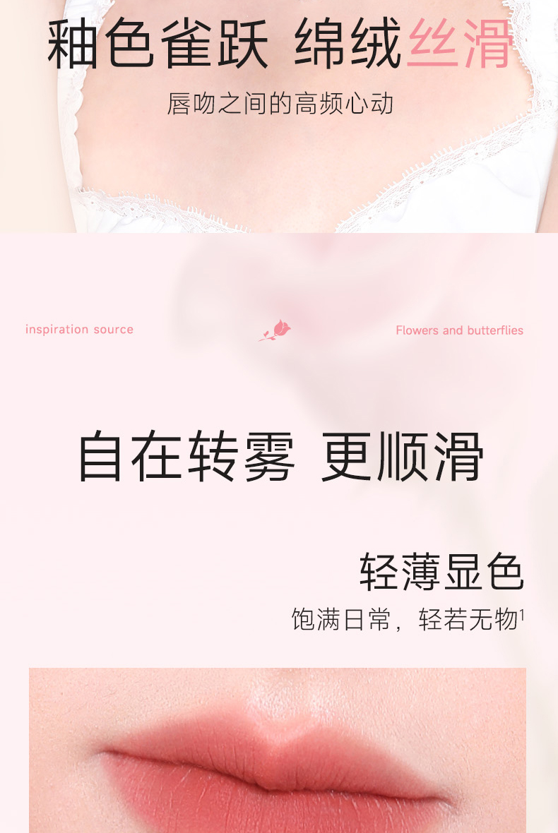 【有赞分销】菲鹿儿浮蝶哑光唇釉丝绒雾面持久不易掉色不易沾杯学生党伪素颜显白唇彩
