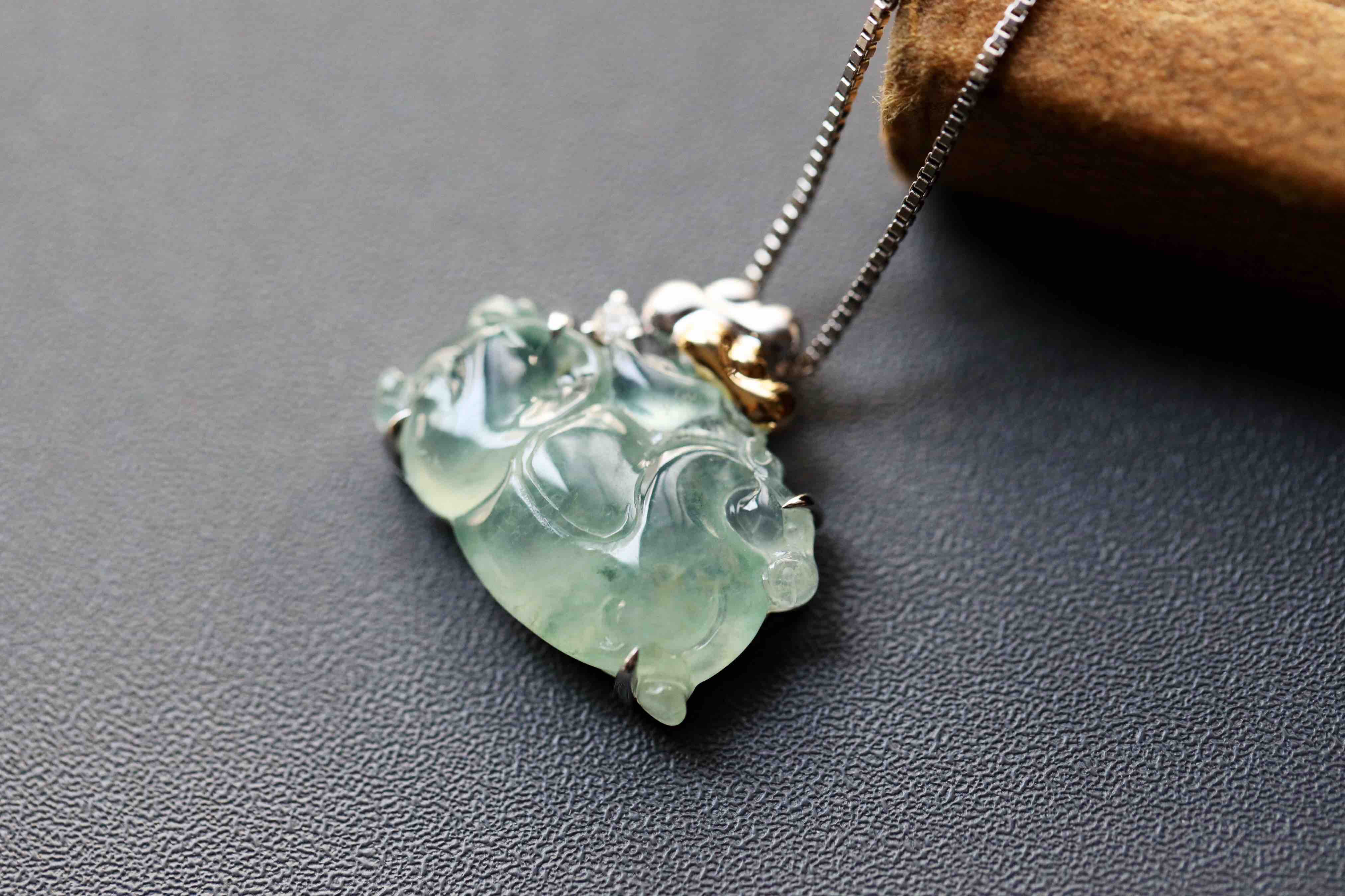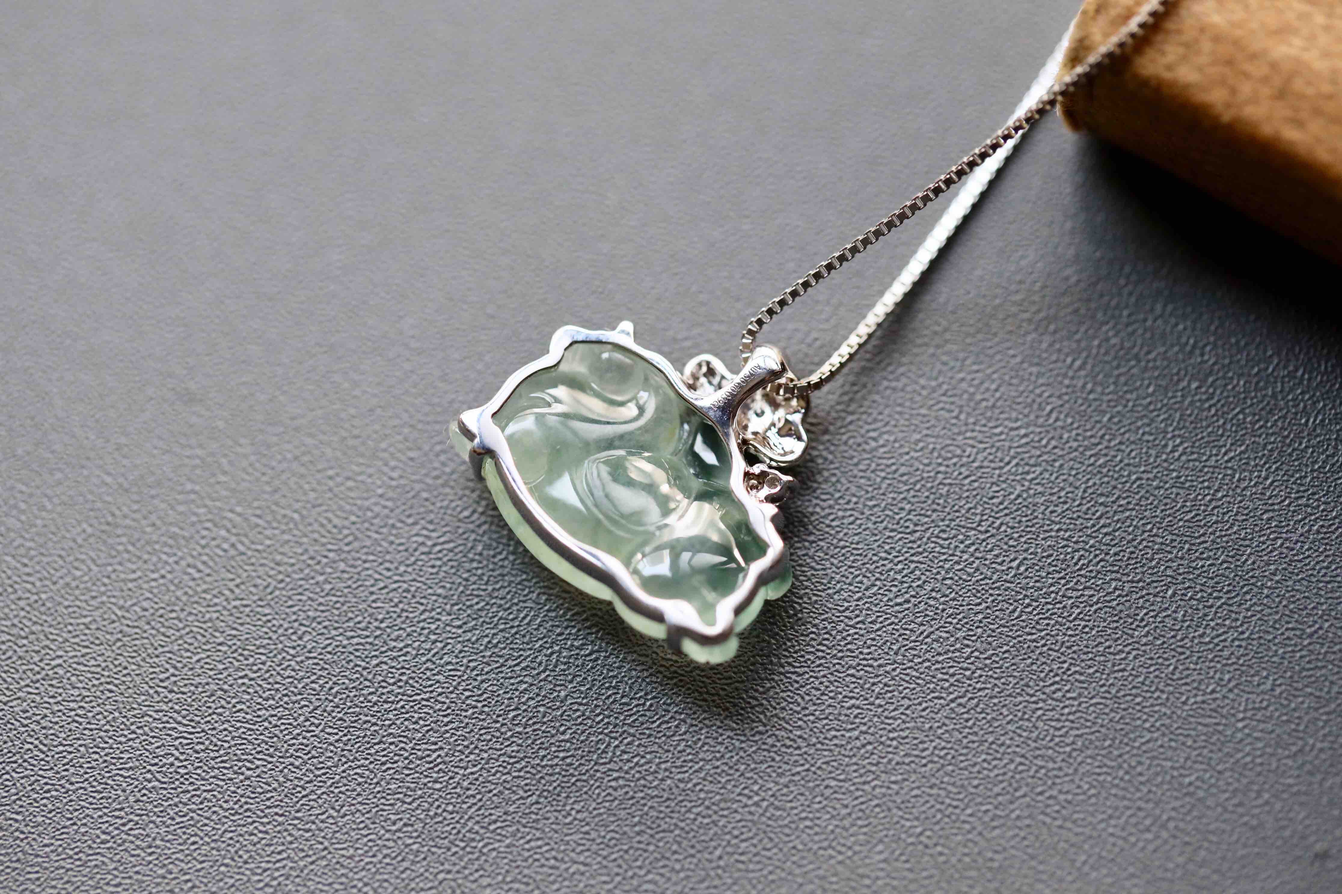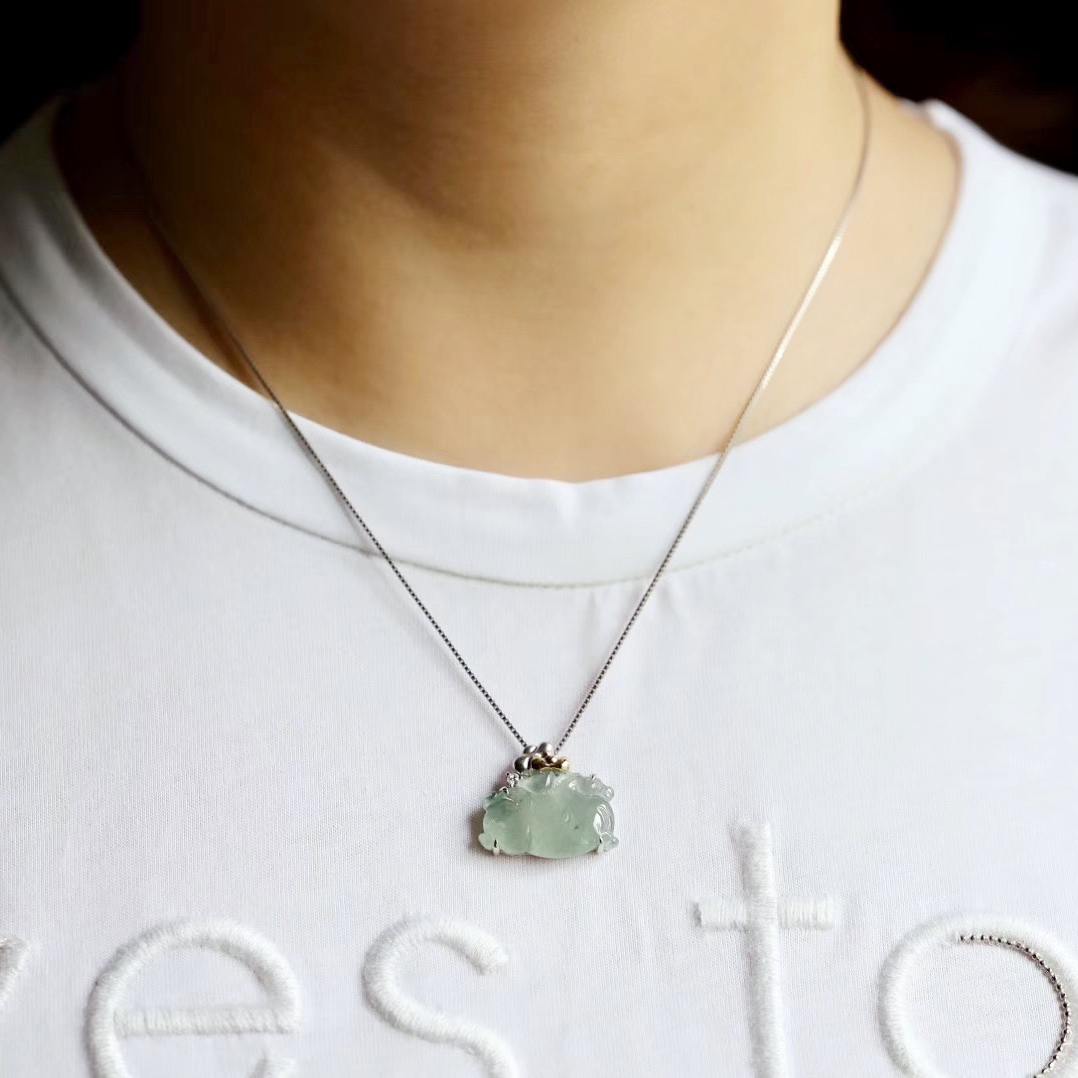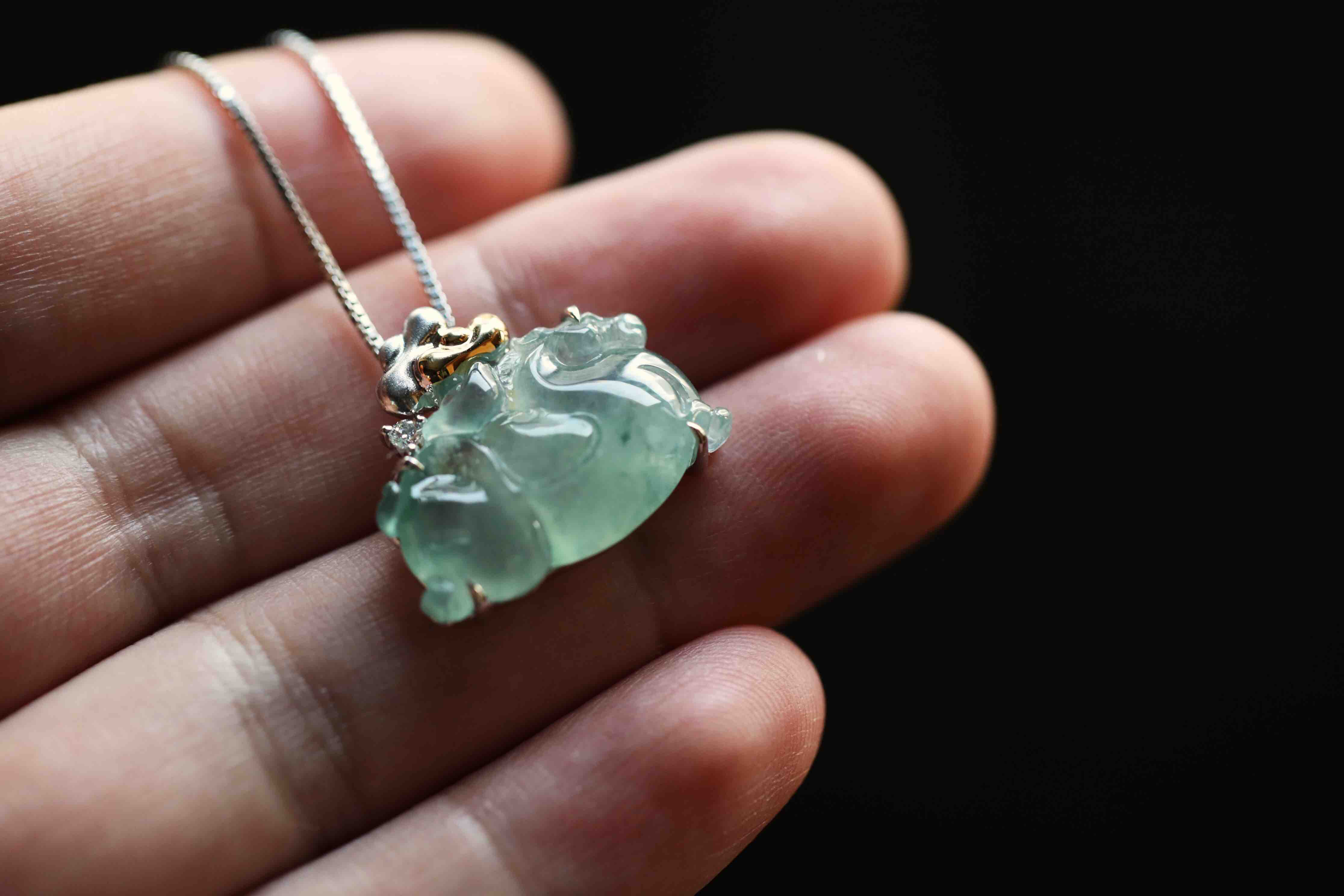 变有钱啊变有钱,那就来个冰种飘花翡翠马上有钱吧,翡翠禄来原创设计系列,18k白金钻石镶嵌,镶嵌后21.8×19×5.7mm,超特别的,马儿造型取自古代的唐马,胖嘟嘟的,富贵无比,可爱又呆萌,背上18k黄金和白金打造的金元宝,金山银山都有了,小四价位,让你做人群中特别的那一位
