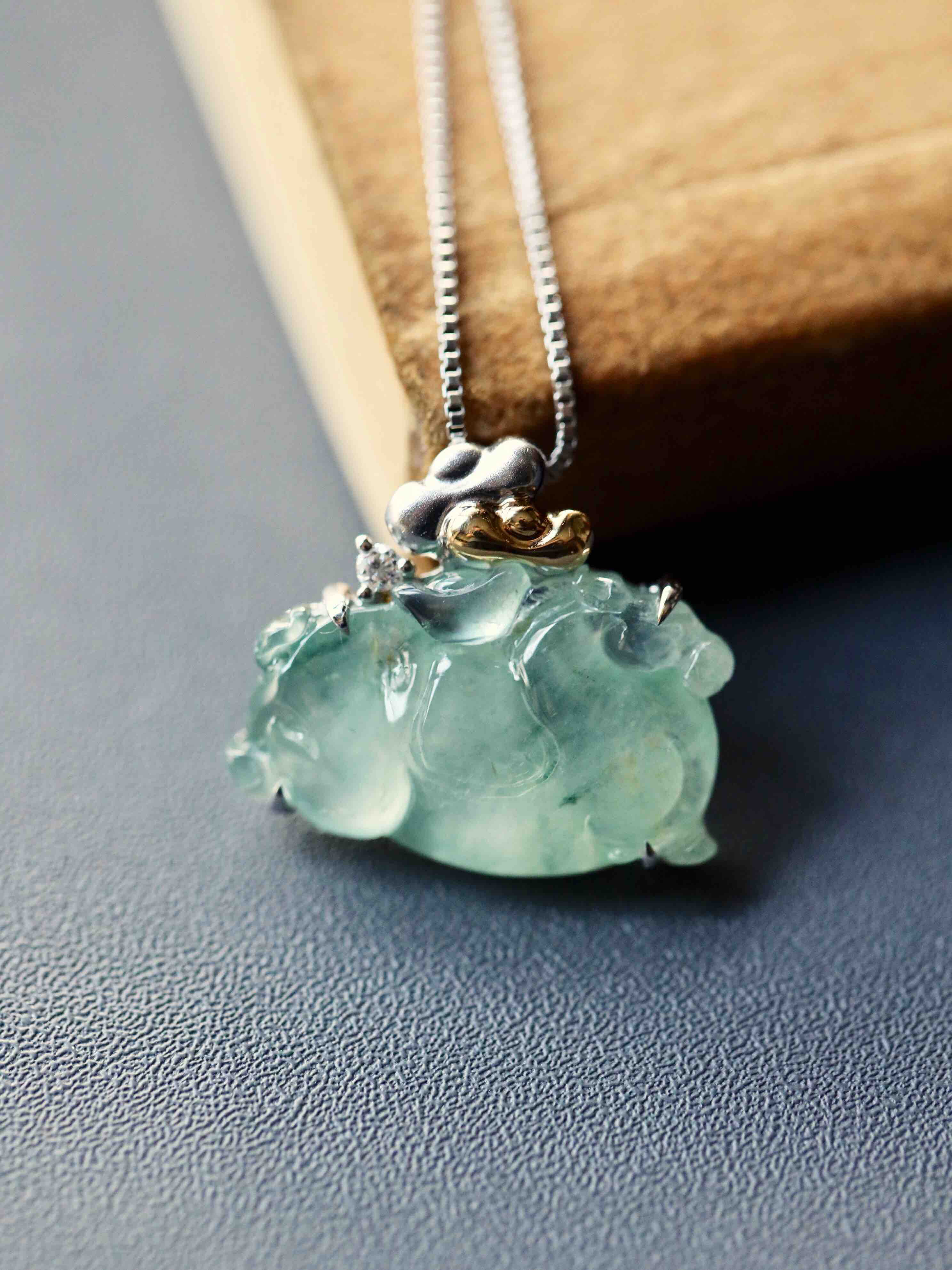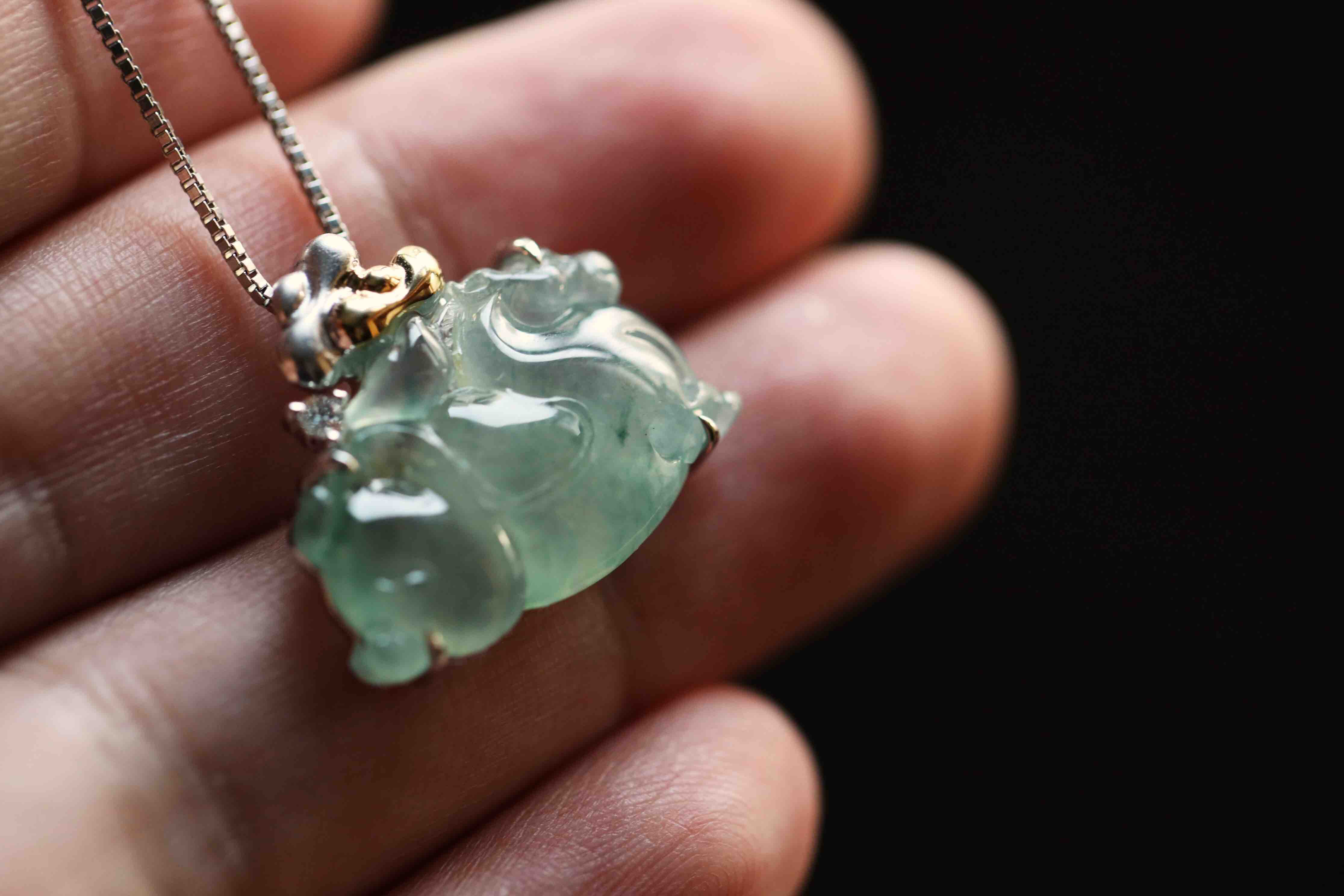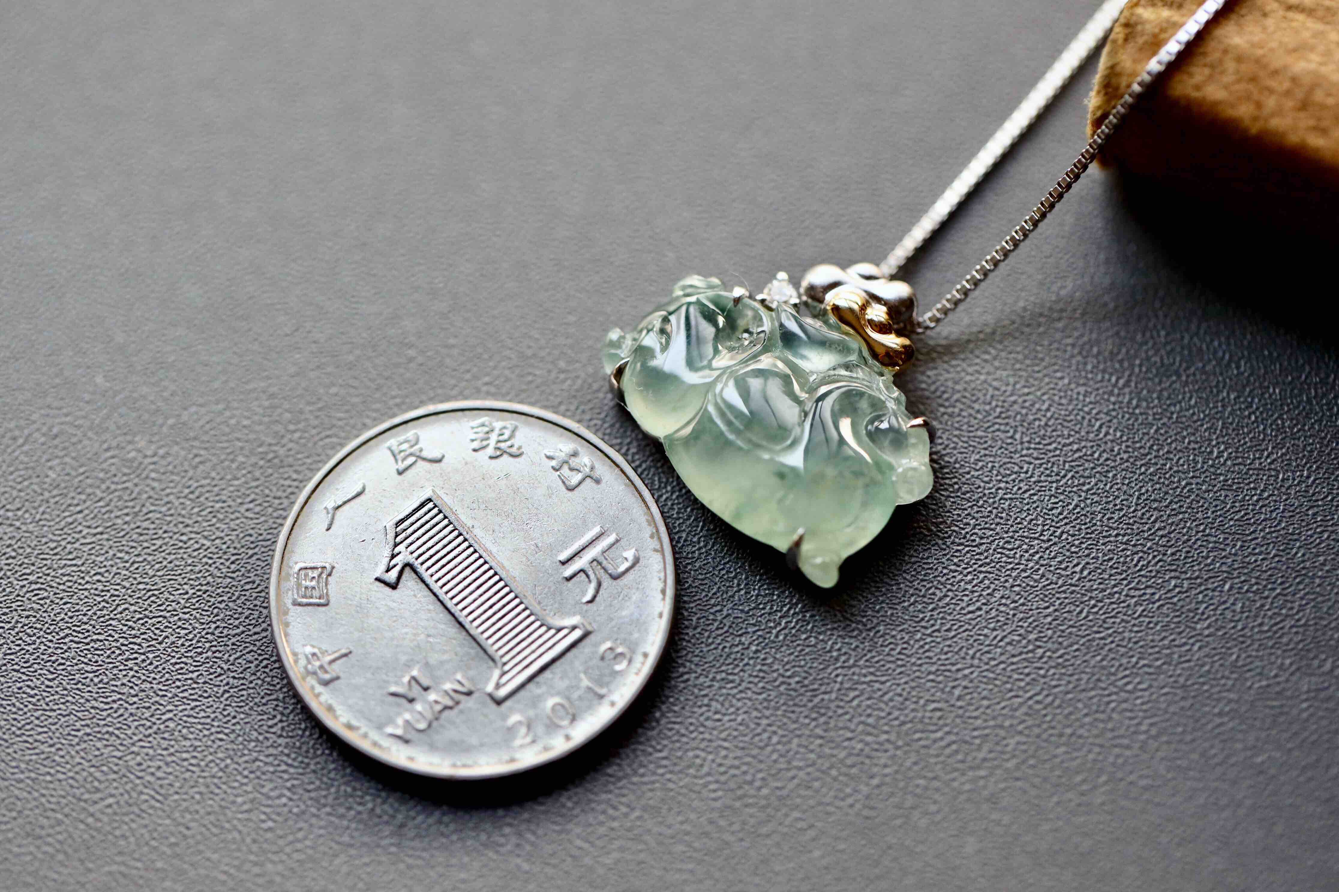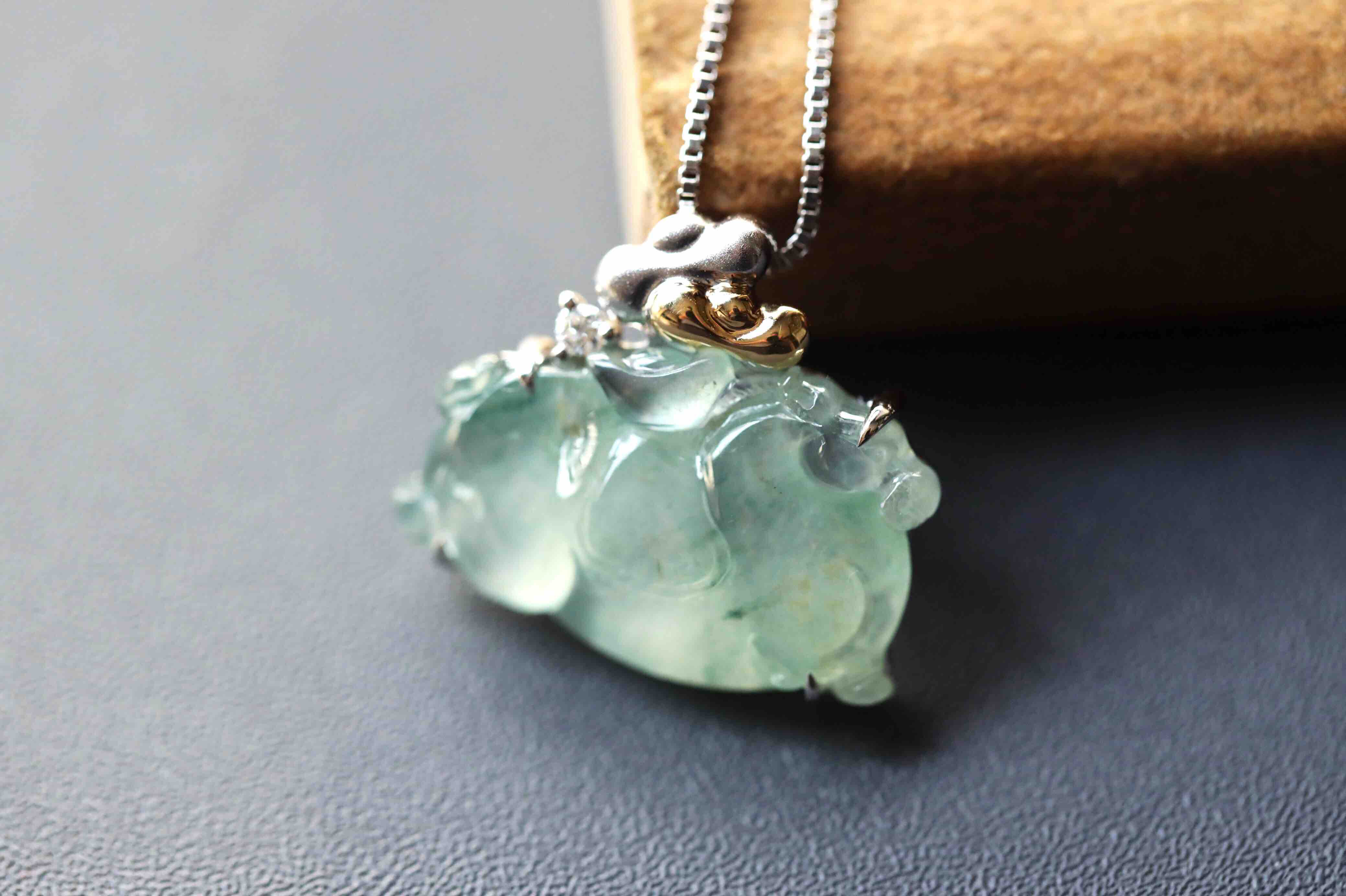变有钱啊变有钱,那就来个冰种飘花翡翠马上有钱吧,翡翠禄来原创设计系列,18k白金钻石镶嵌,镶嵌后21.8×19×5.7mm,超特别的,马儿造型取自古代的唐马,胖嘟嘟的,富贵无比,可爱又呆萌,背上18k黄金和白金打造的金元宝,金山银山都有了,小四价位,让你做人群中特别的那一位