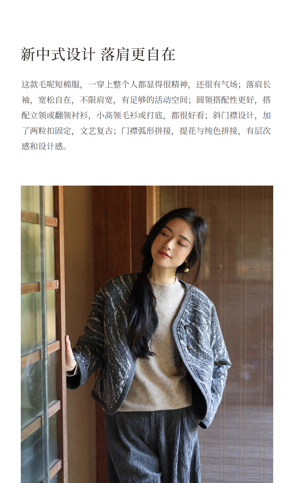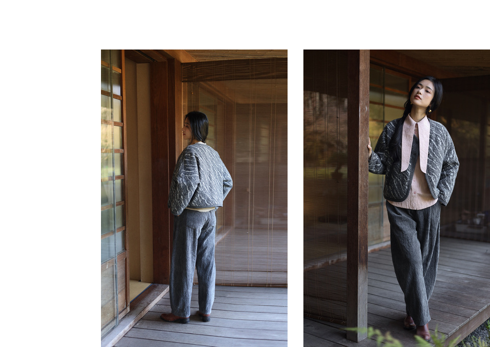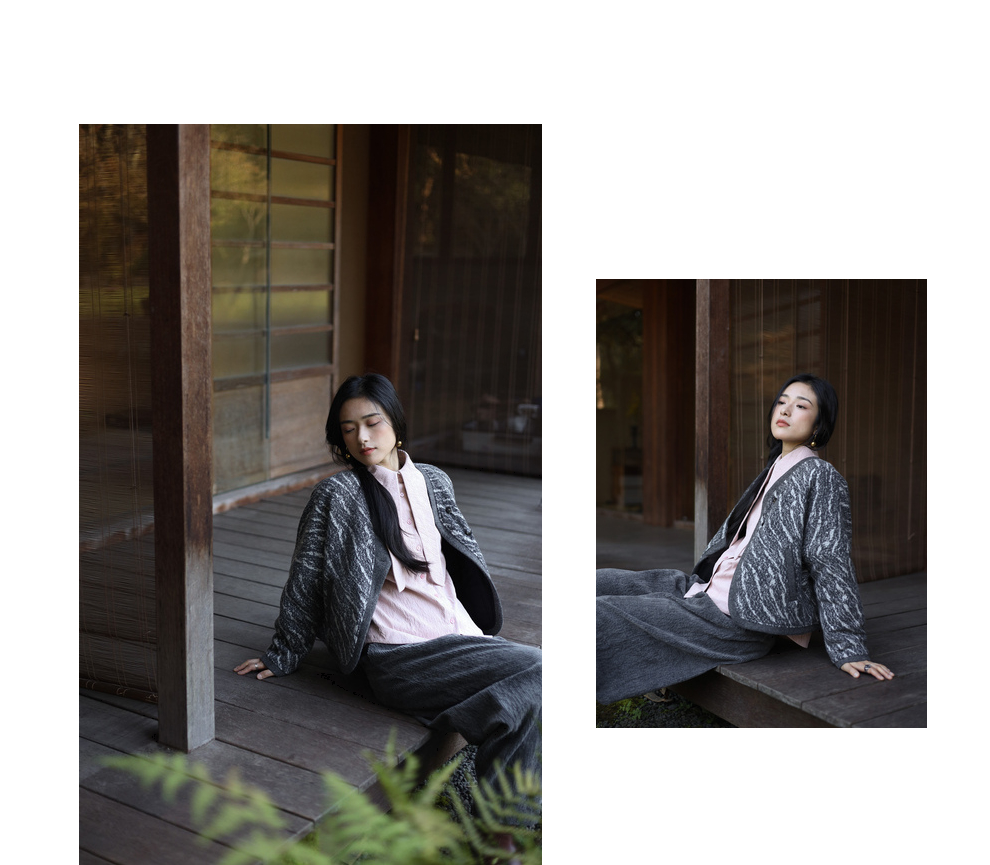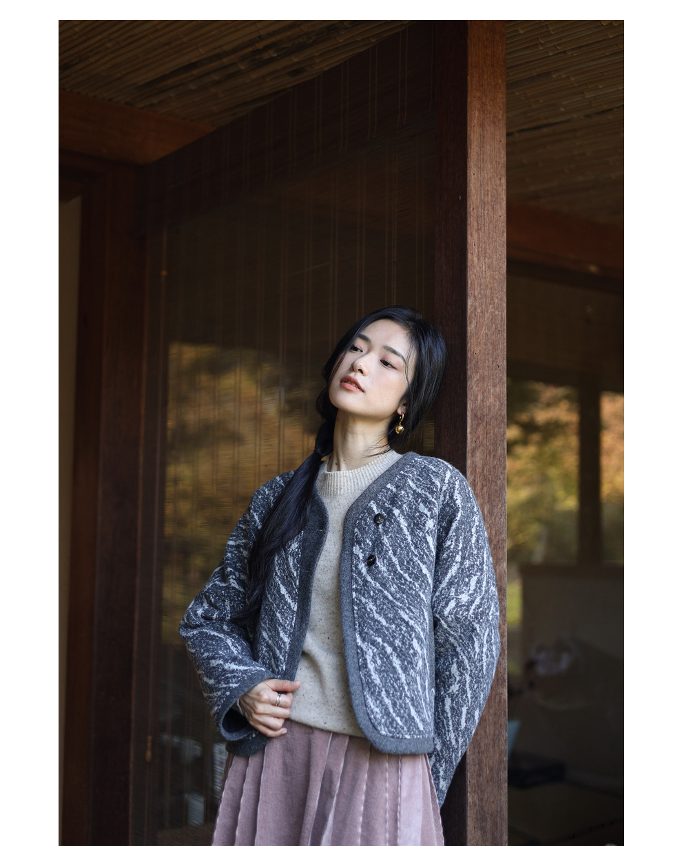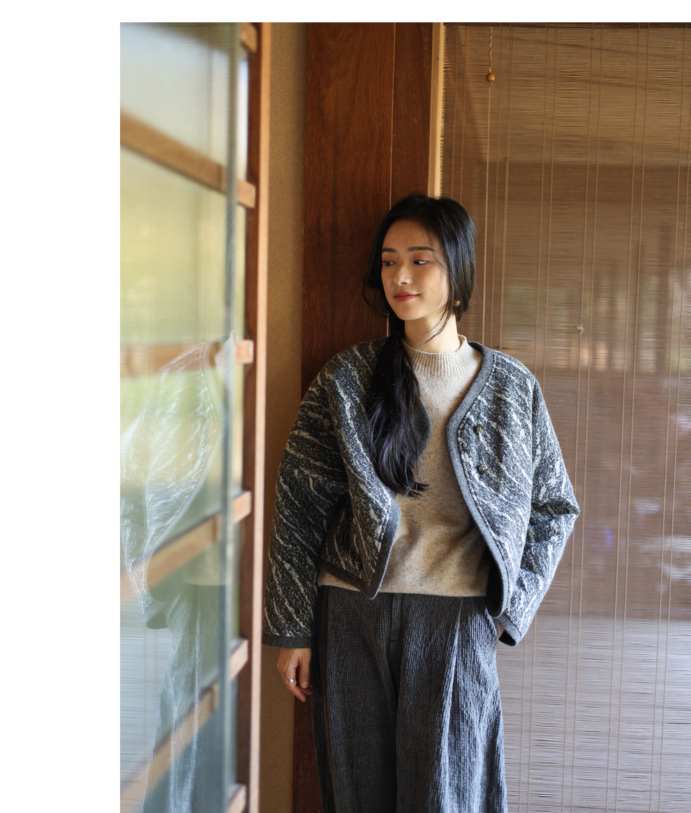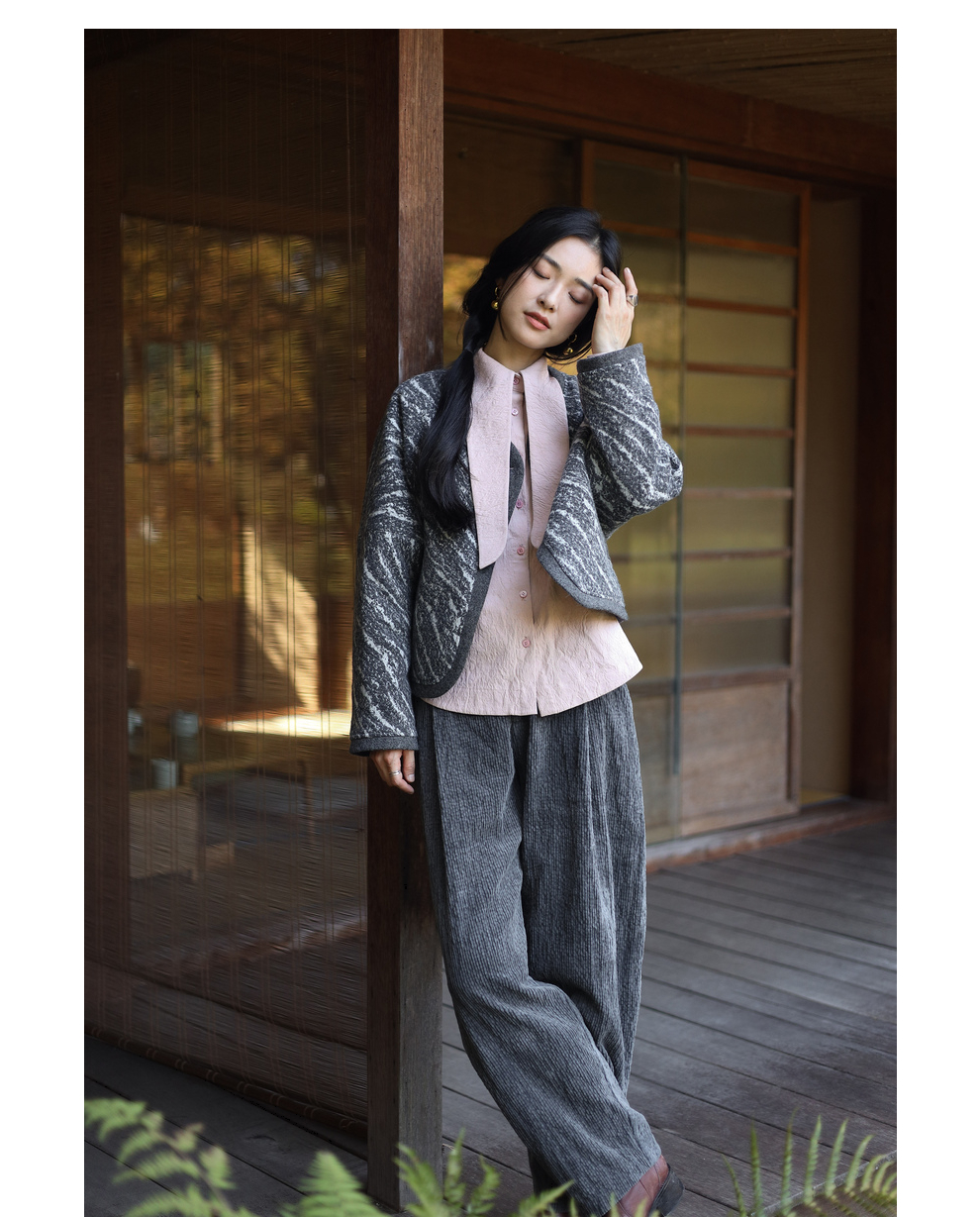 绽放936朵/高端定制黑灰提花斜襟新中式古典显气质结构感文艺外套