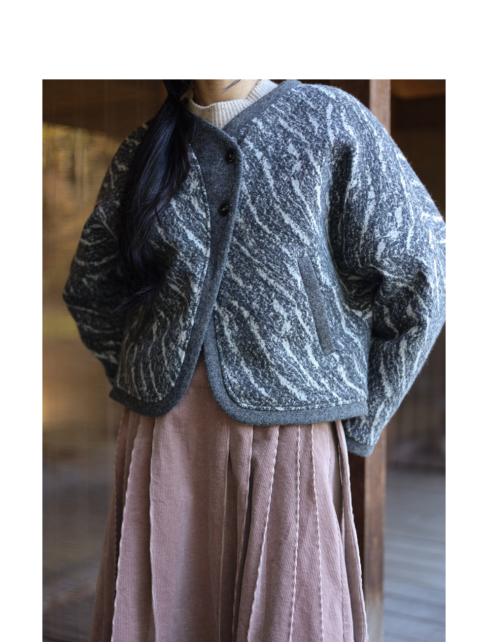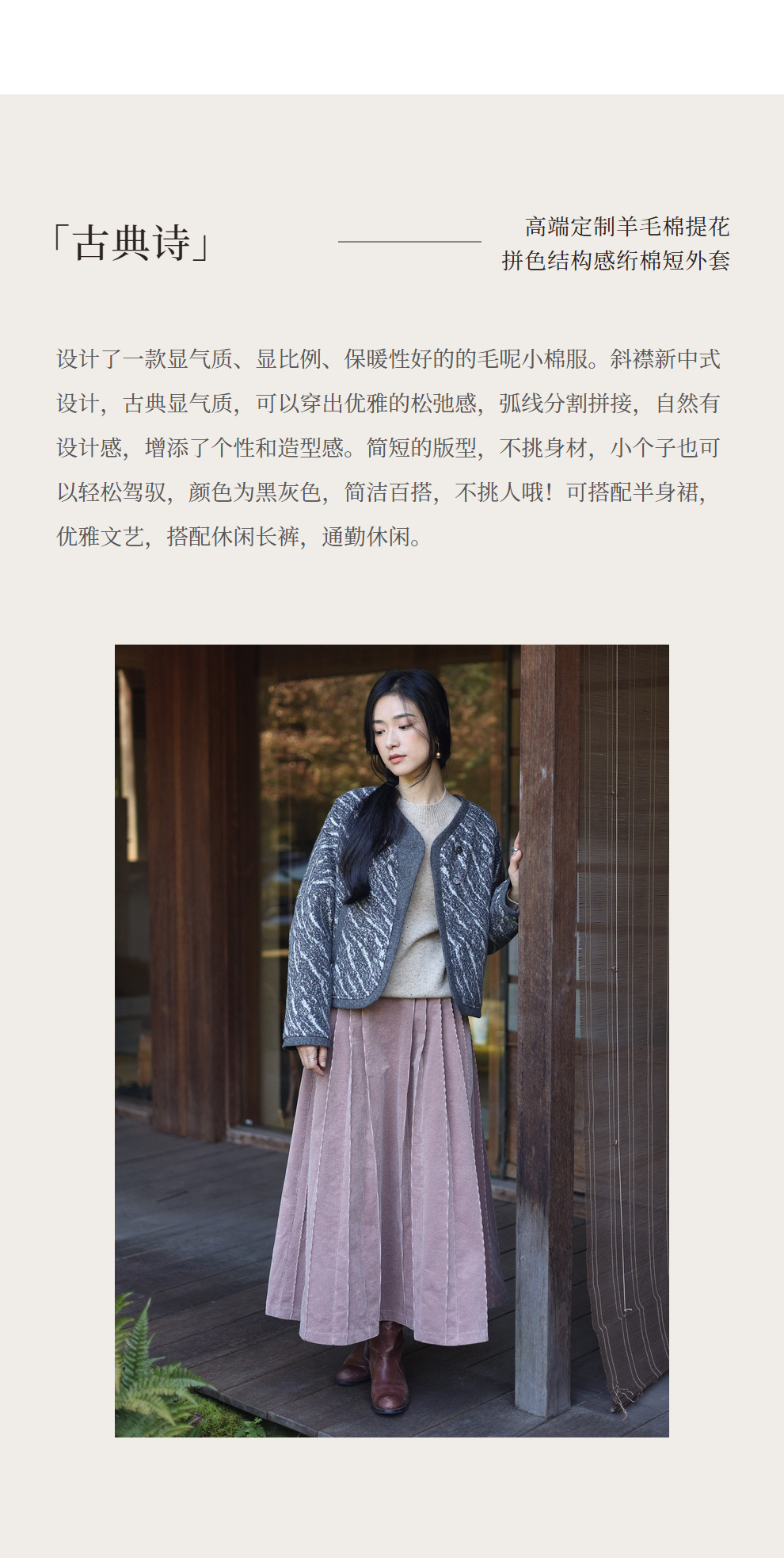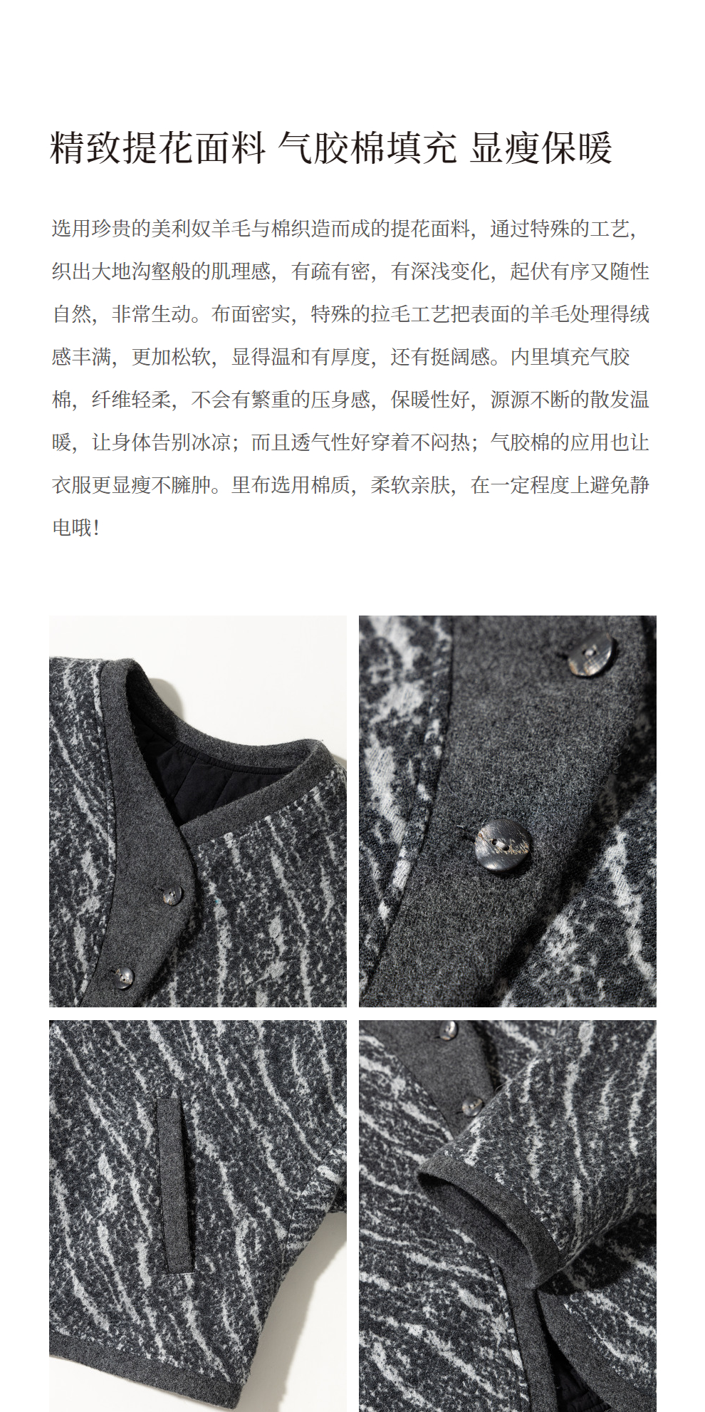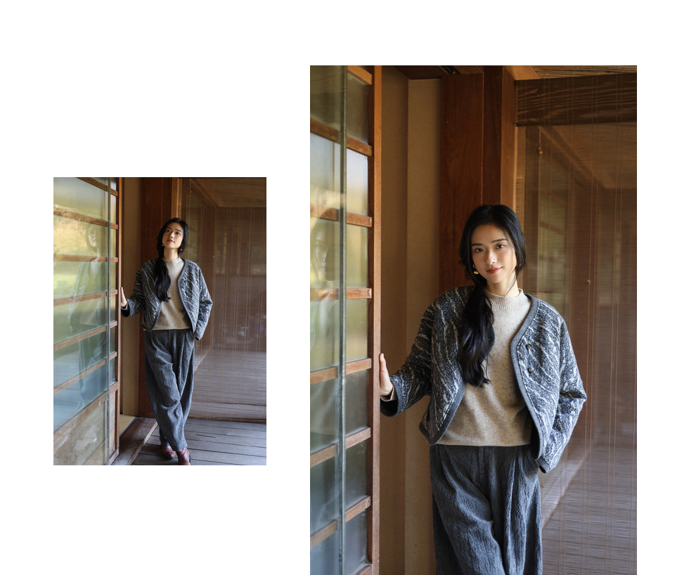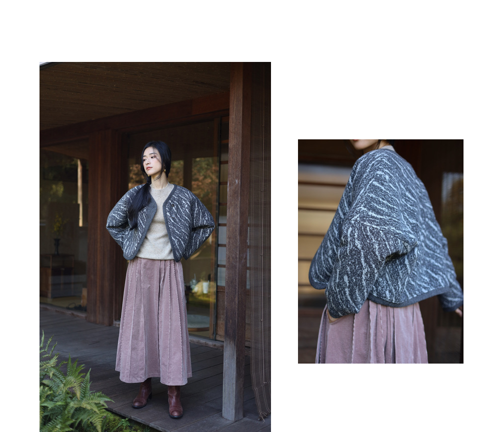 绽放936朵/高端定制黑灰提花斜襟新中式古典显气质结构感文艺外套