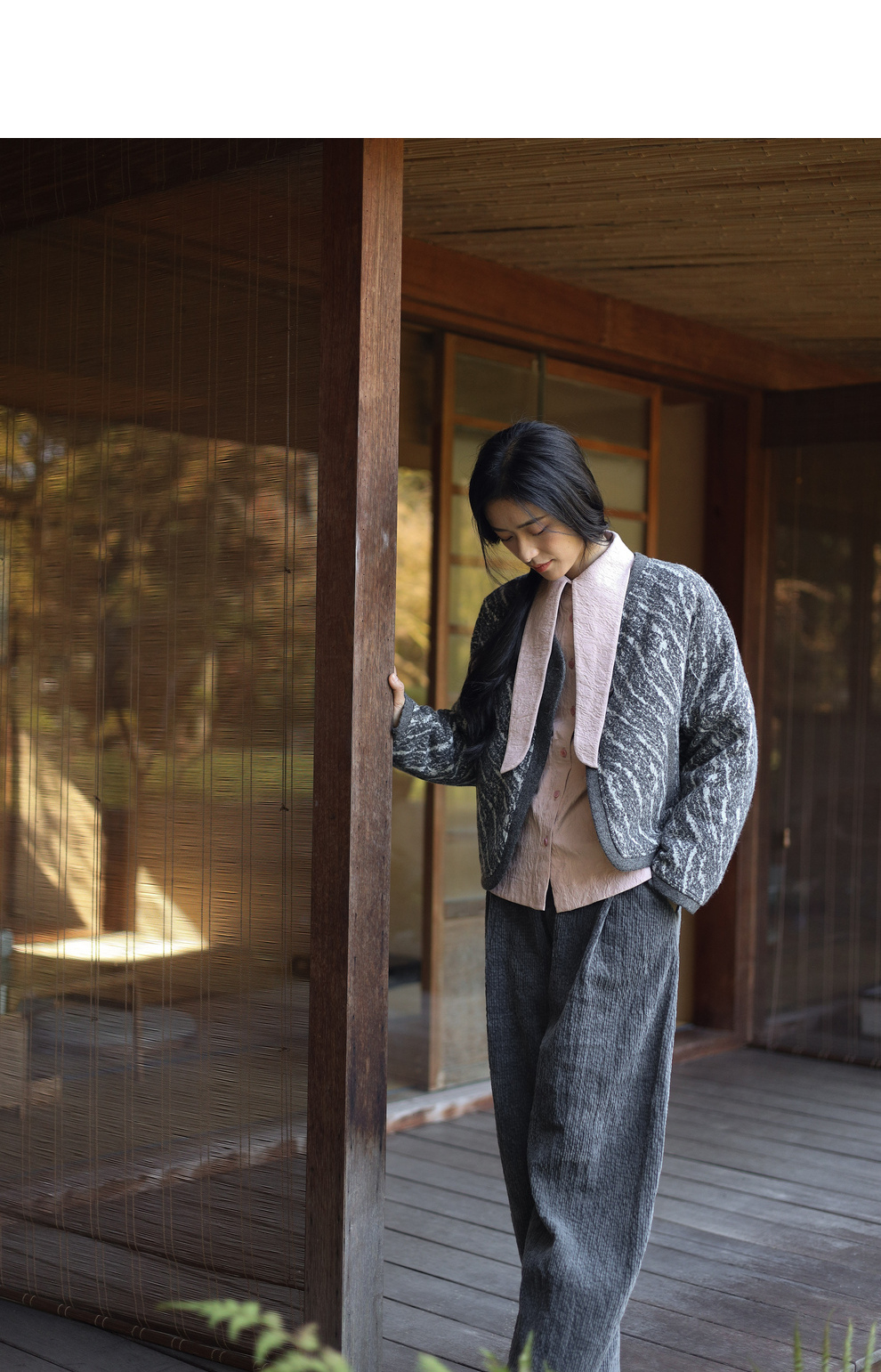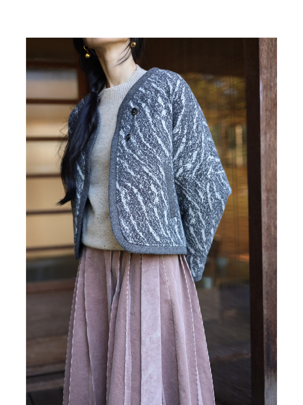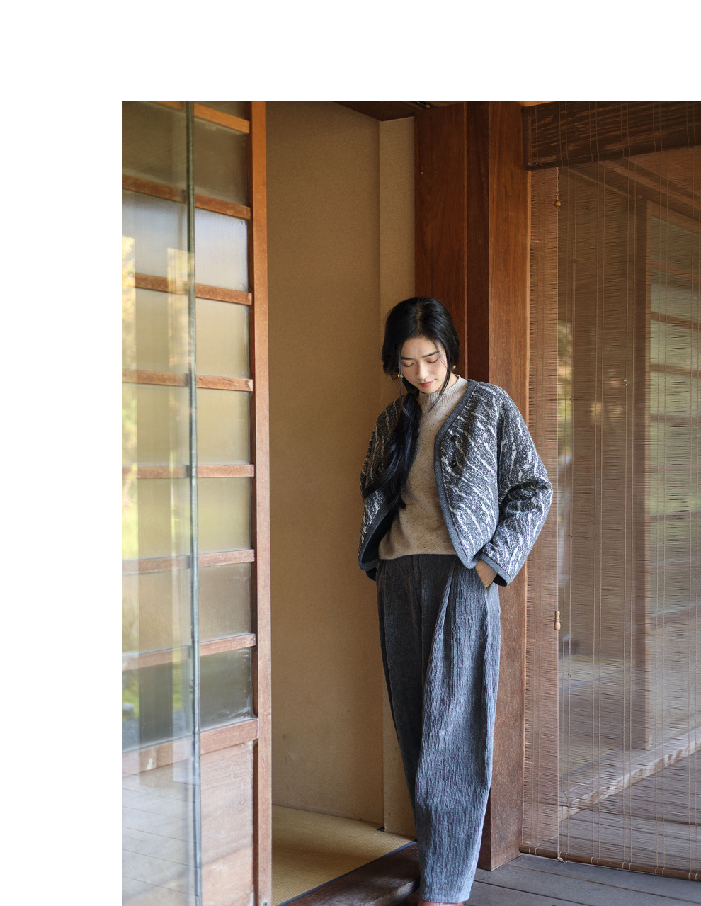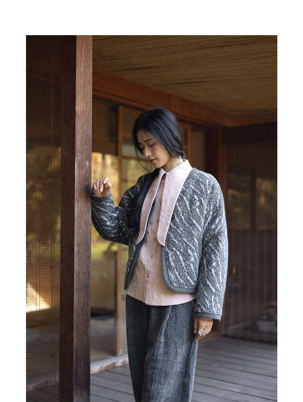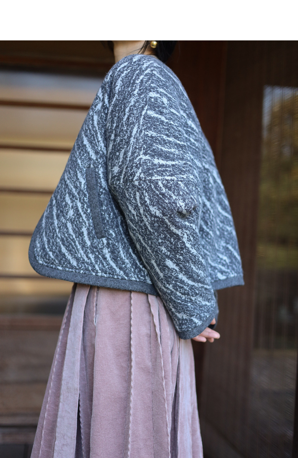 绽放936朵/高端定制黑灰提花斜襟新中式古典显气质结构感文艺外套