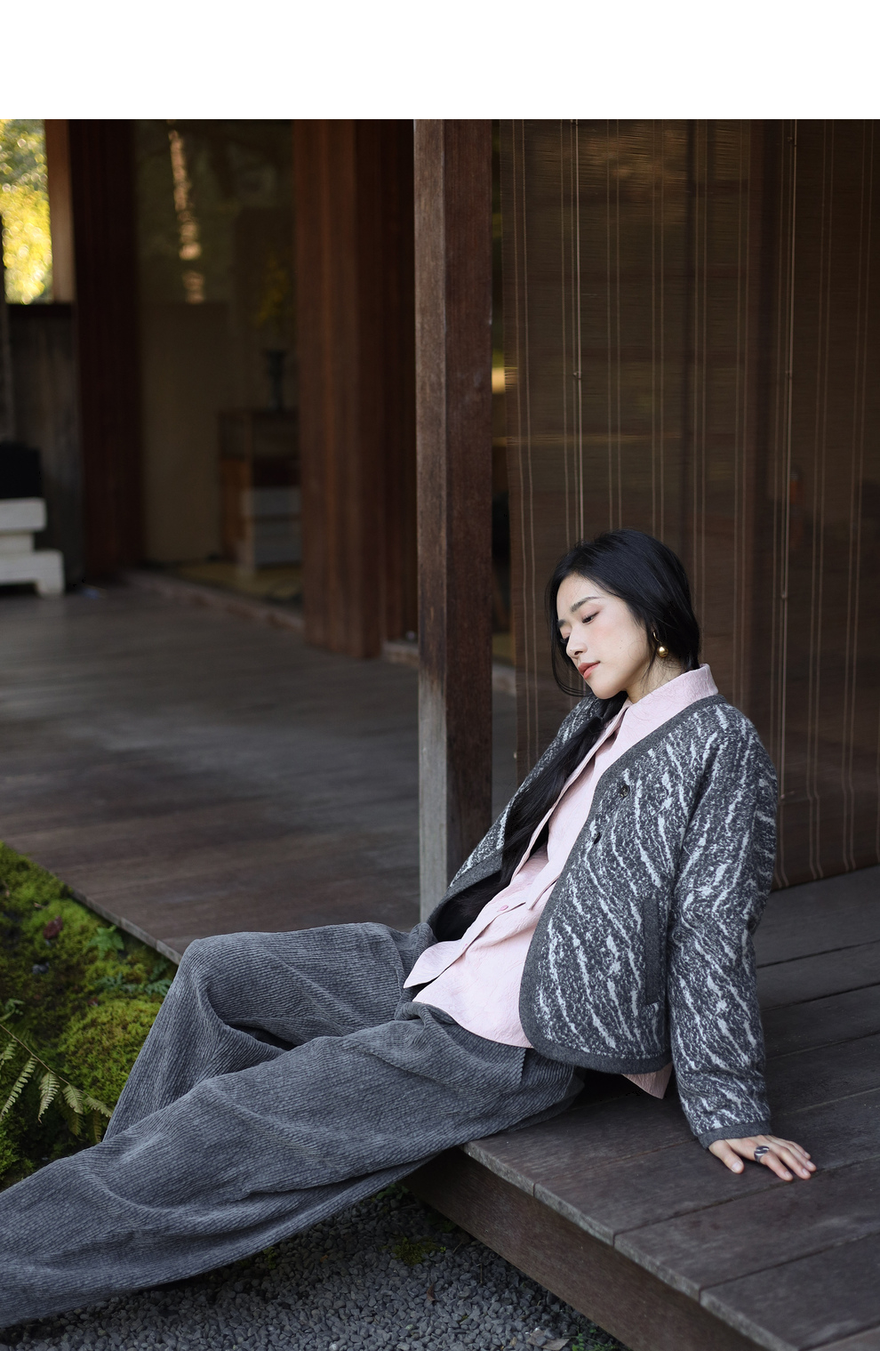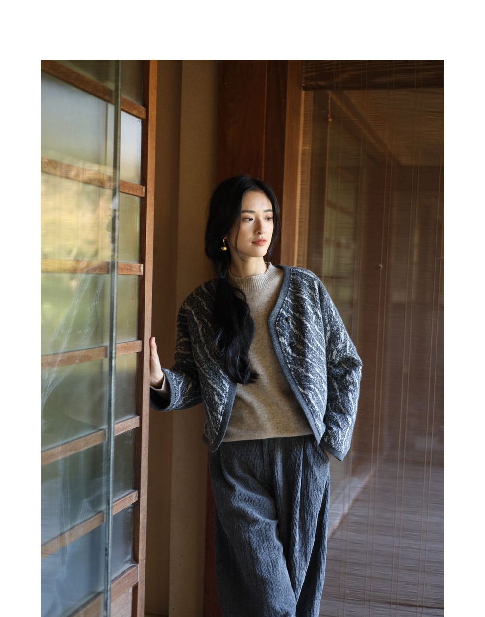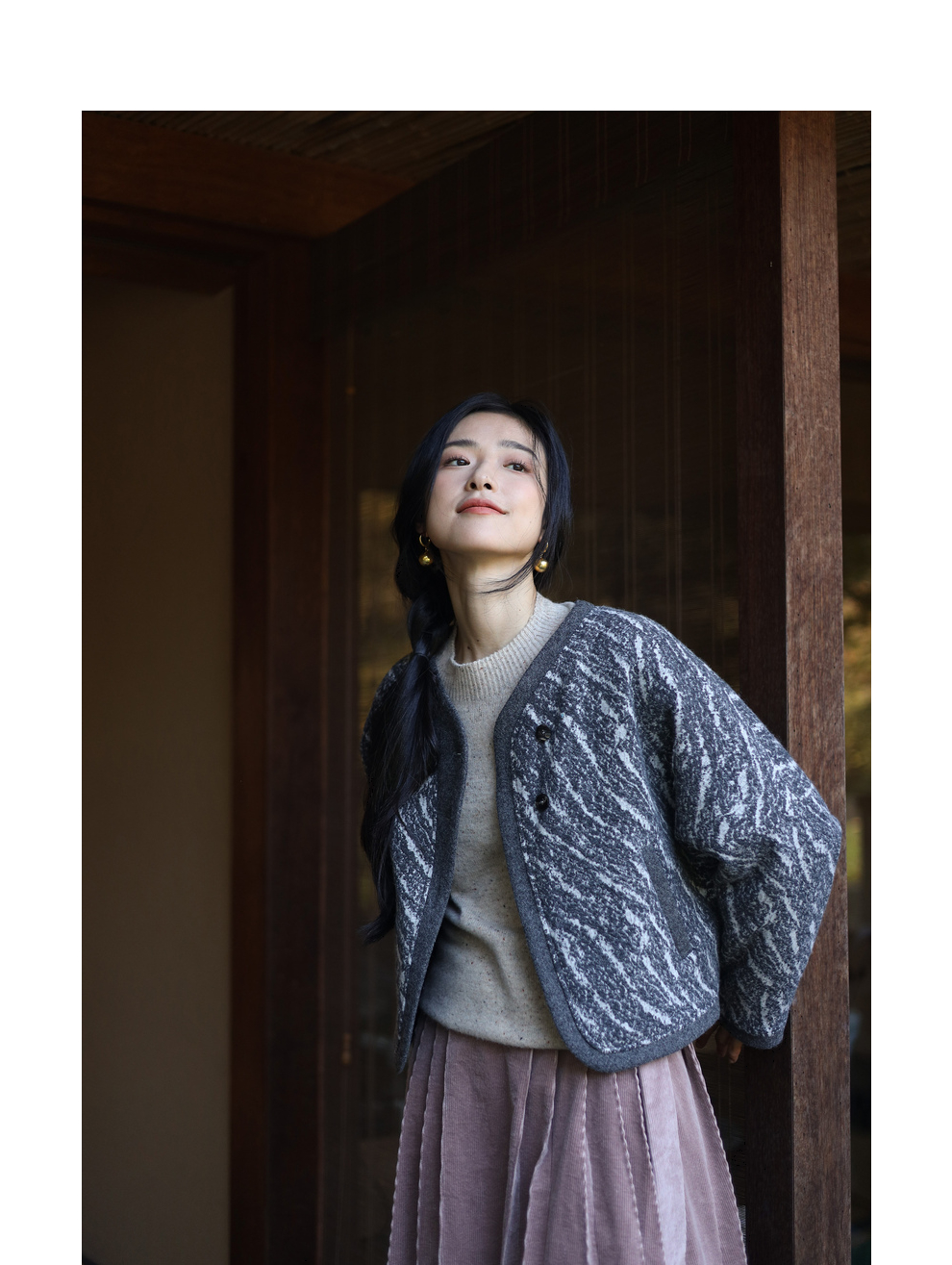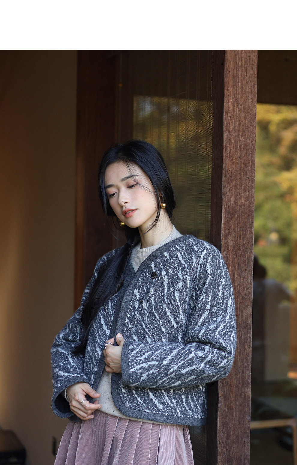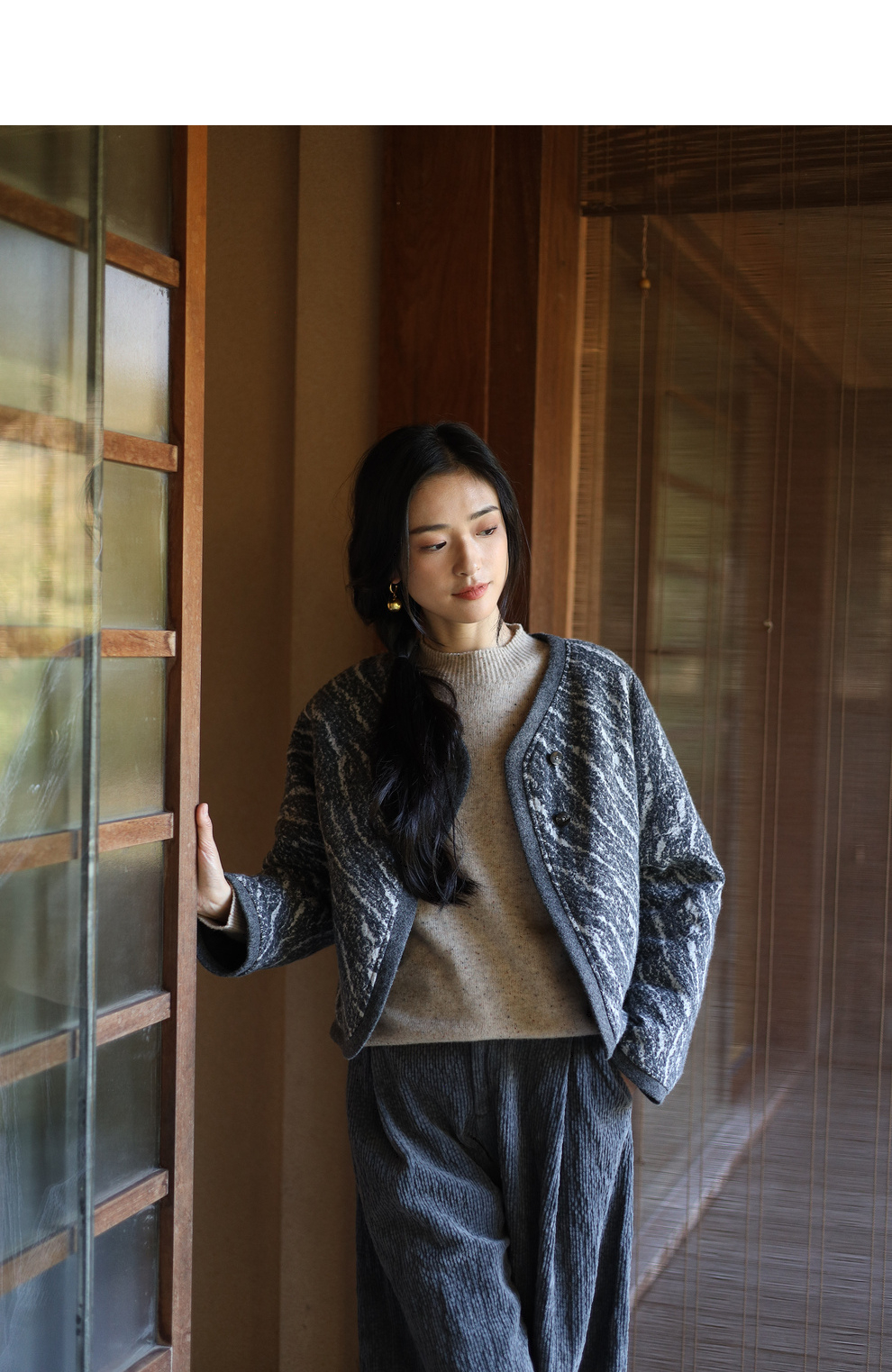 绽放936朵/高端定制黑灰提花斜襟新中式古典显气质结构感文艺外套