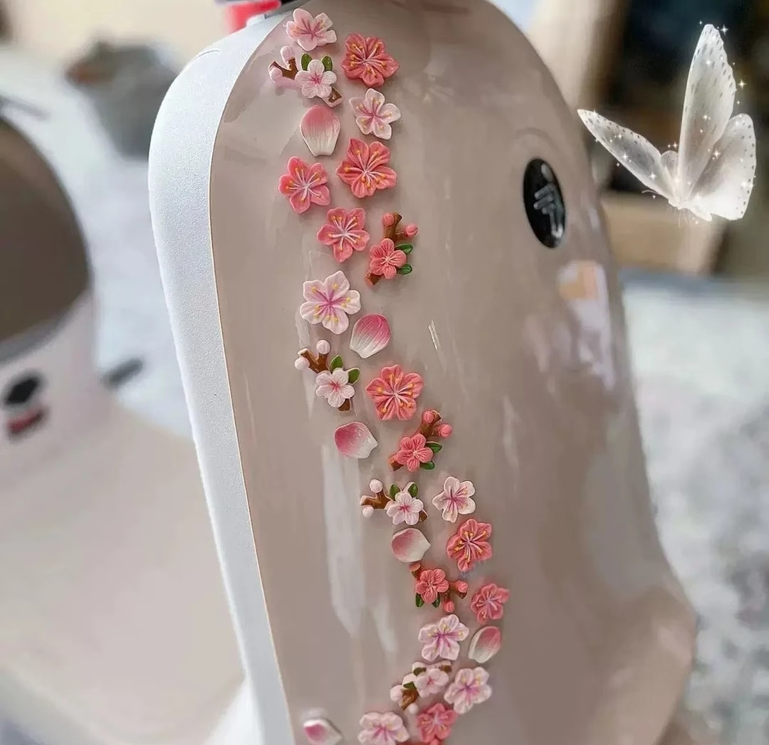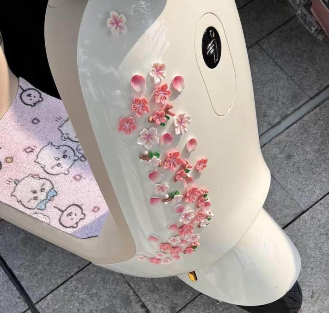 把春日桃林💮焊在物品上 嫩粉花瓣+浅绿叶片+原木色枝干 低饱和度马卡龙色系,贴在黑色车身上是“暗夜桃花” 贴在白色电器上是“奶油桃林”,适配所有风格~ ✅ 车身侧面/尾部 贴成一整枝桃花,回头率200%,连路人都会偷拍! ✅ 头盔改造 机车女孩/骑行党必备! 给冷硬的头盔贴上桃花,出片率爆炸 ✅ 后视镜/门把手 小面积点缀,精致感拉满,连洗车师傅都夸好看! ✅居家小物 冰箱/洗衣机/镜子/充电宝…随便贴! 让家电秒变春日摆件,连做家务都变浪漫的事~