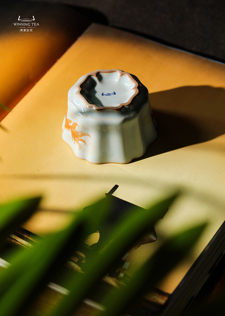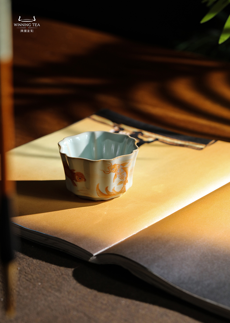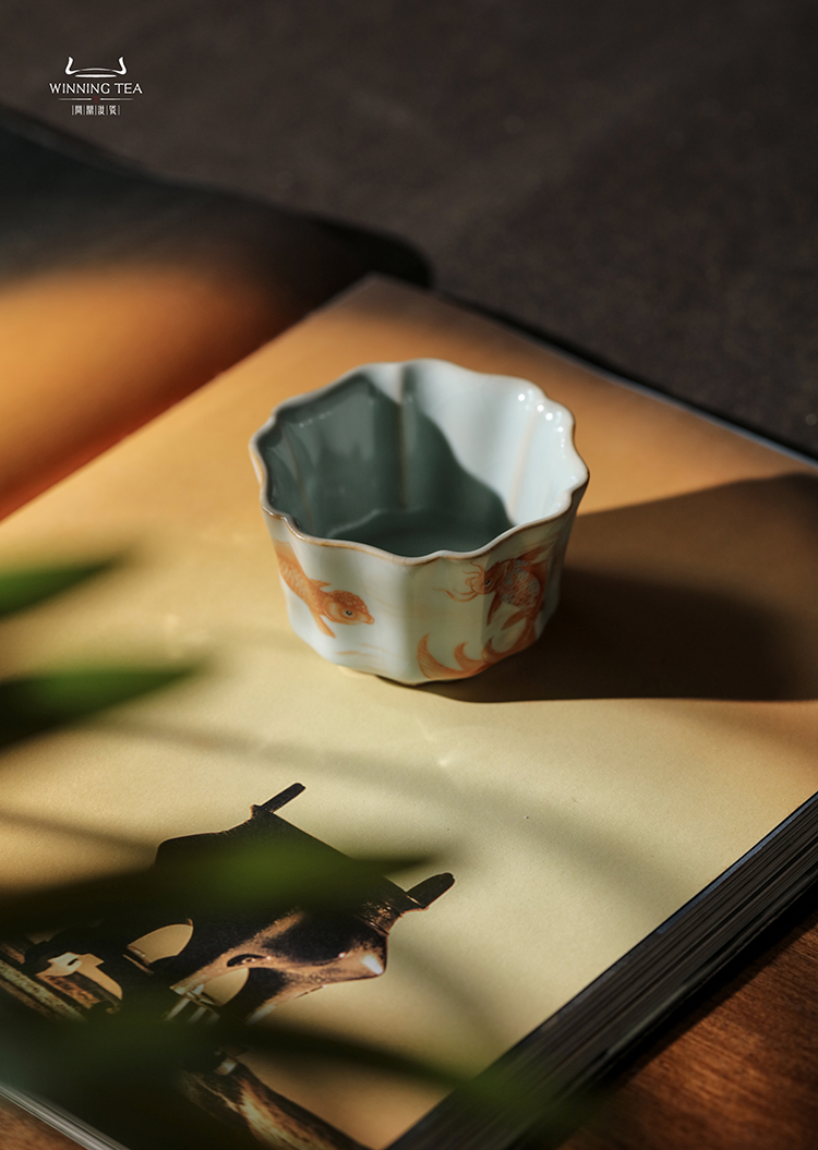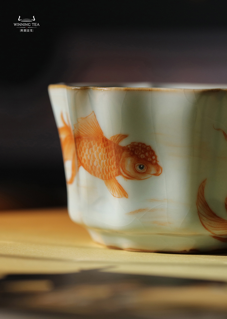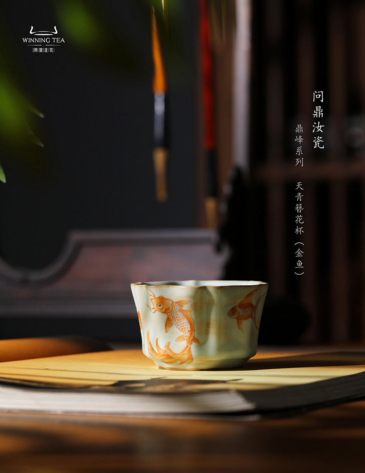 问鼎汝瓷鼎峰系列天青簪花杯(金鱼)