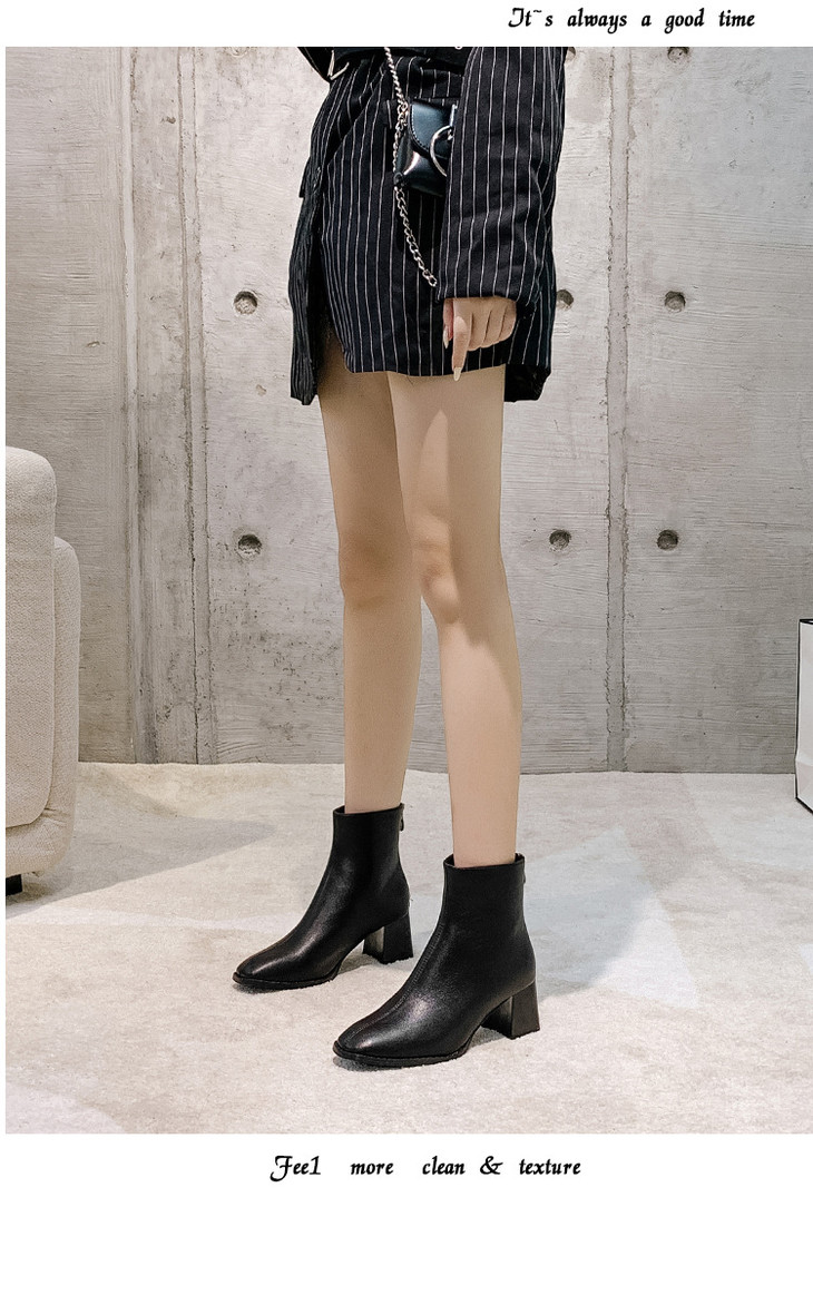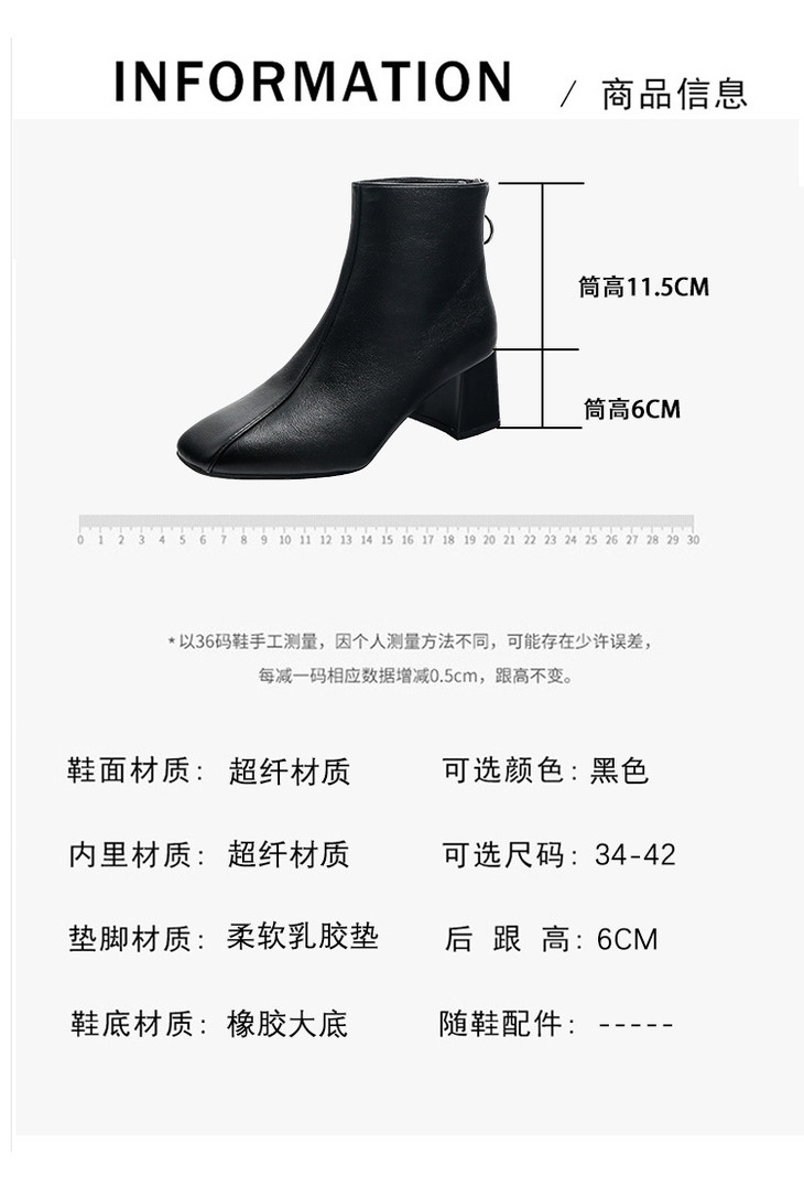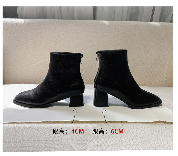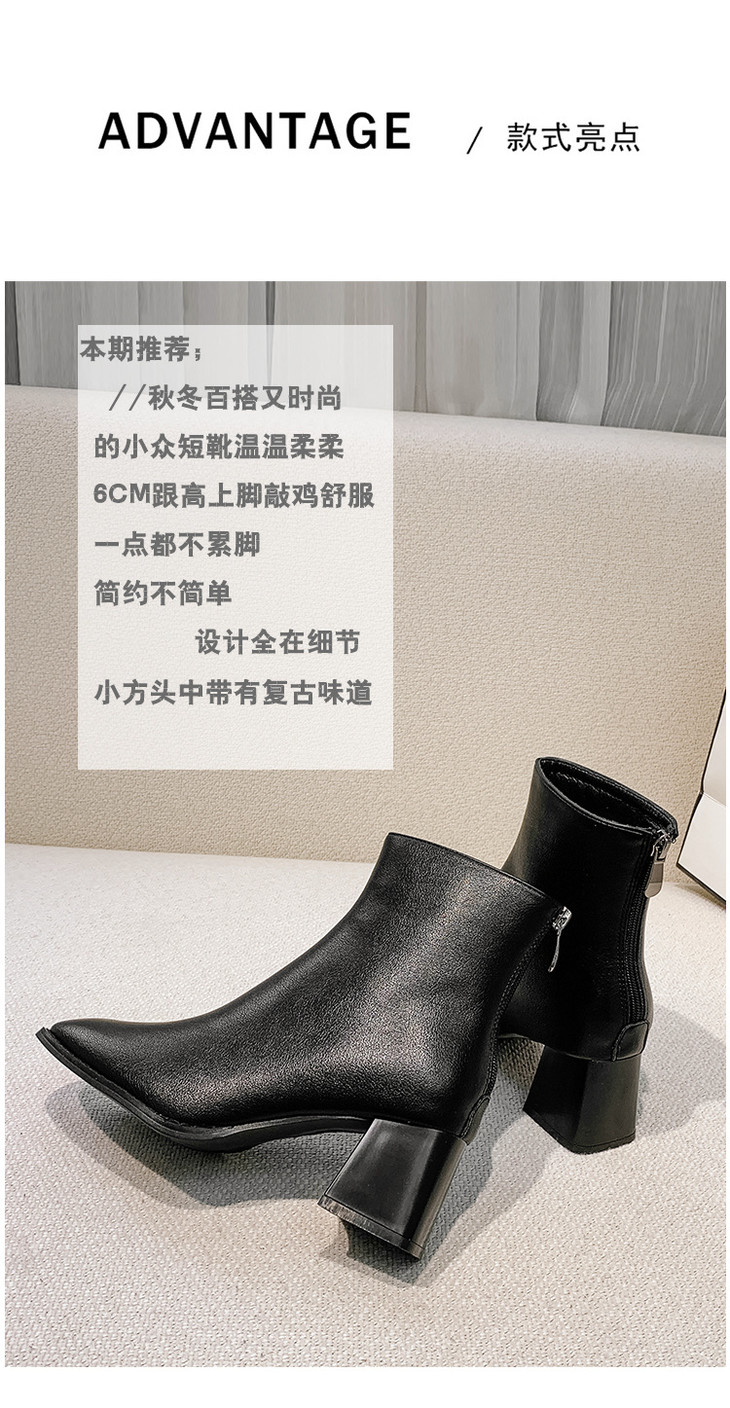 欧美短靴|秋冬2020新款欧洲站女靴后拉链粗跟女士高跟靴子