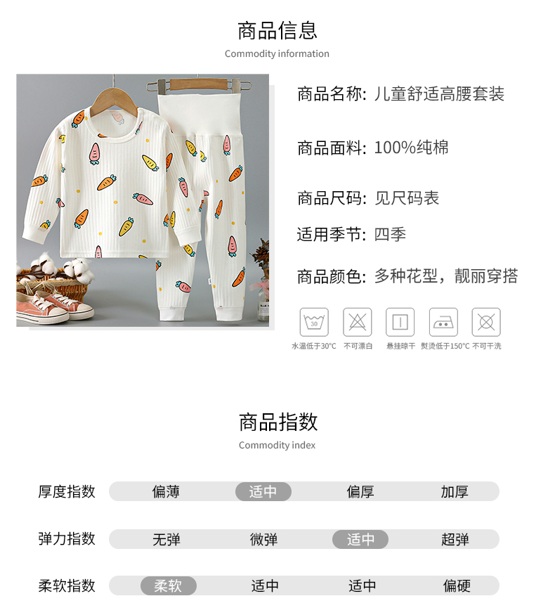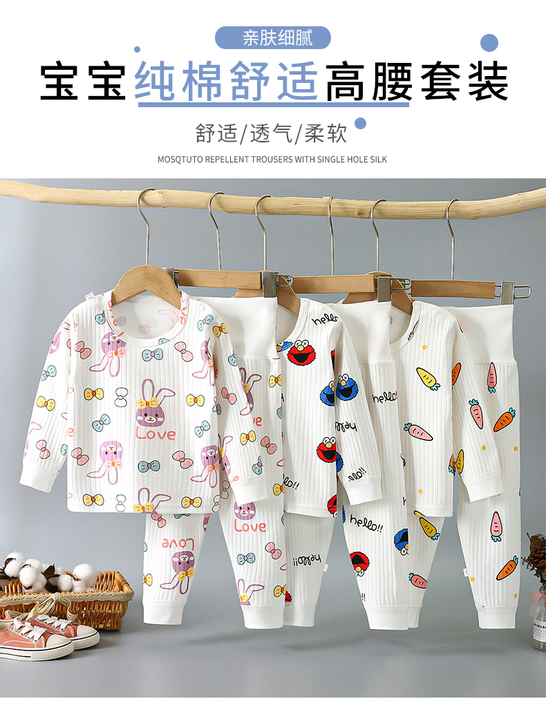 【宝宝纯棉舒适高腰套装】儿童春秋套装宝宝高腰护肚秋衣秋裤婴幼儿精梳棉家居服