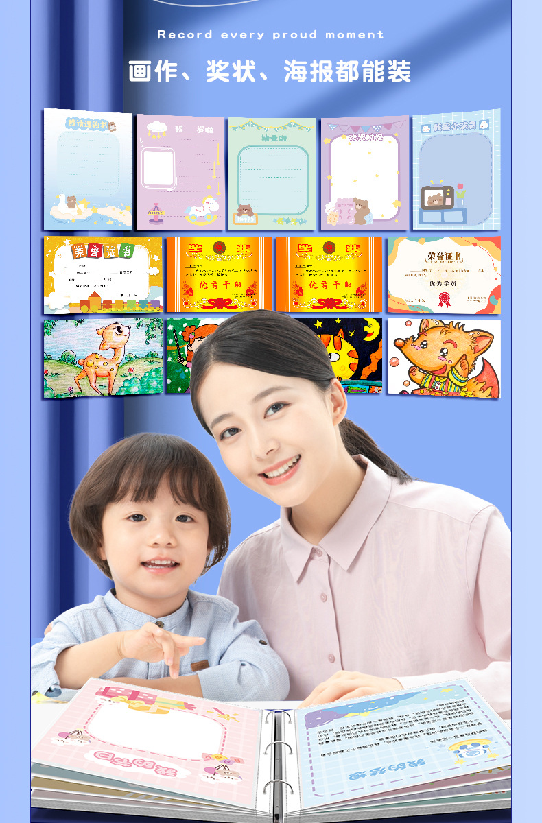 【园长妈妈推荐❗咔巴熊成长记录册】孩子的成长档案「做蜕变的见证人」还可以装奖状、海报等,多功能使用哦,资料册奖状收集册男孩女孩美术作品收纳册活页L