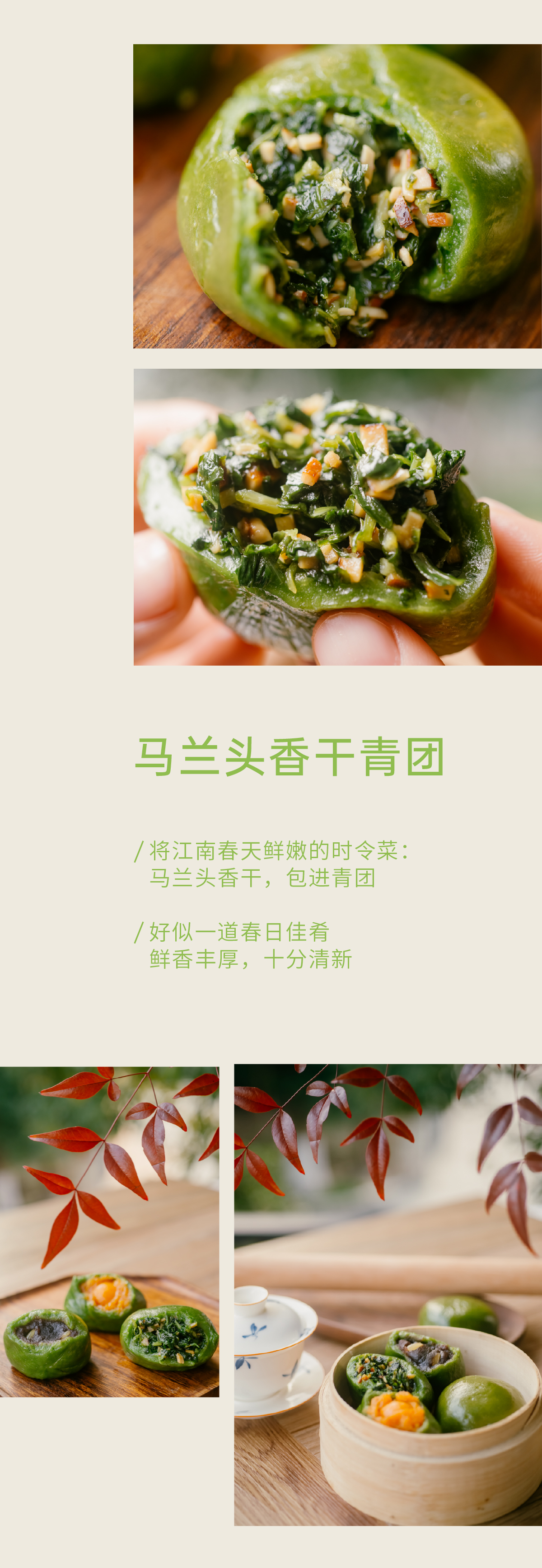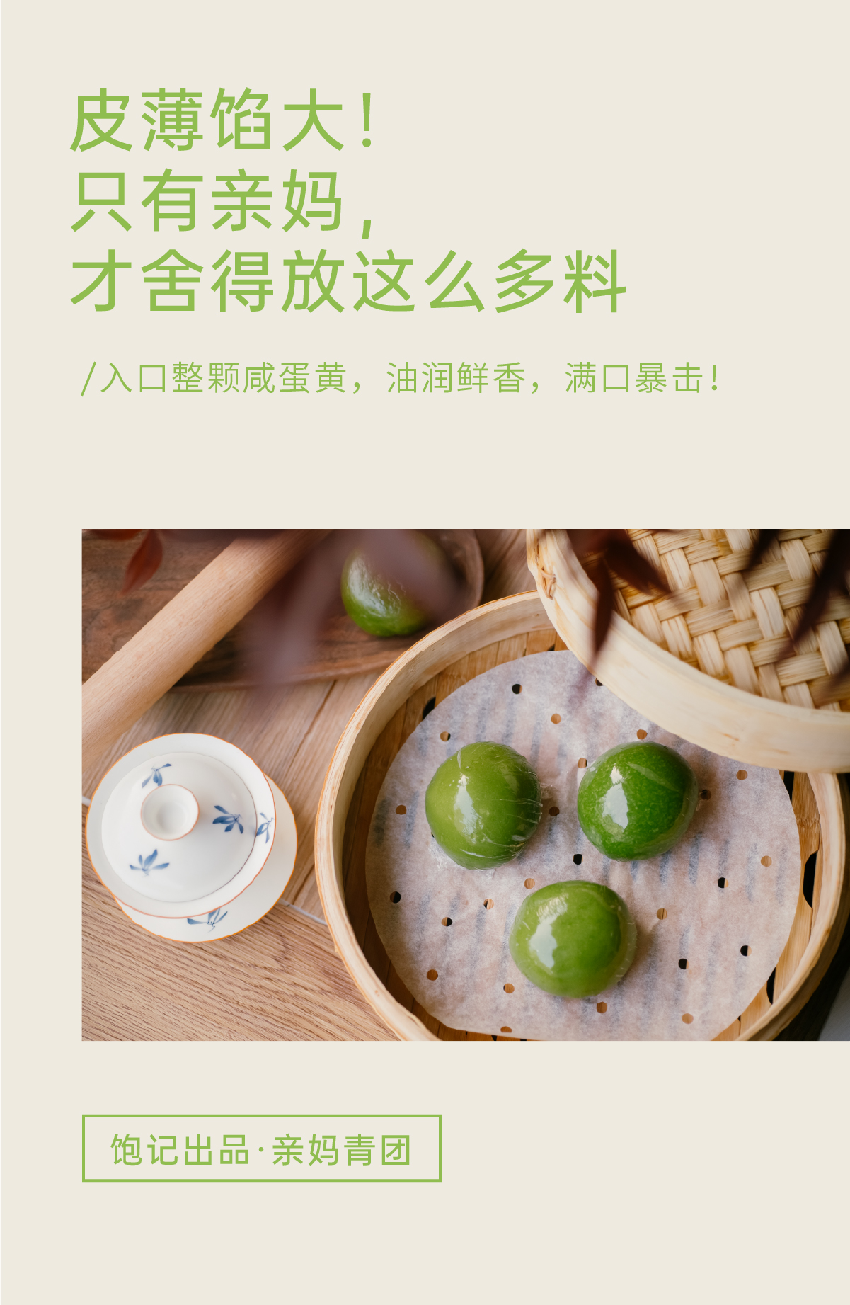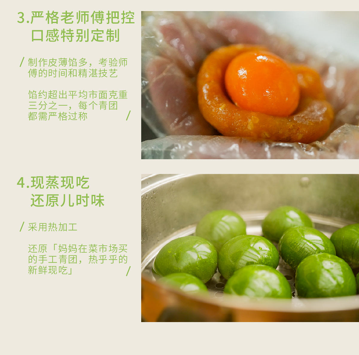 【现货】「饱记青团」 一口咬到春天的软糯 豆沙松仁4枚 咸蛋黄肉松4枚 马兰草香干4枚