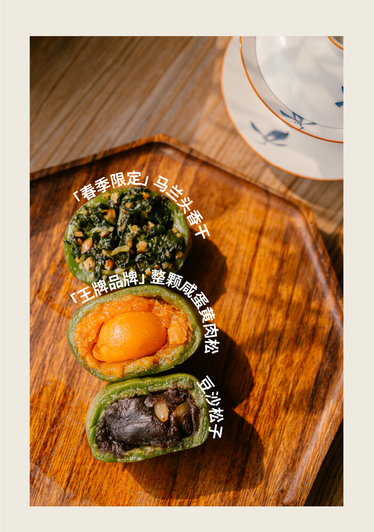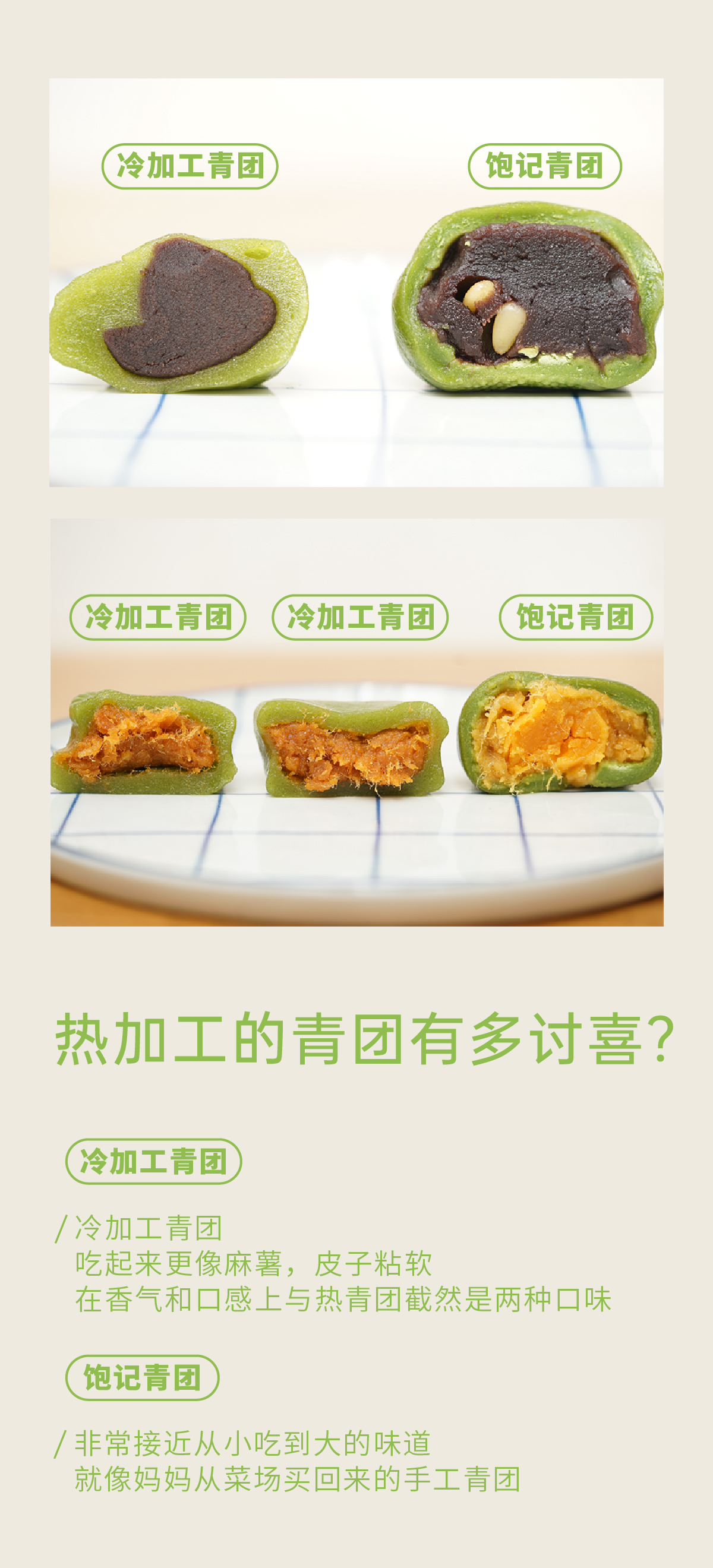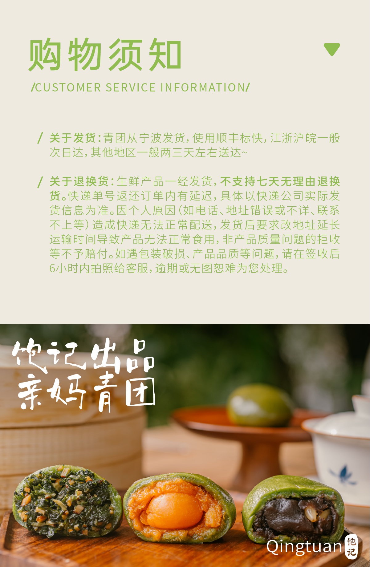 【现货】「饱记青团」 一口咬到春天的软糯 豆沙松仁4枚 咸蛋黄肉松4枚 马兰草香干4枚