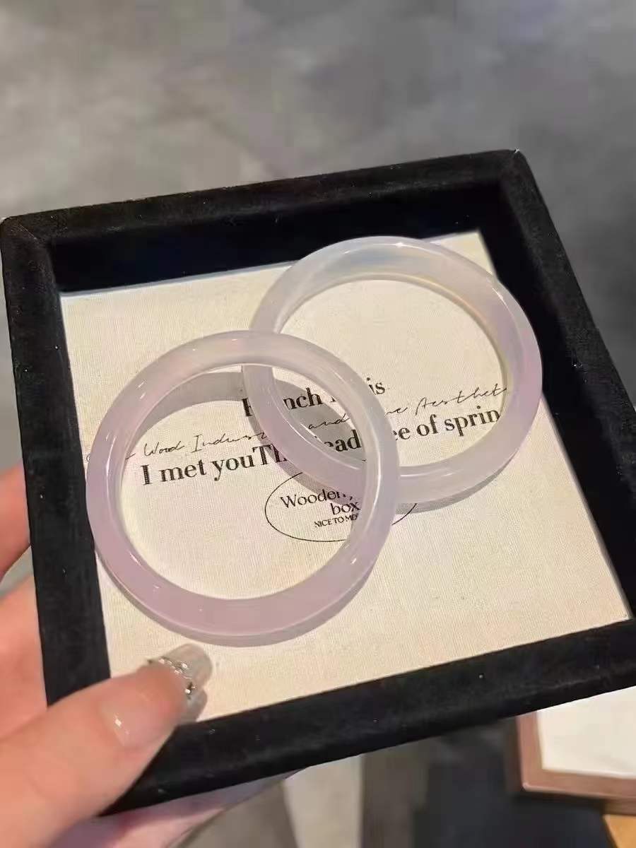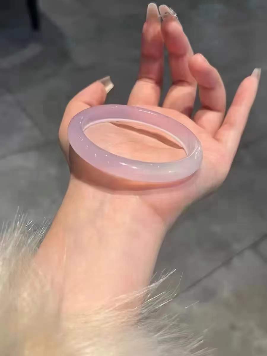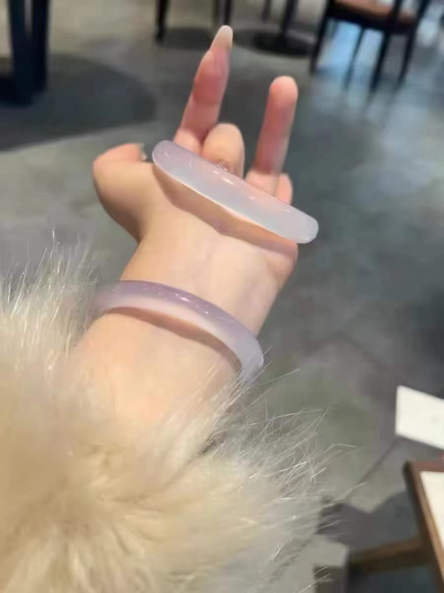 芋泥啵啵镯子 白月光玉髓手镯 玛瑙圆条白月光 紫罗兰手镯少女