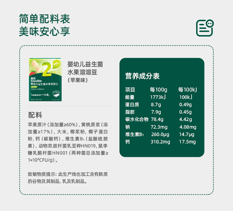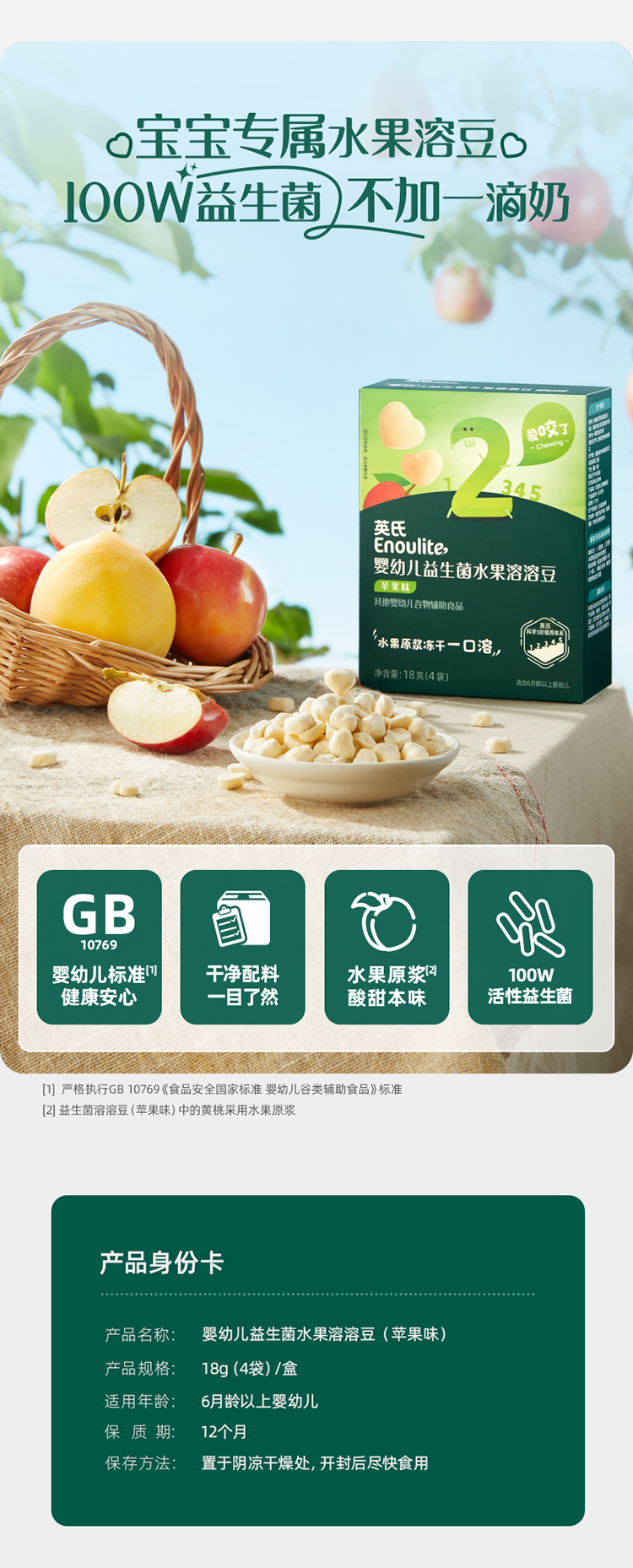 英氏婴幼儿益生菌水果溶溶豆(苹果味/草莓蔓越莓樱桃味)18g