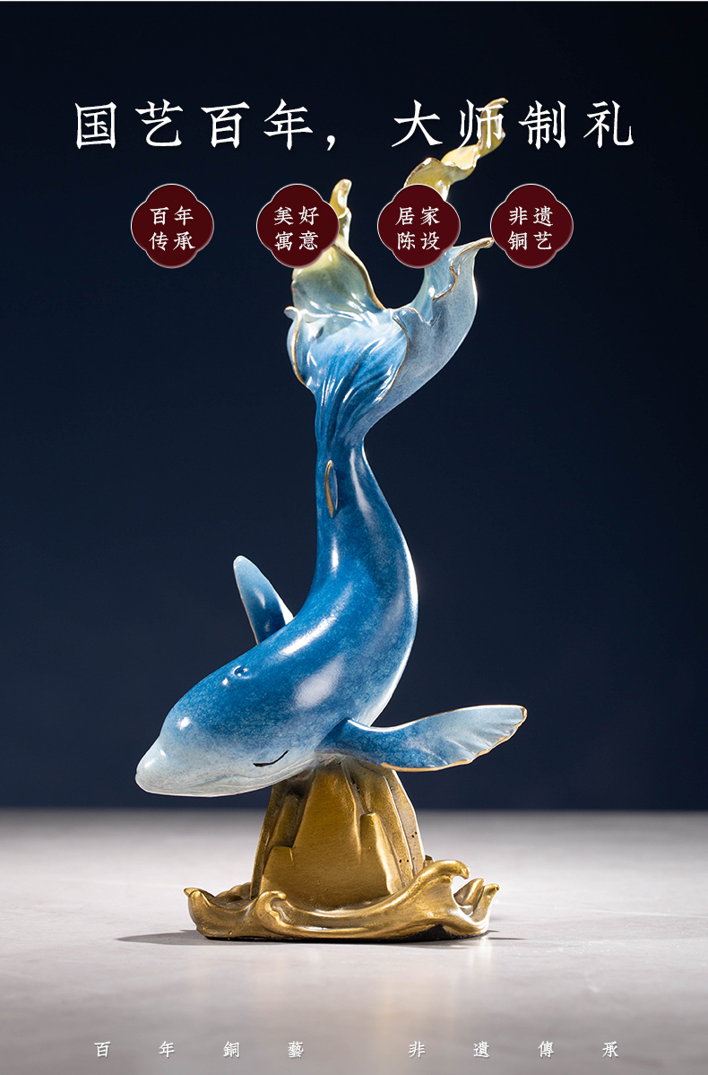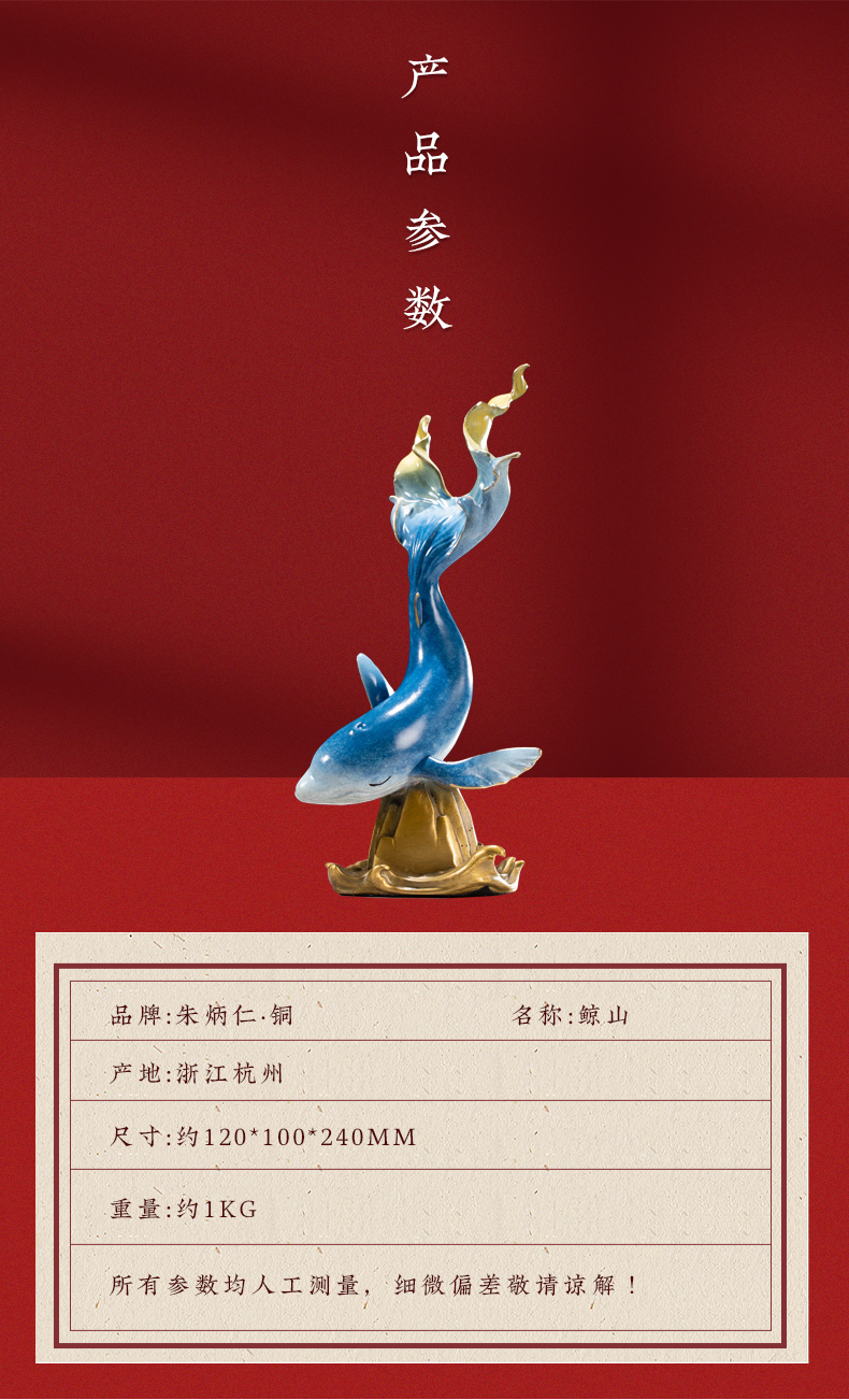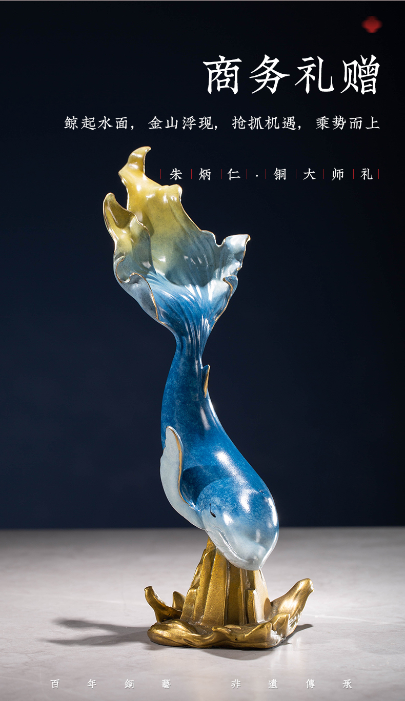 【6F】朱炳仁铜 创意家居桌面风水装饰中式工艺品办公桌摆件鲸山