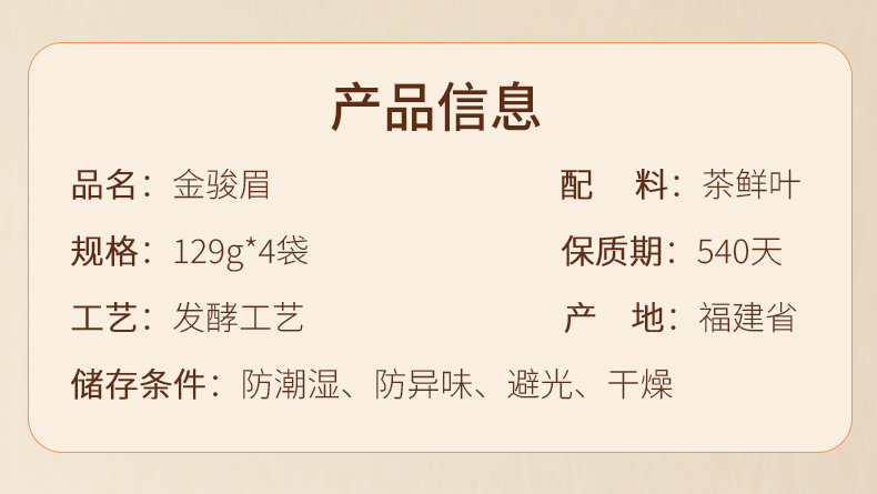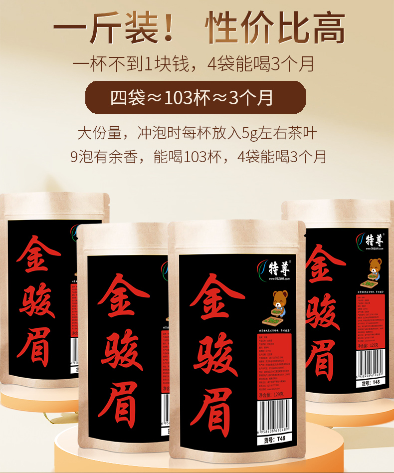 特尊 金骏眉红茶蜜香功夫红茶4袋共516g