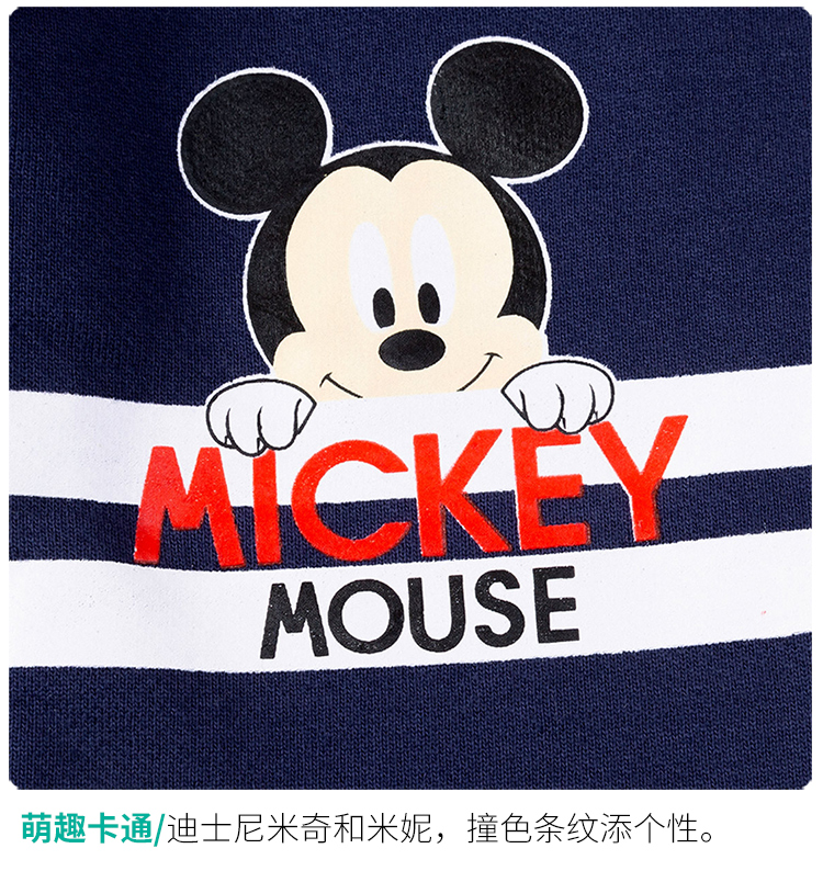 迪士尼25秋冬季新款条纹撞色卫衣男童上衣中大童加绒保暖休闲运动卫衣XD4DS065